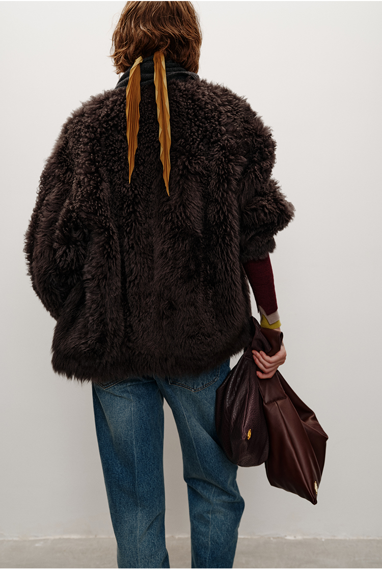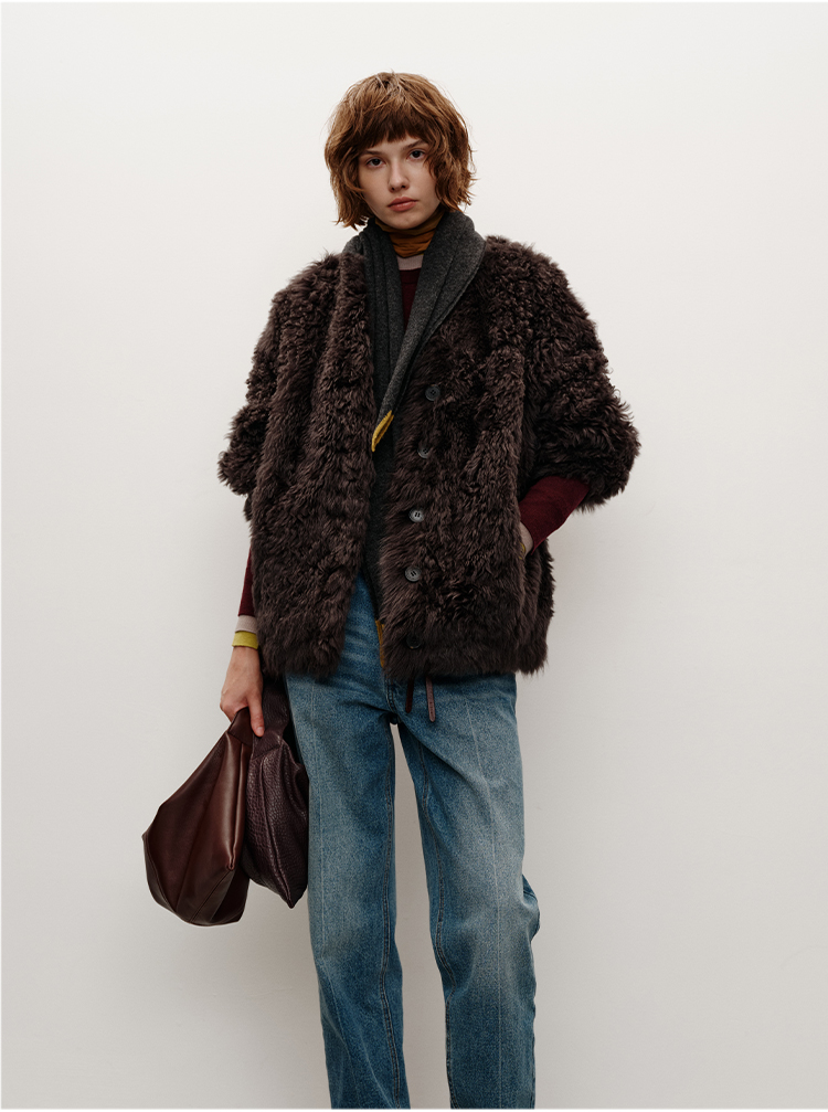 HIDEMI日本加厚粗花呢口袋设计感衬衫式羊毛大衣