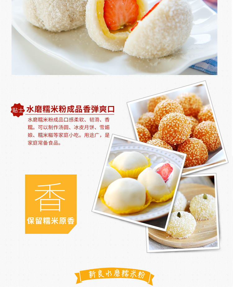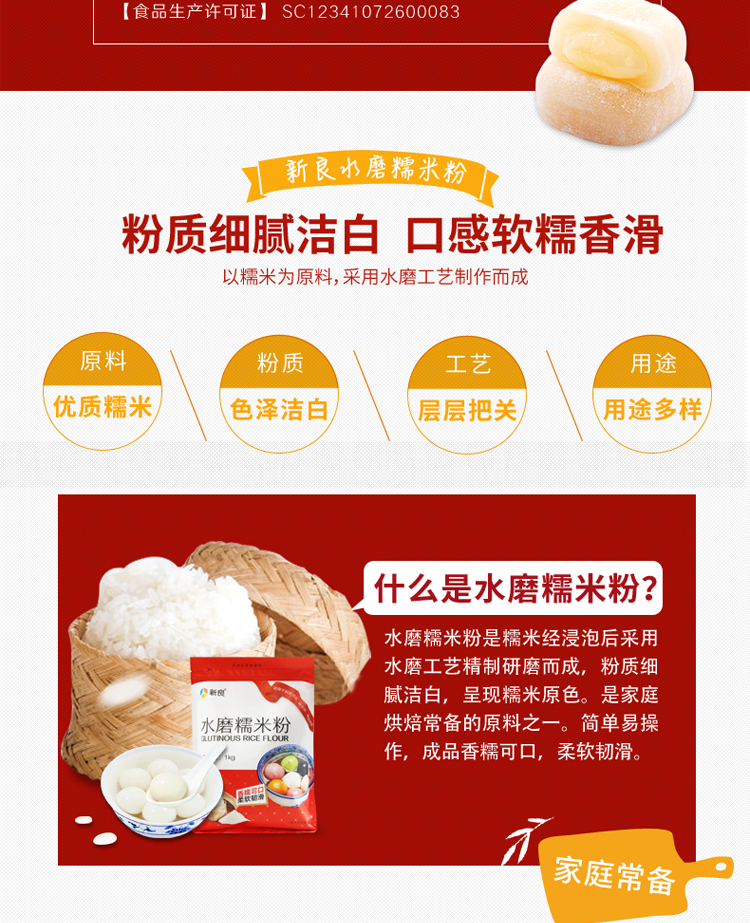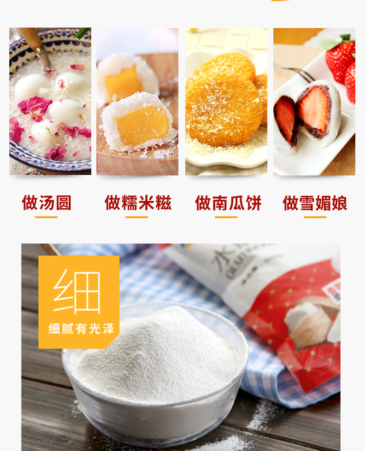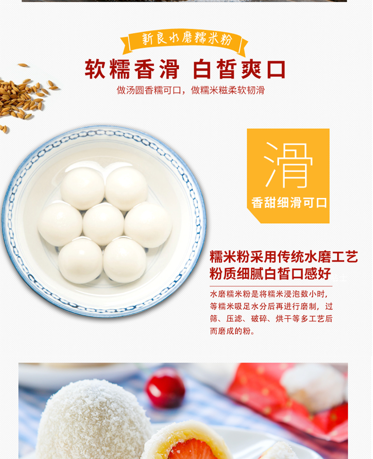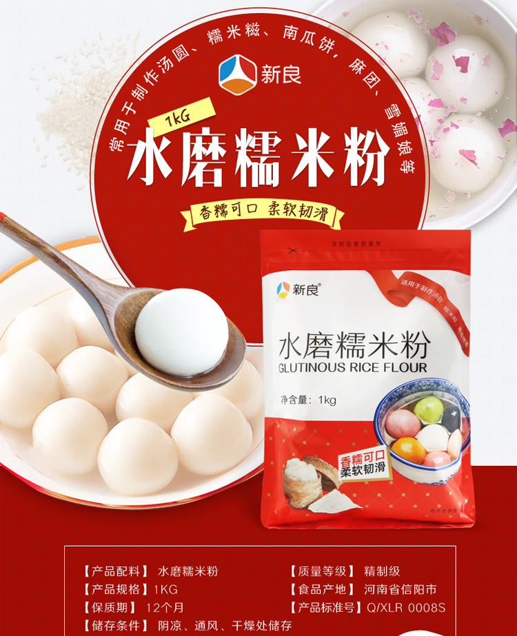 新良水磨糯米粉冰皮月饼粉糯米糍汤圆青团粉年糕烘焙原料面粉1kg