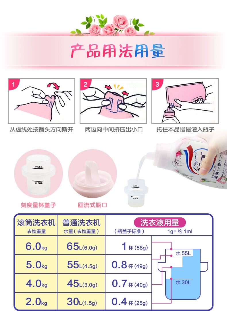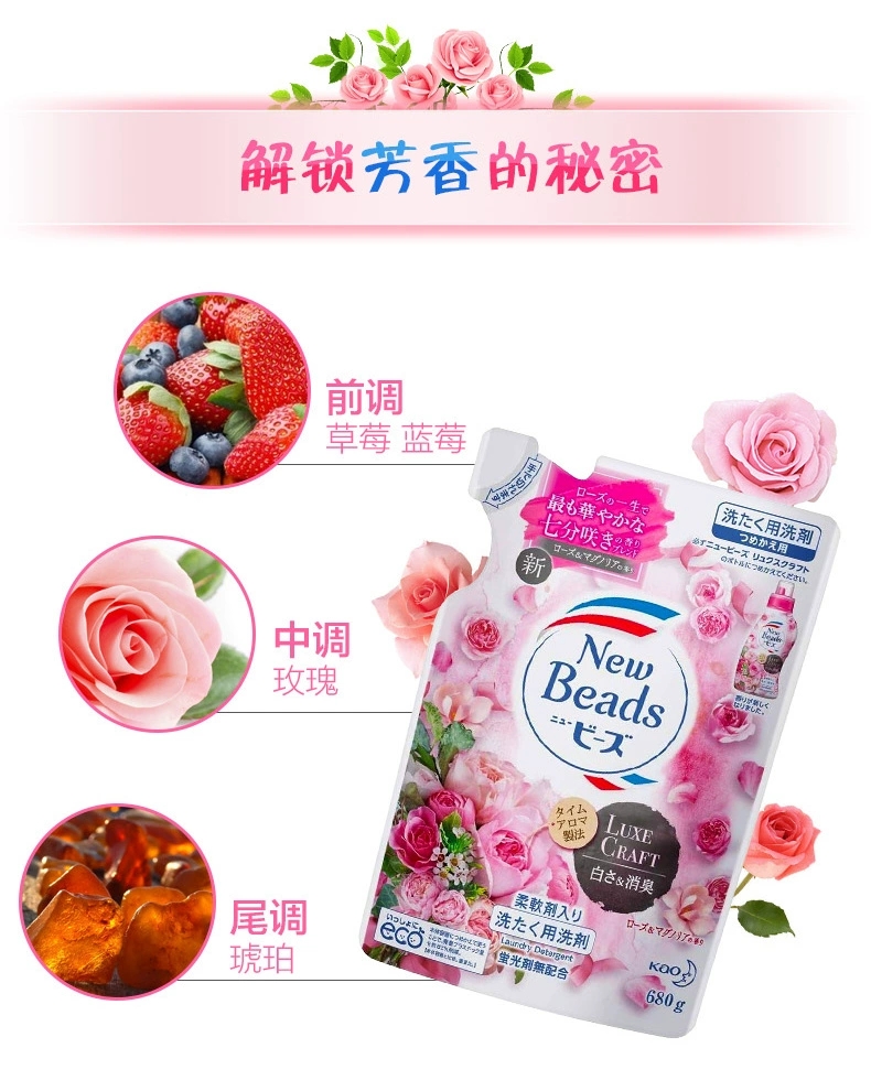 花王天然柔顺剂洗衣液【玫瑰】740g