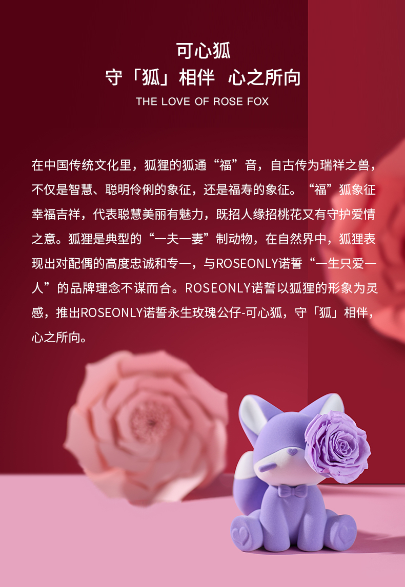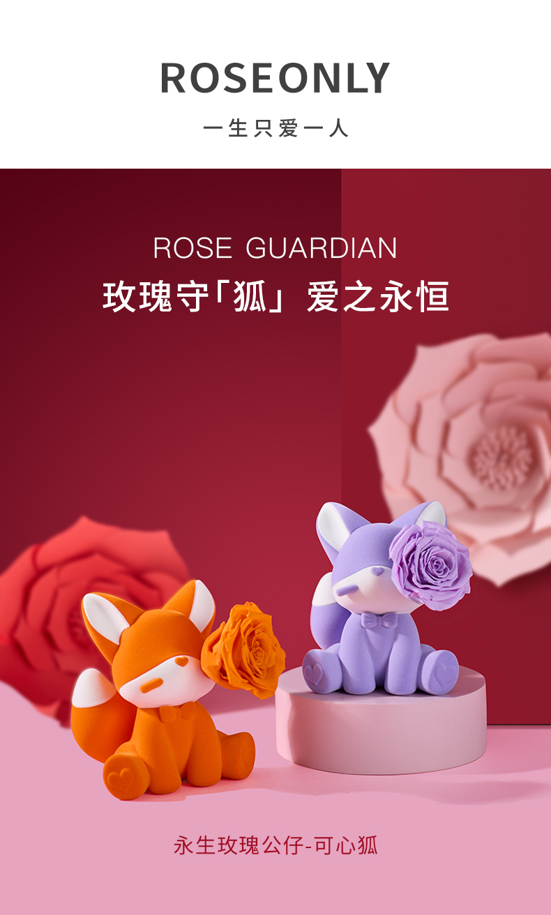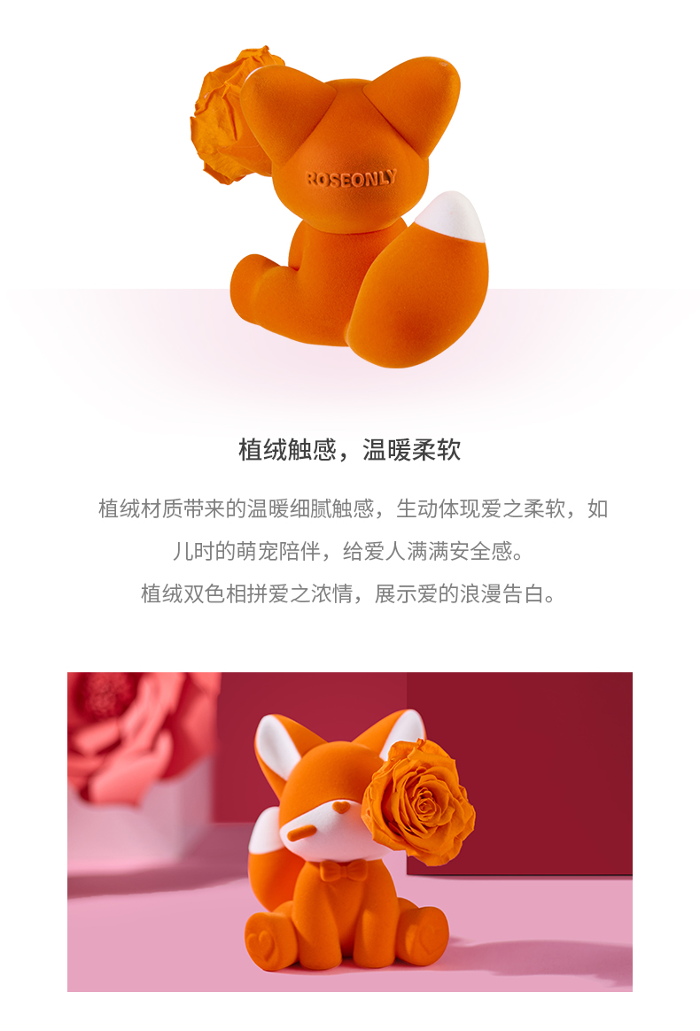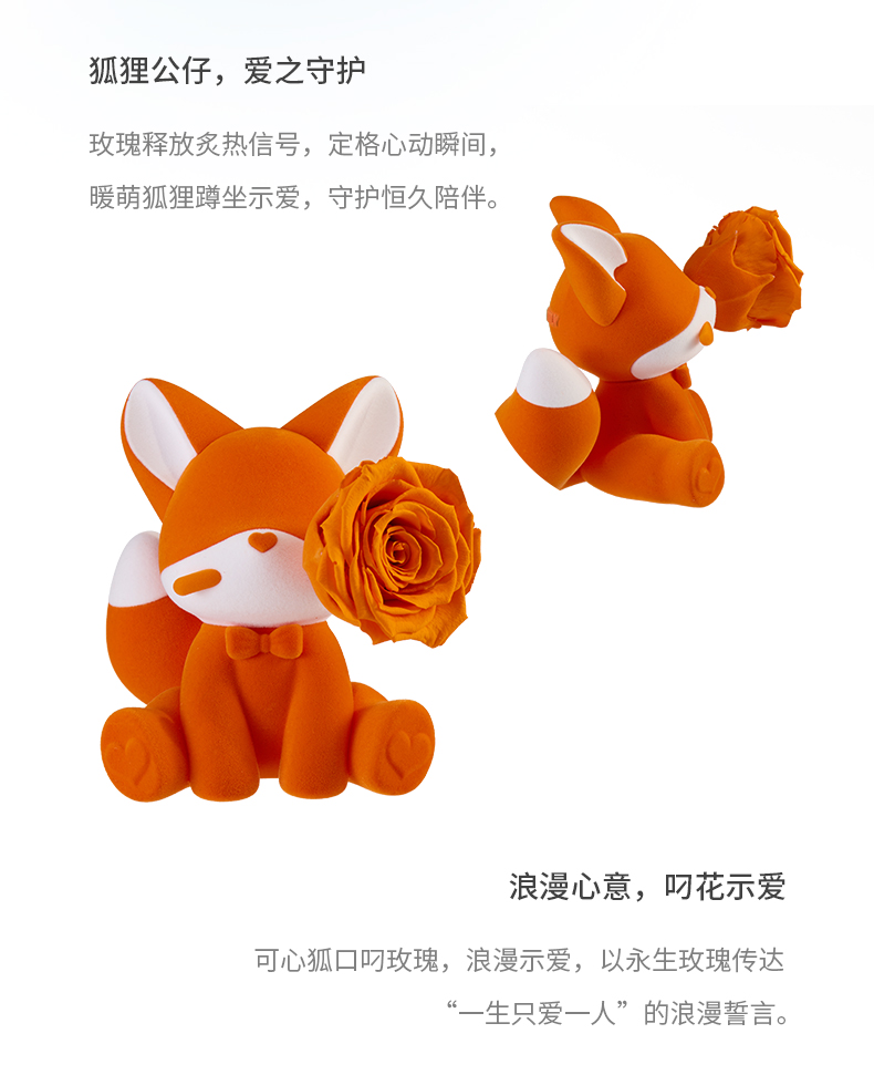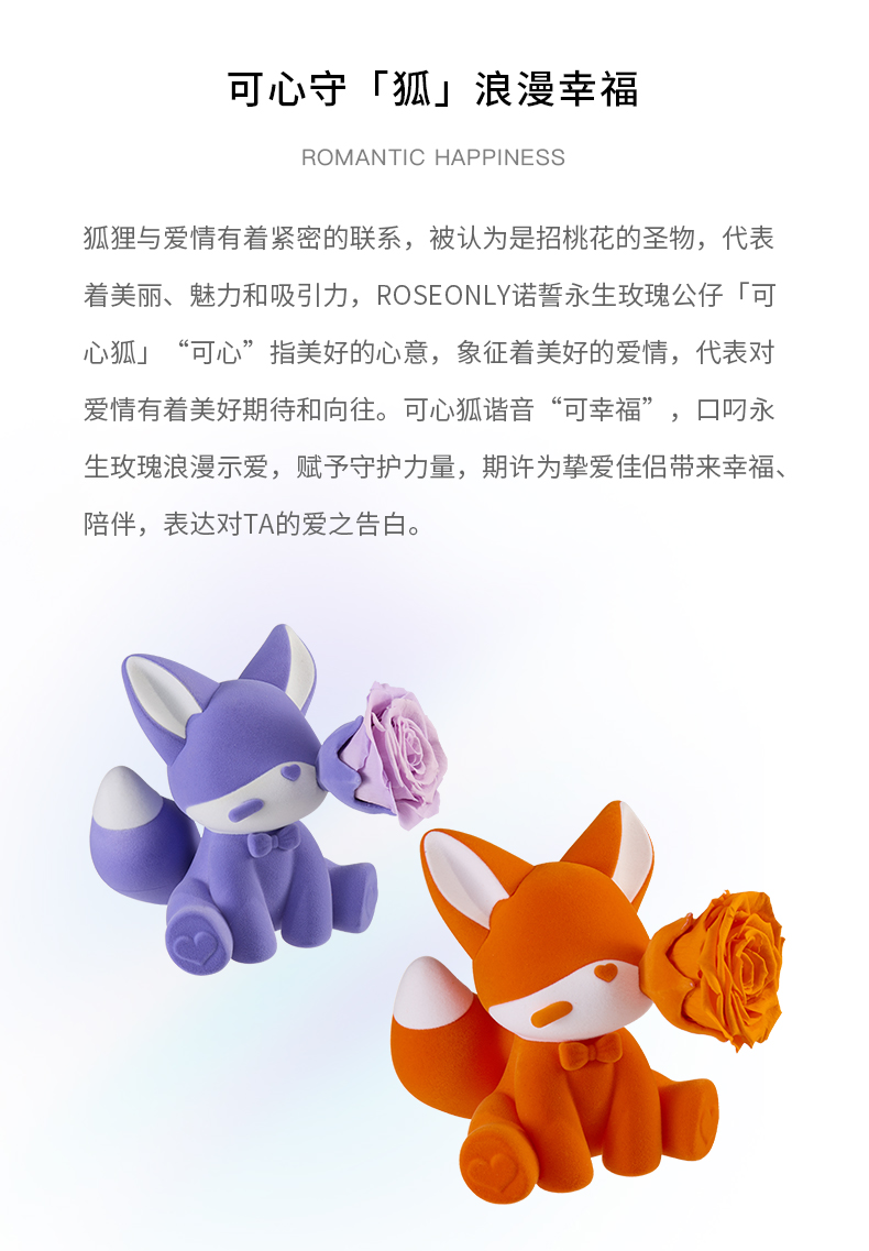 ROSEONLY诺誓 永生玫瑰 公仔系列 可心狐 紫白色 橙白色 送朋友