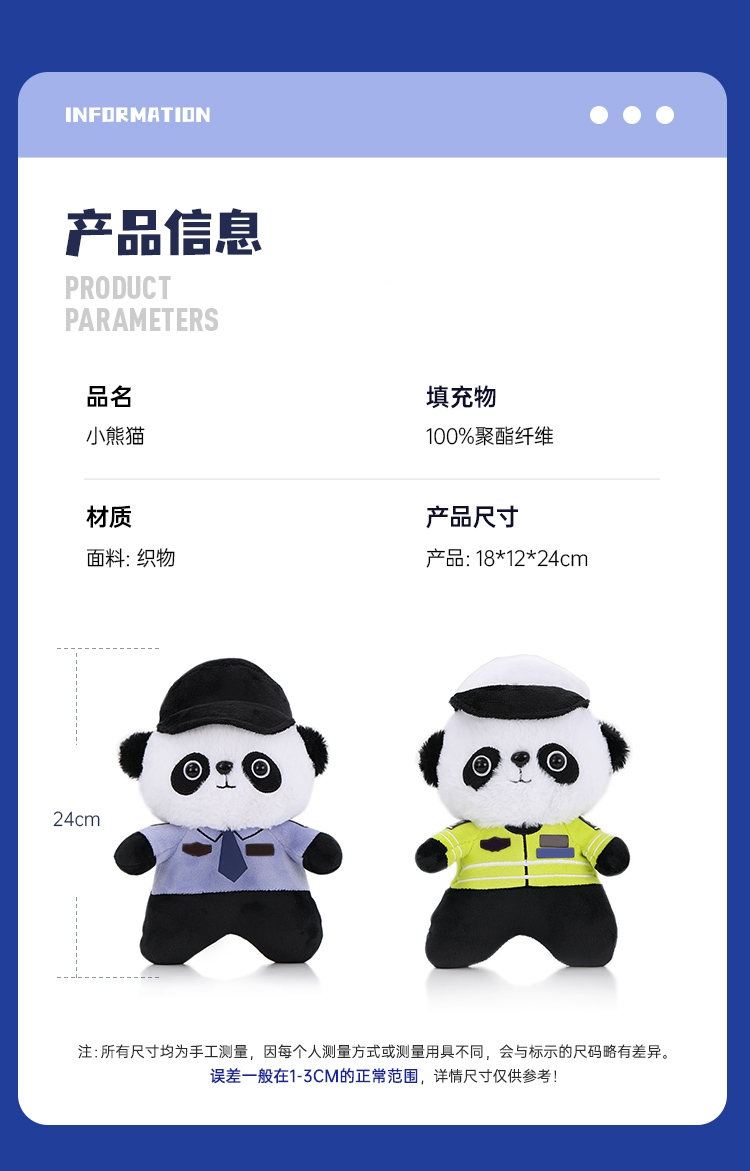 【小熊猫】蓝衬款儿童公仔玩偶创意毛绒玩具摆件