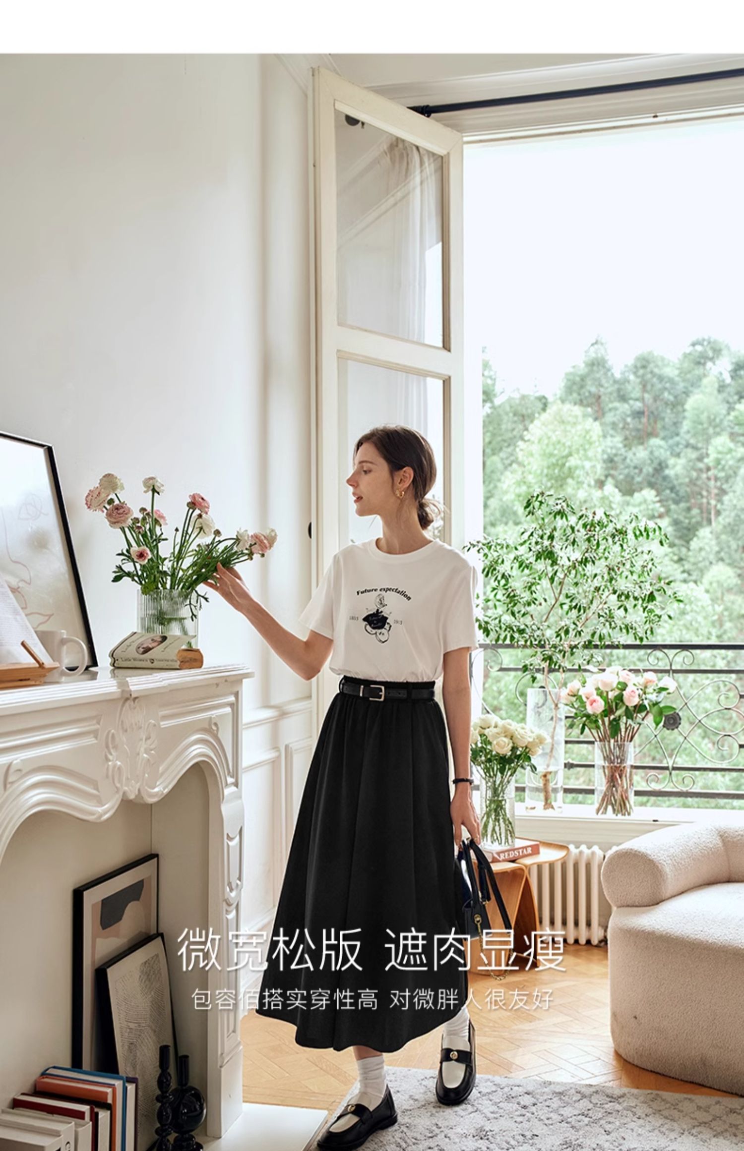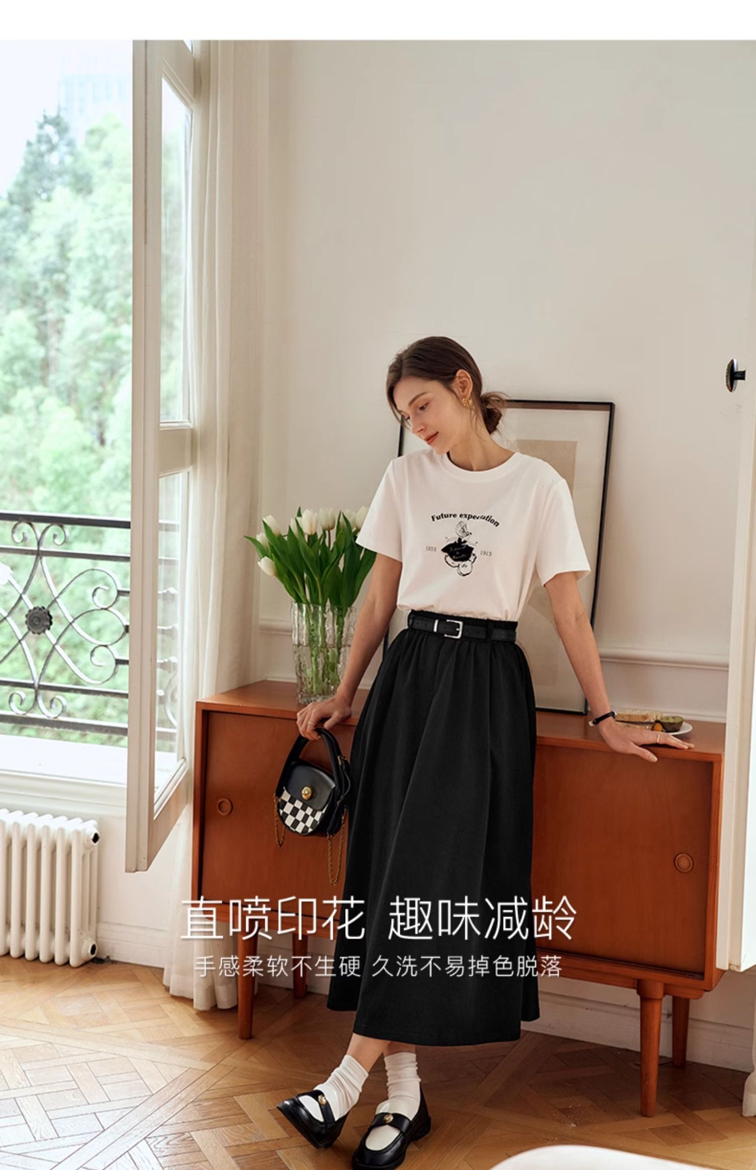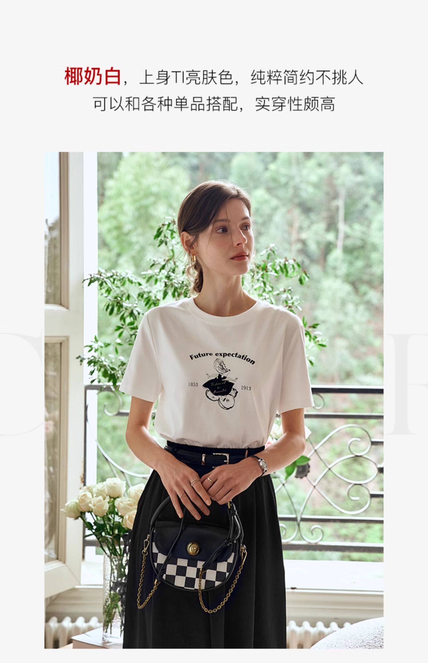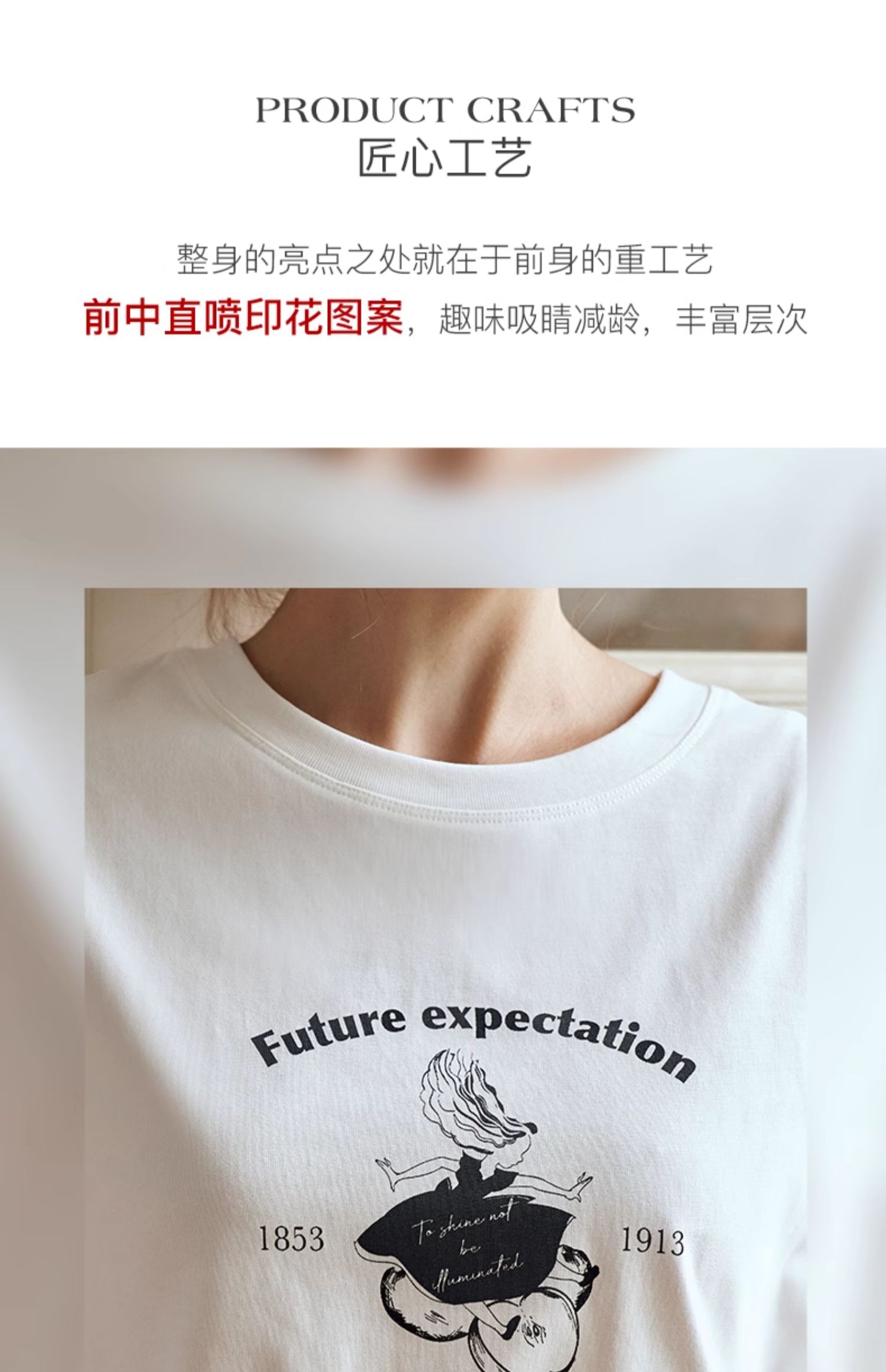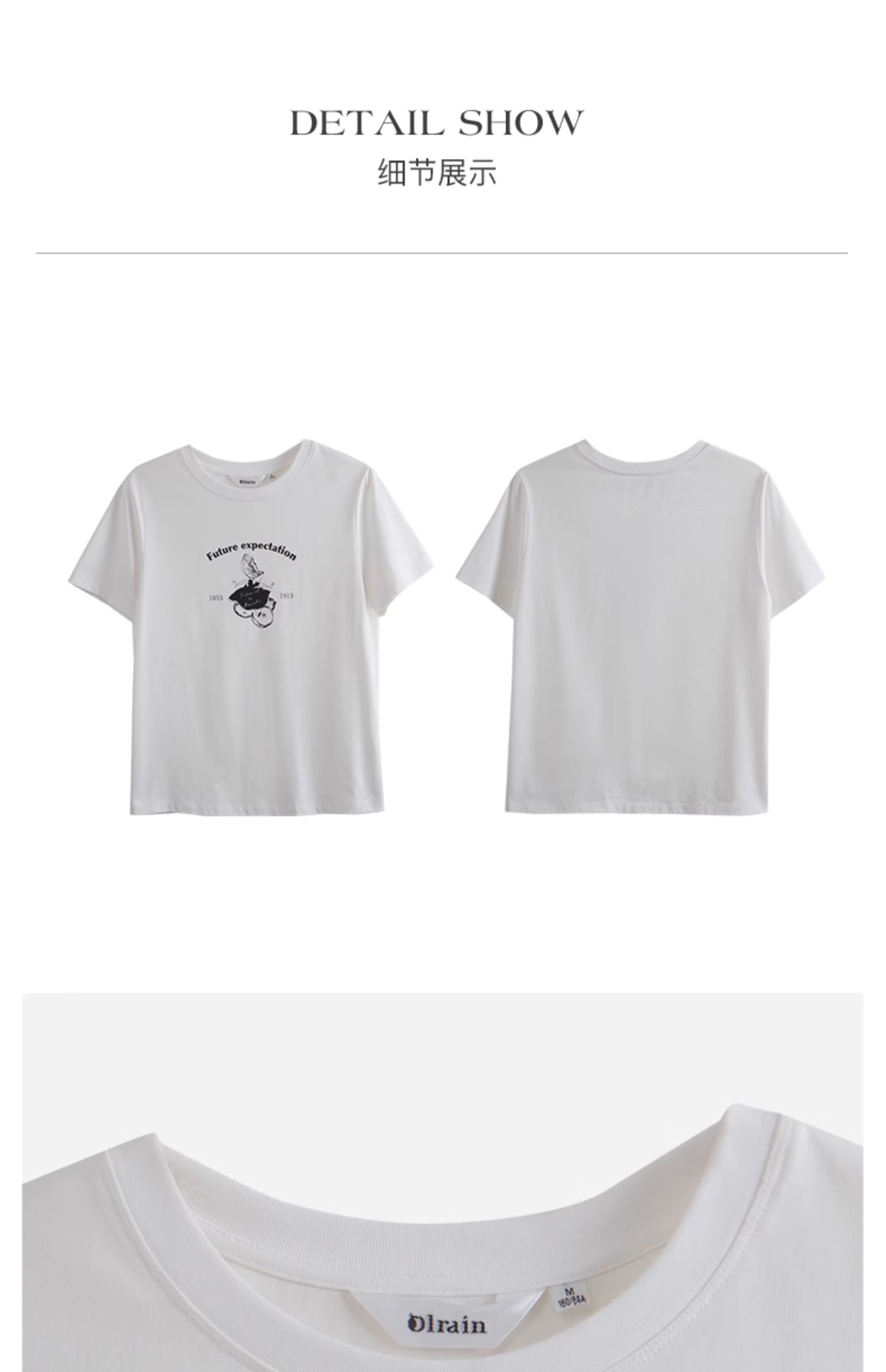 OLrain欧芮儿白色短袖T恤女夏季2024年新款宽松百搭印花上衣