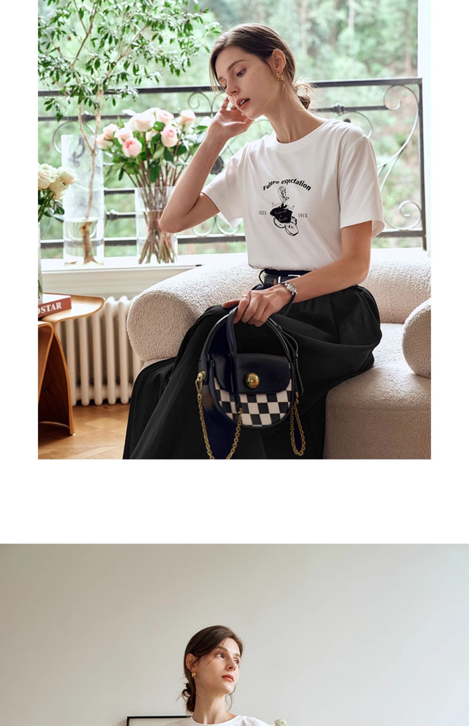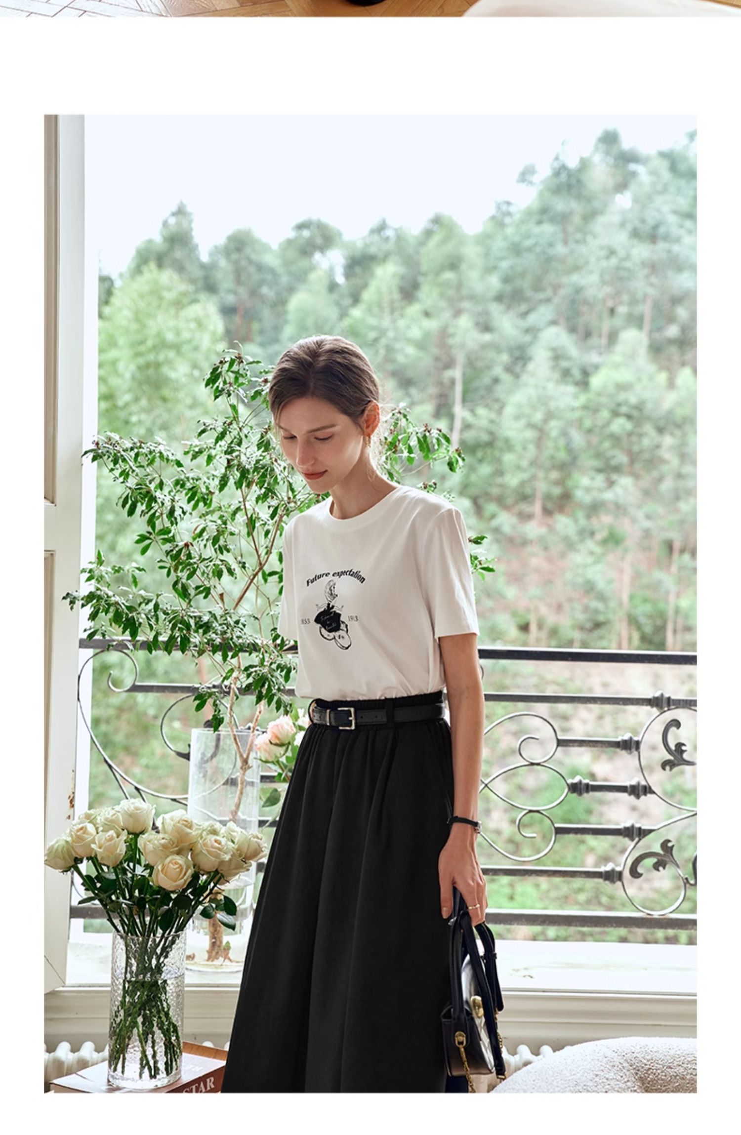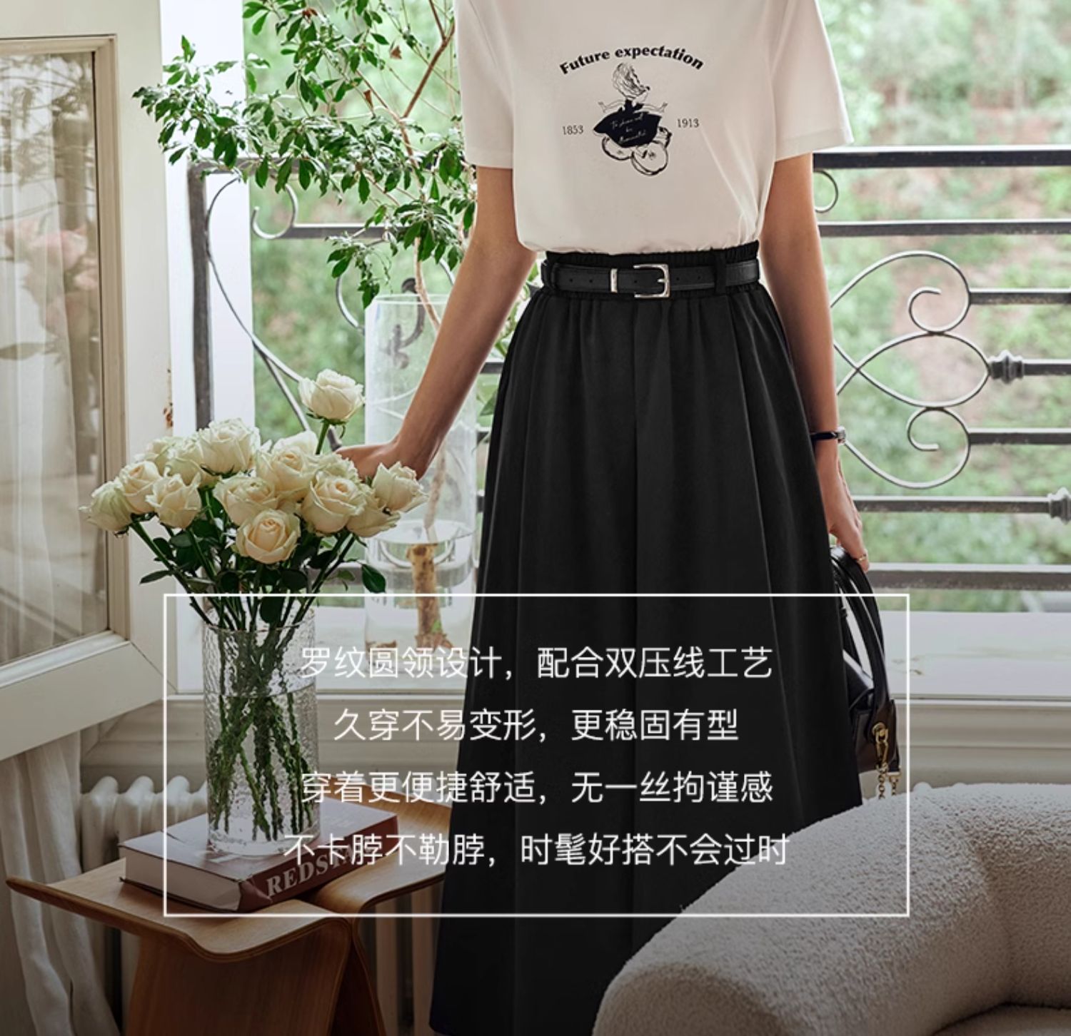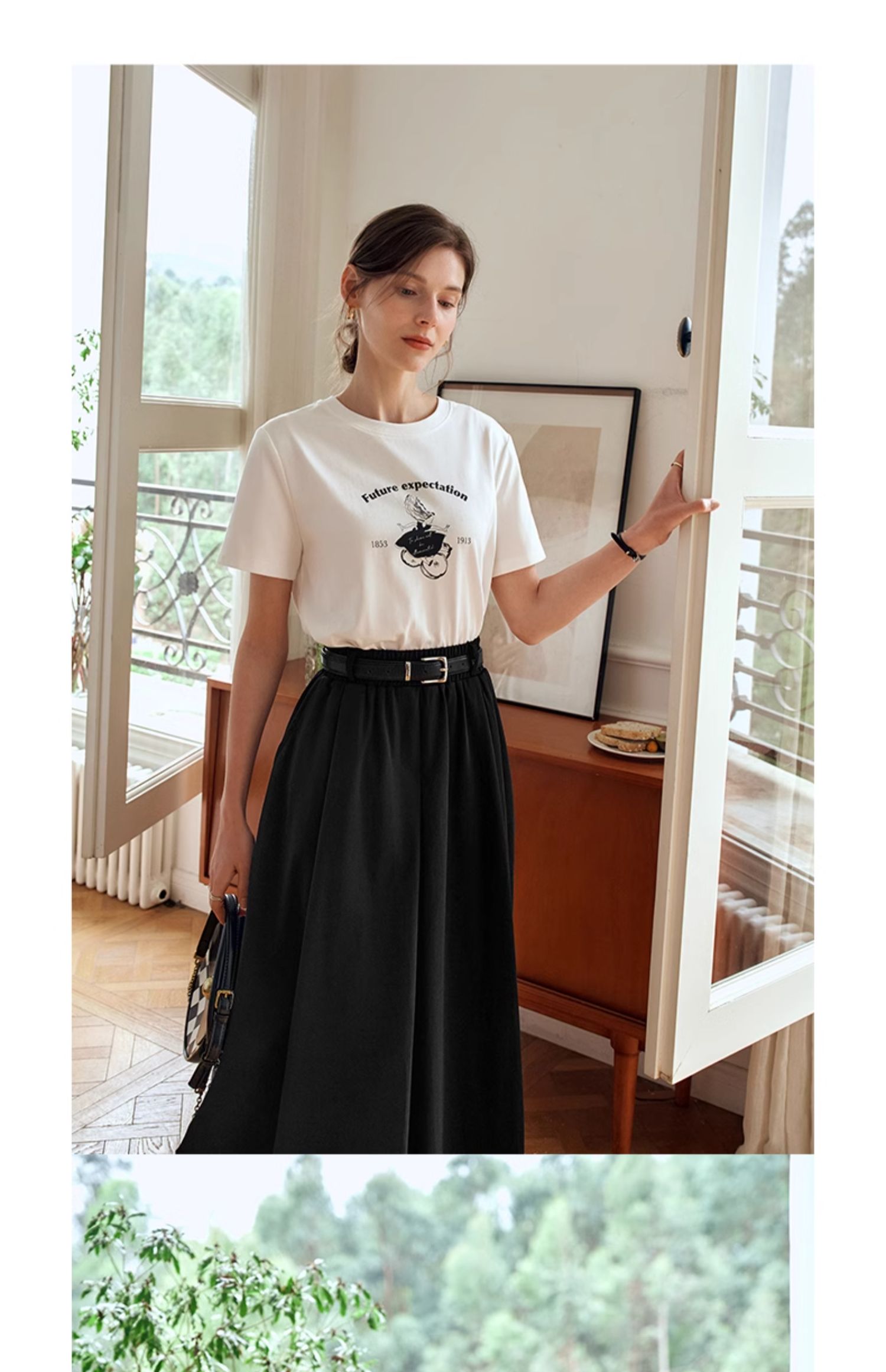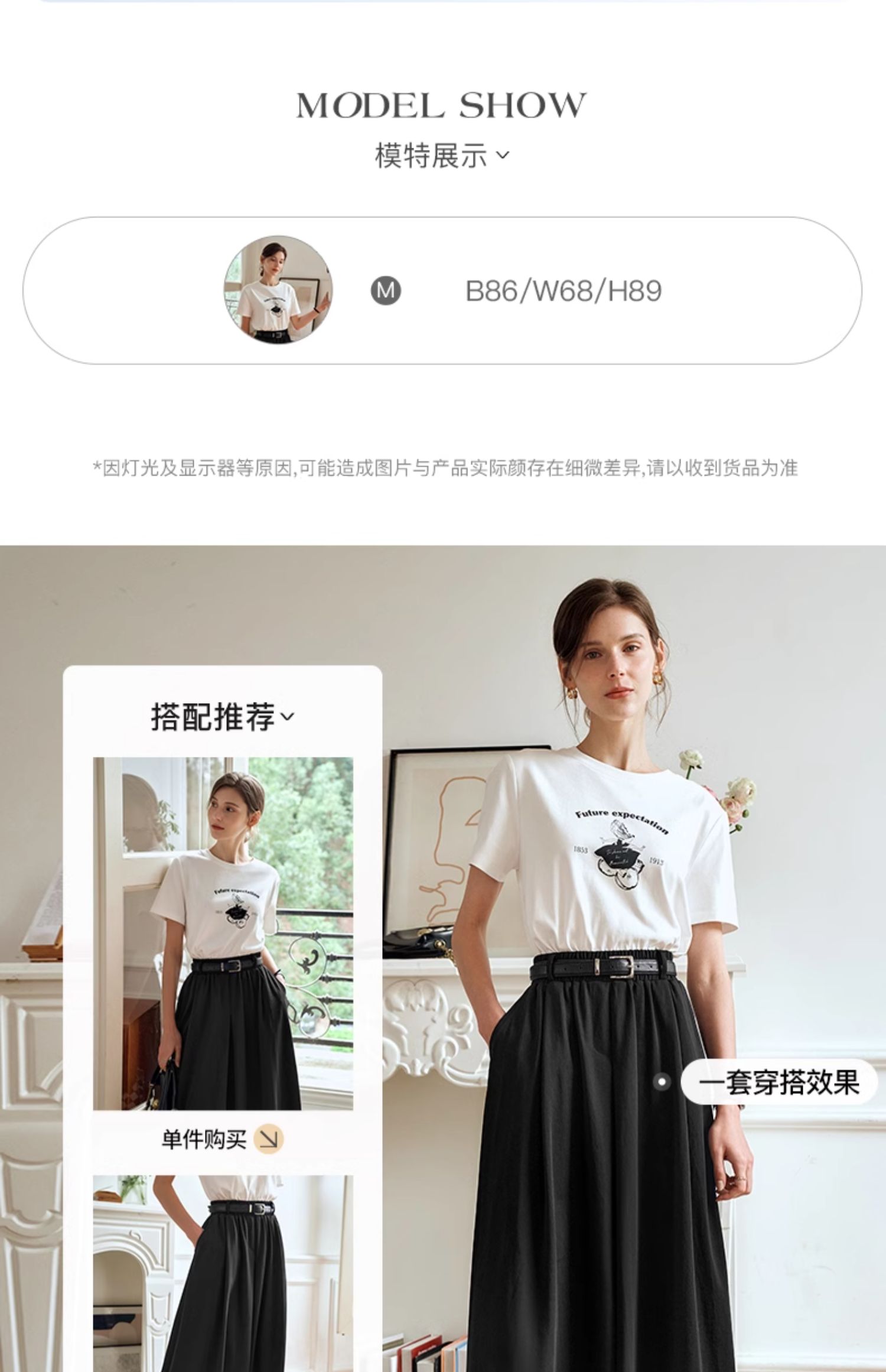 OLrain欧芮儿白色短袖T恤女夏季2024年新款宽松百搭印花上衣