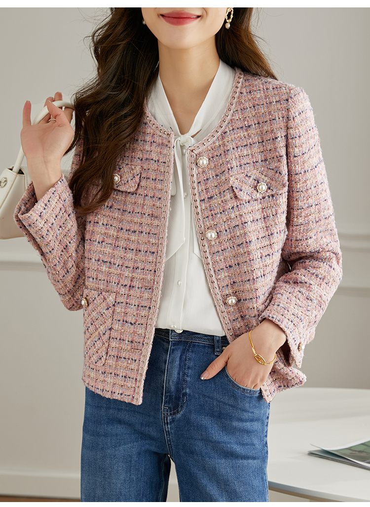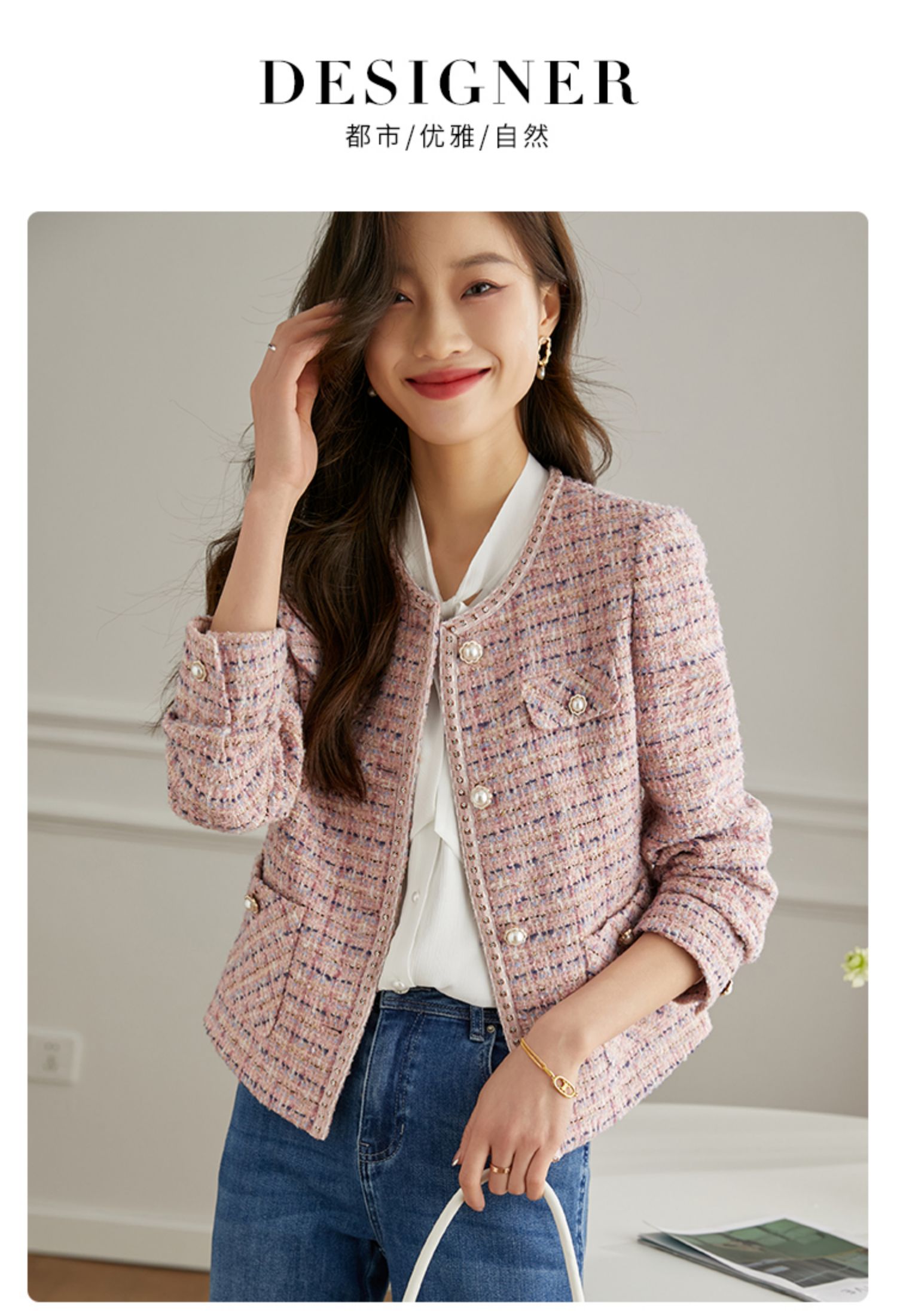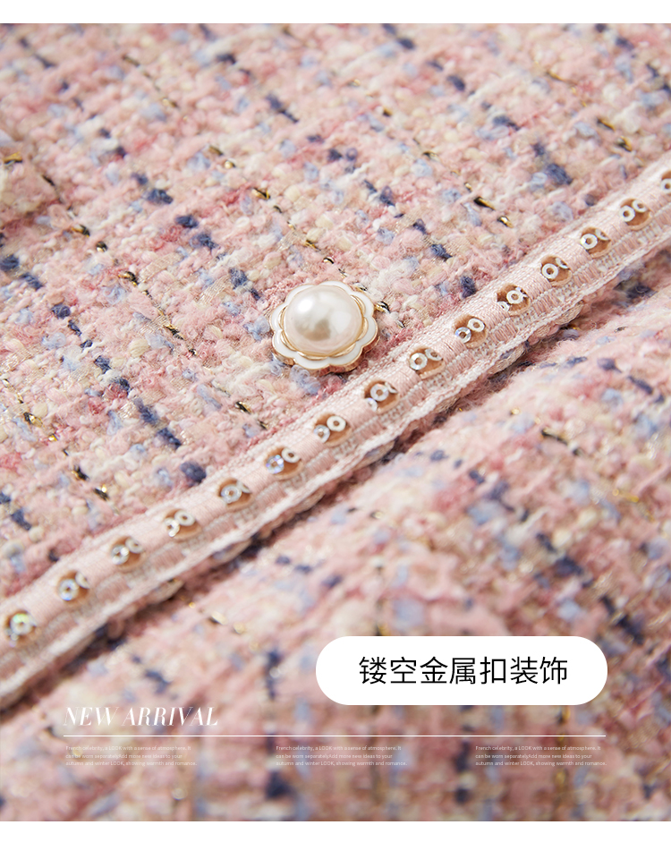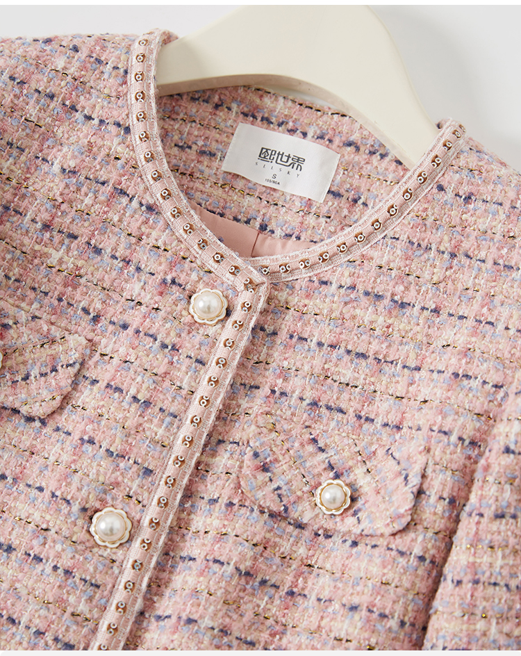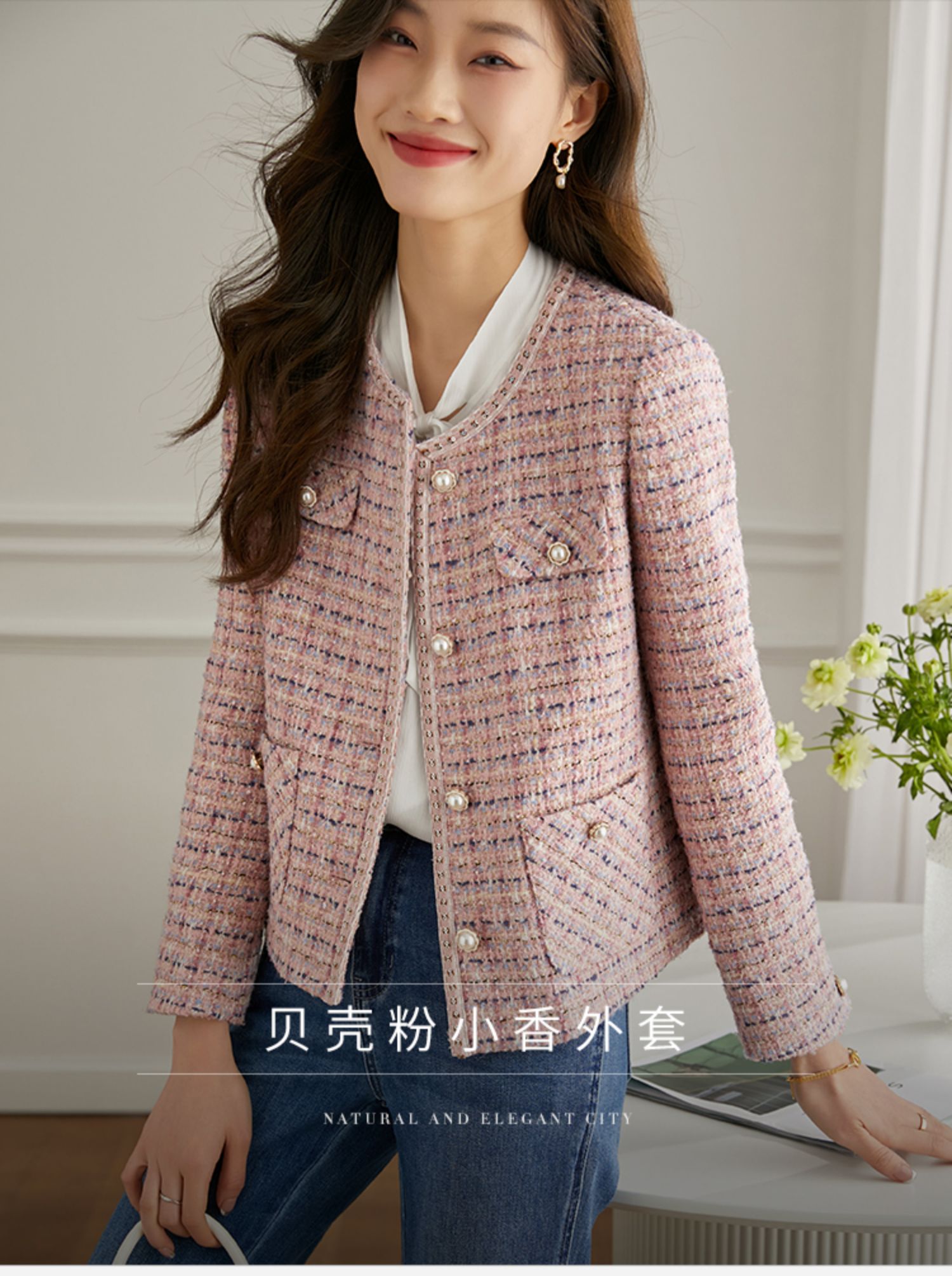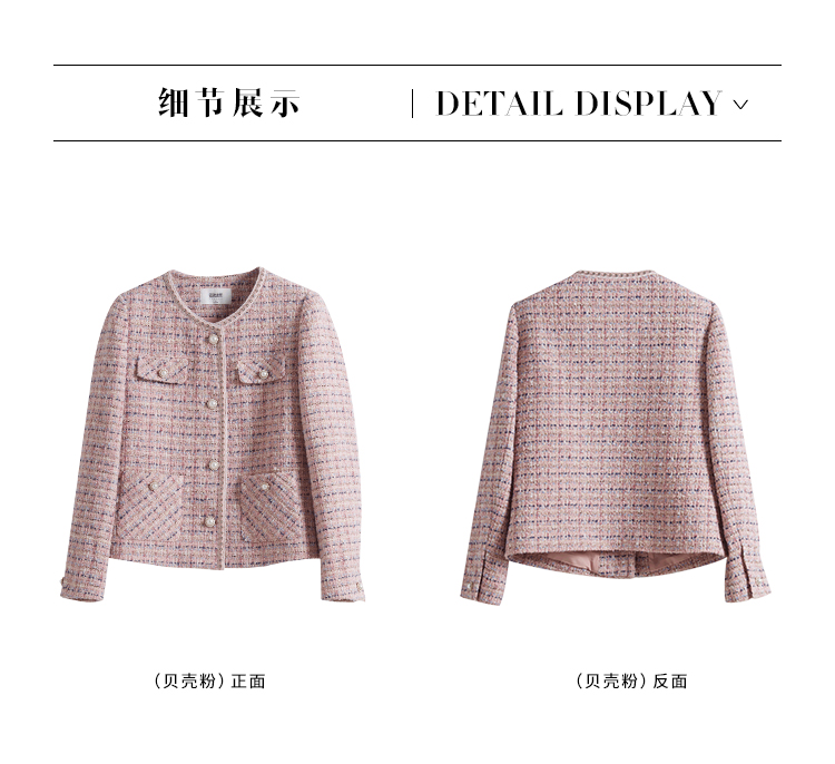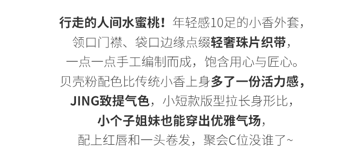 【专属秒杀价】熙世界贝壳粉小香风外套女短款2025春秋新款珠片织带名媛气质上衣