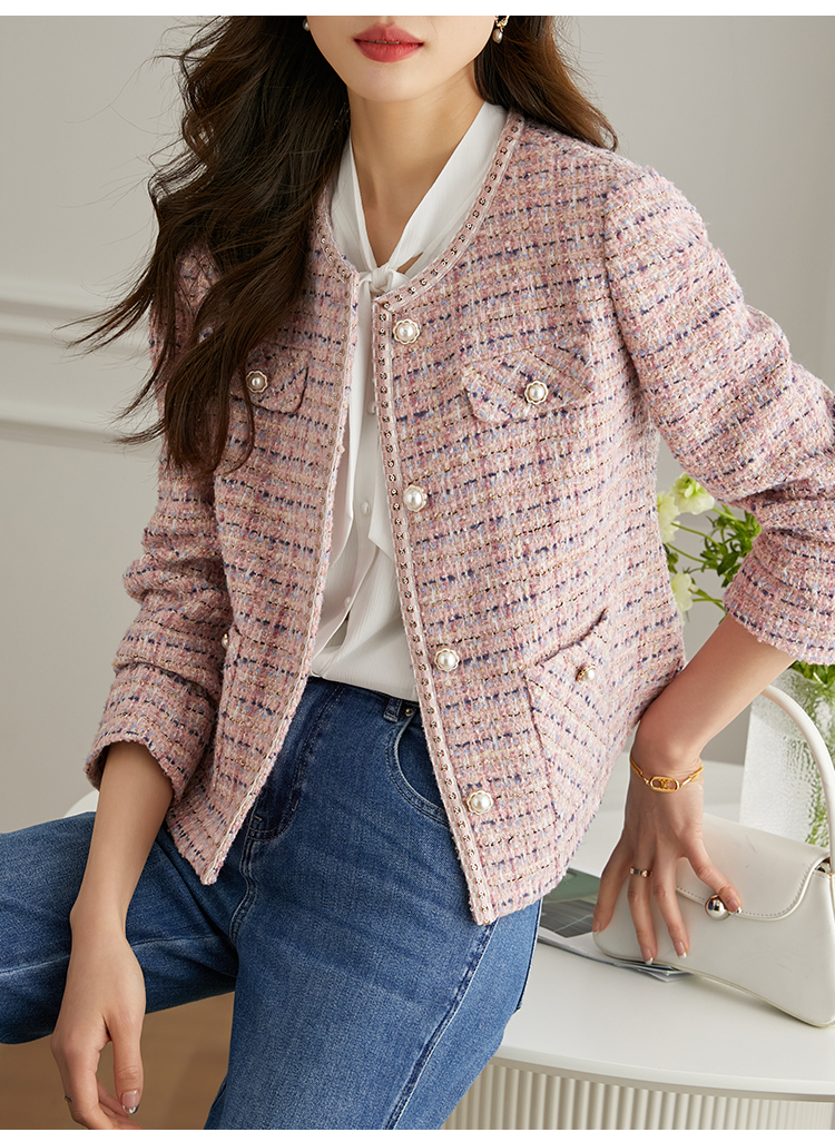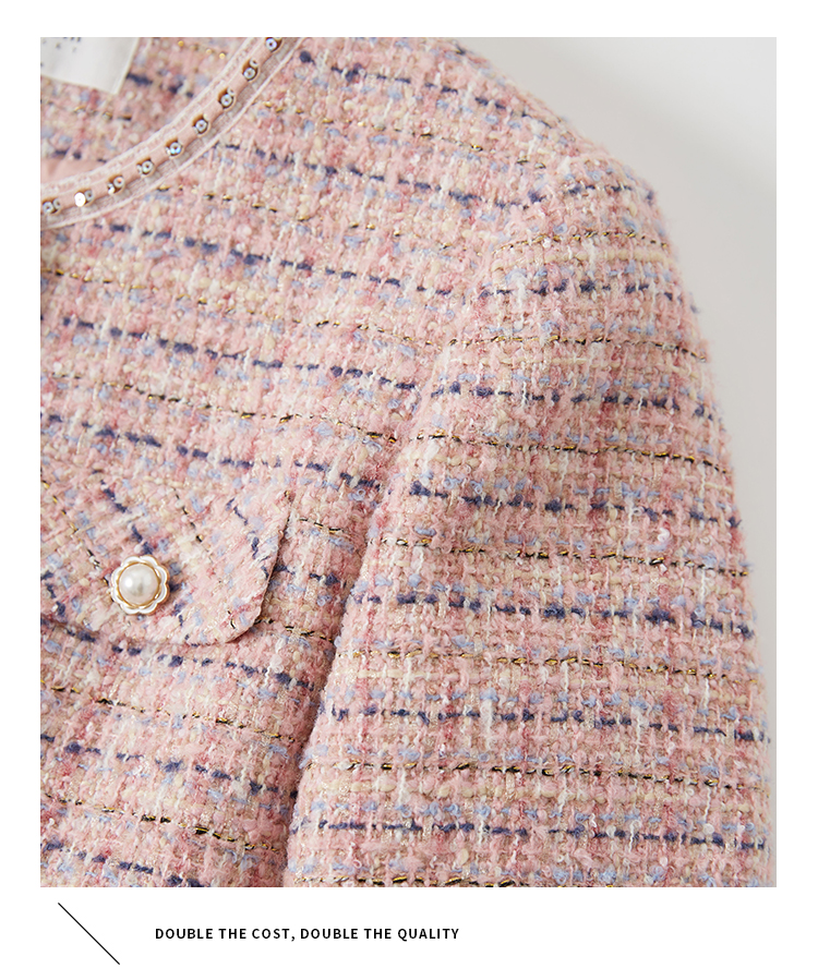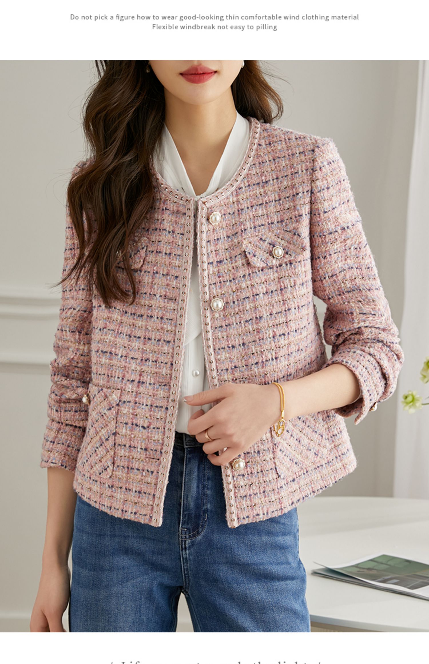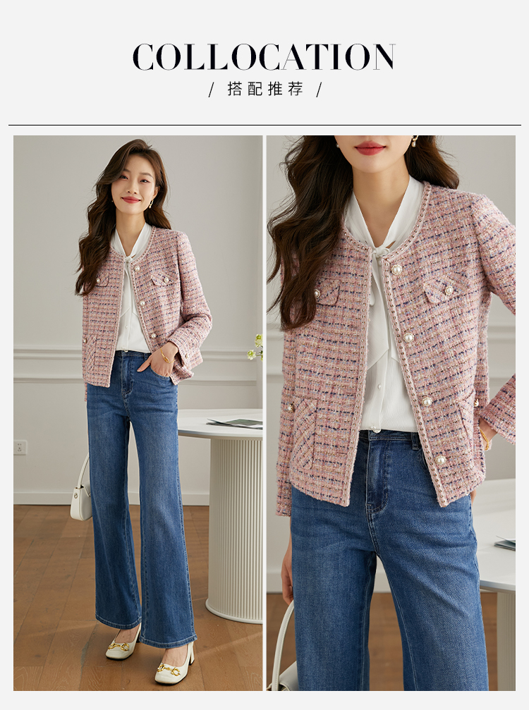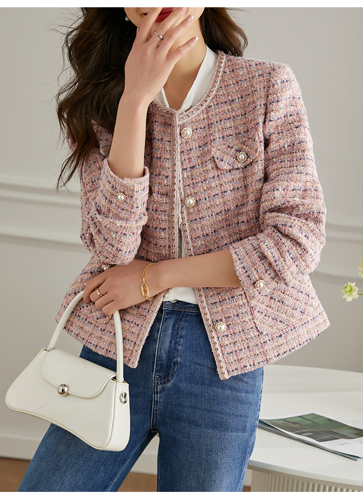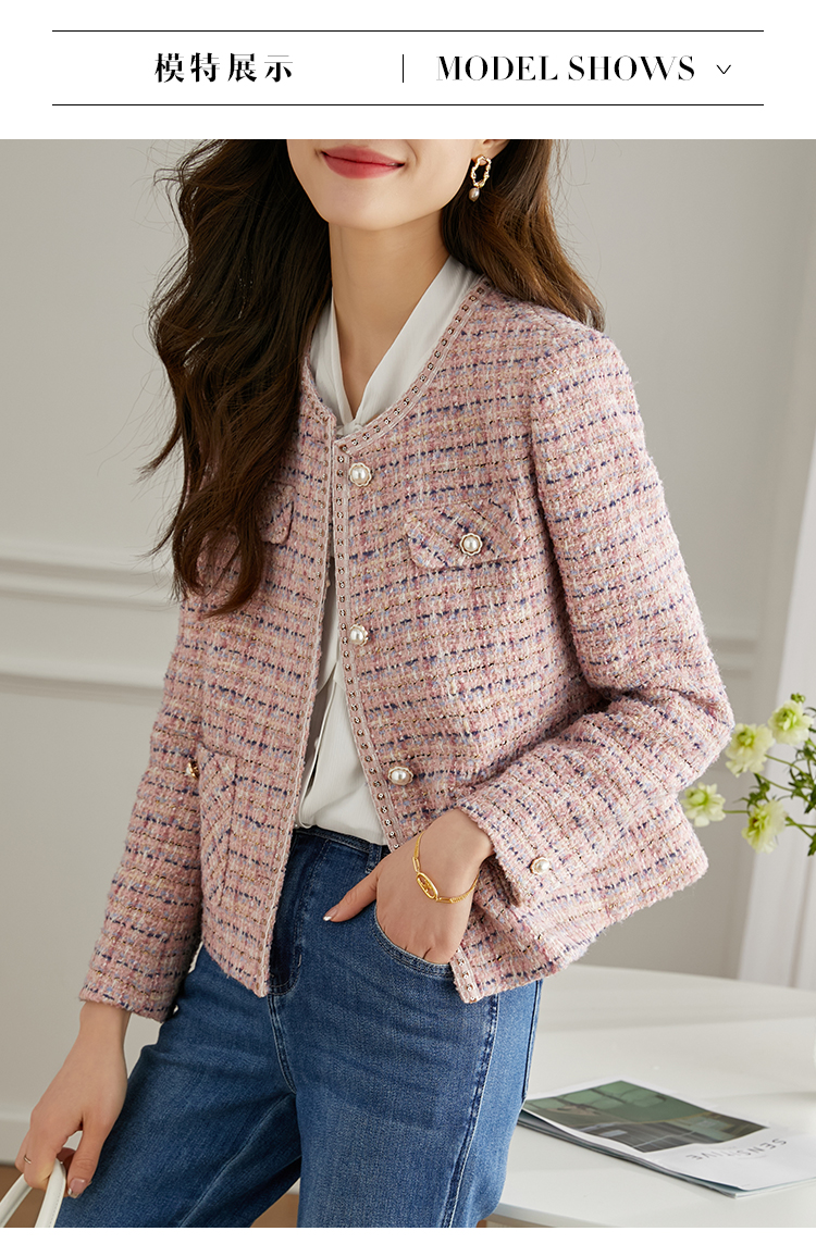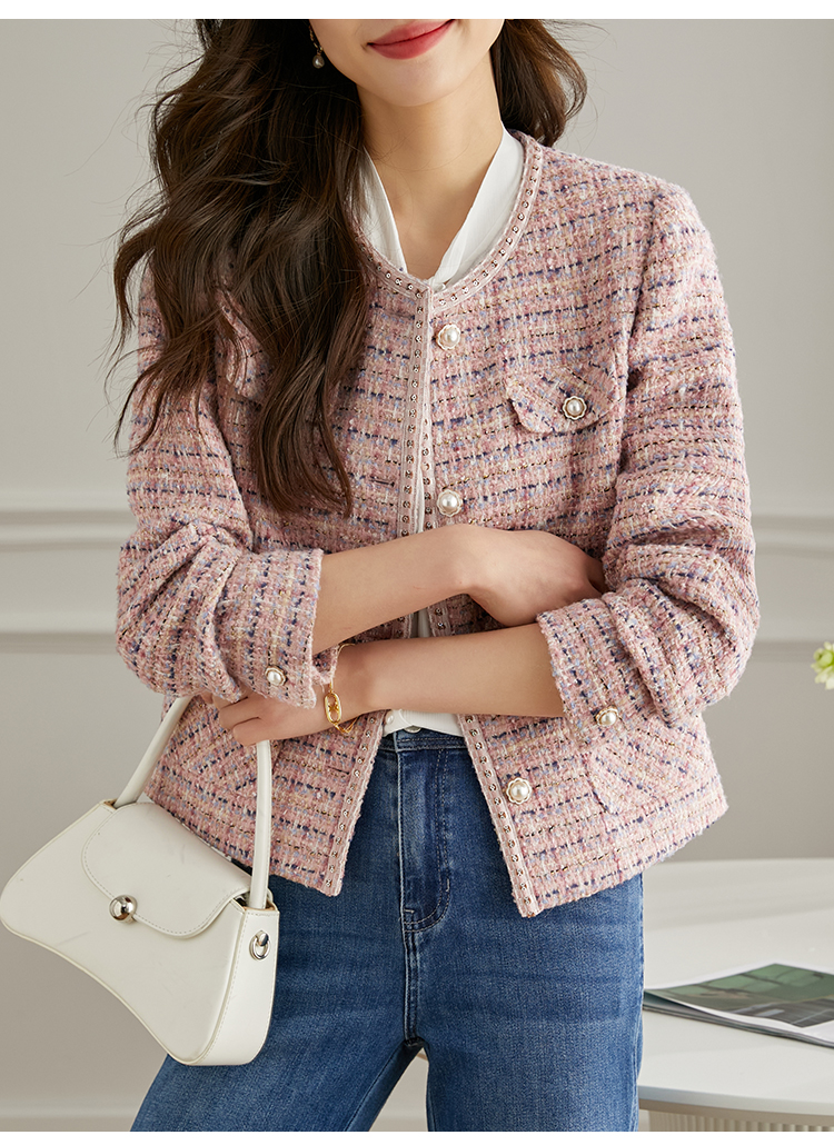【专属秒杀价】熙世界贝壳粉小香风外套女短款2025春秋新款珠片织带名媛气质上衣