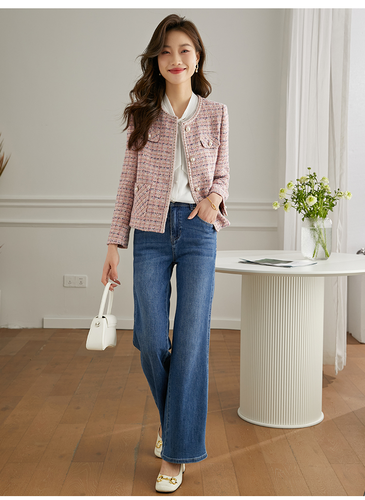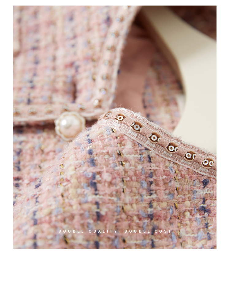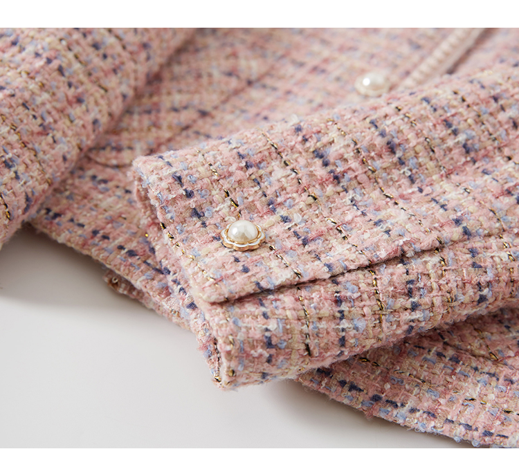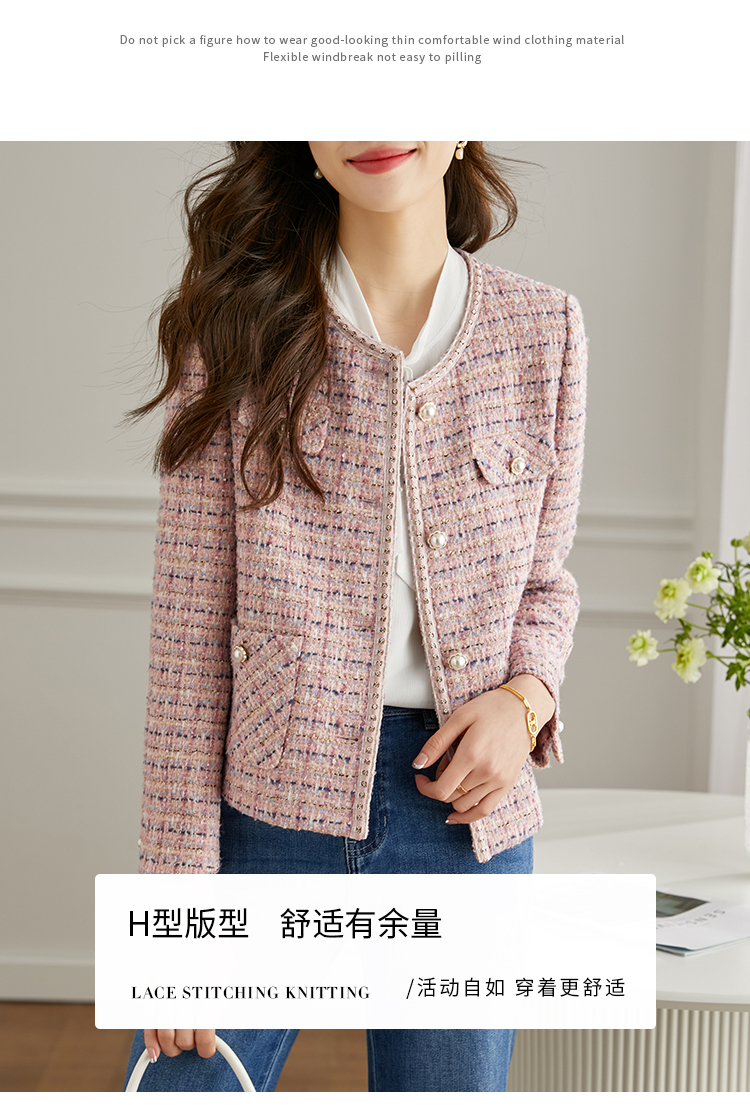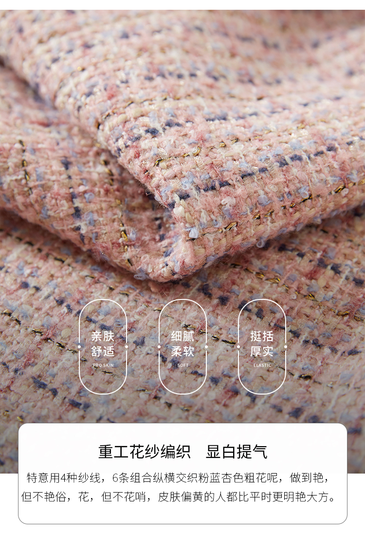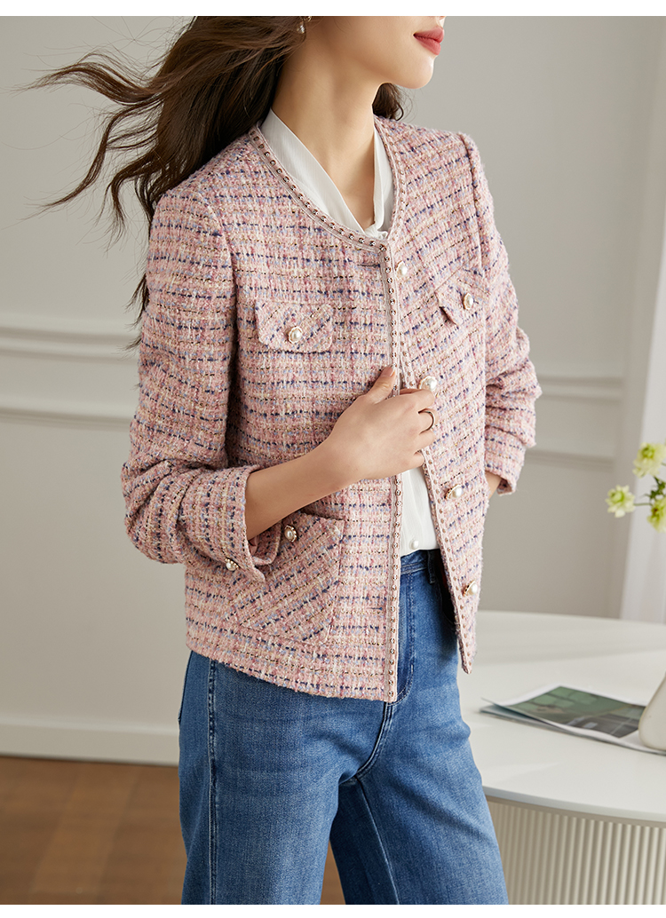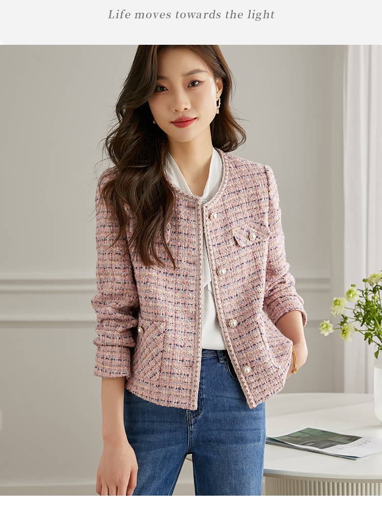 【专属秒杀价】熙世界贝壳粉小香风外套女短款2025春秋新款珠片织带名媛气质上衣