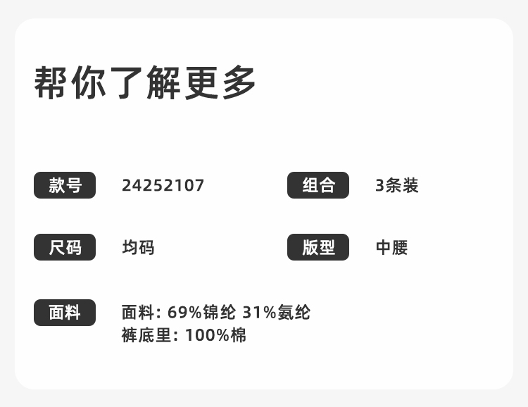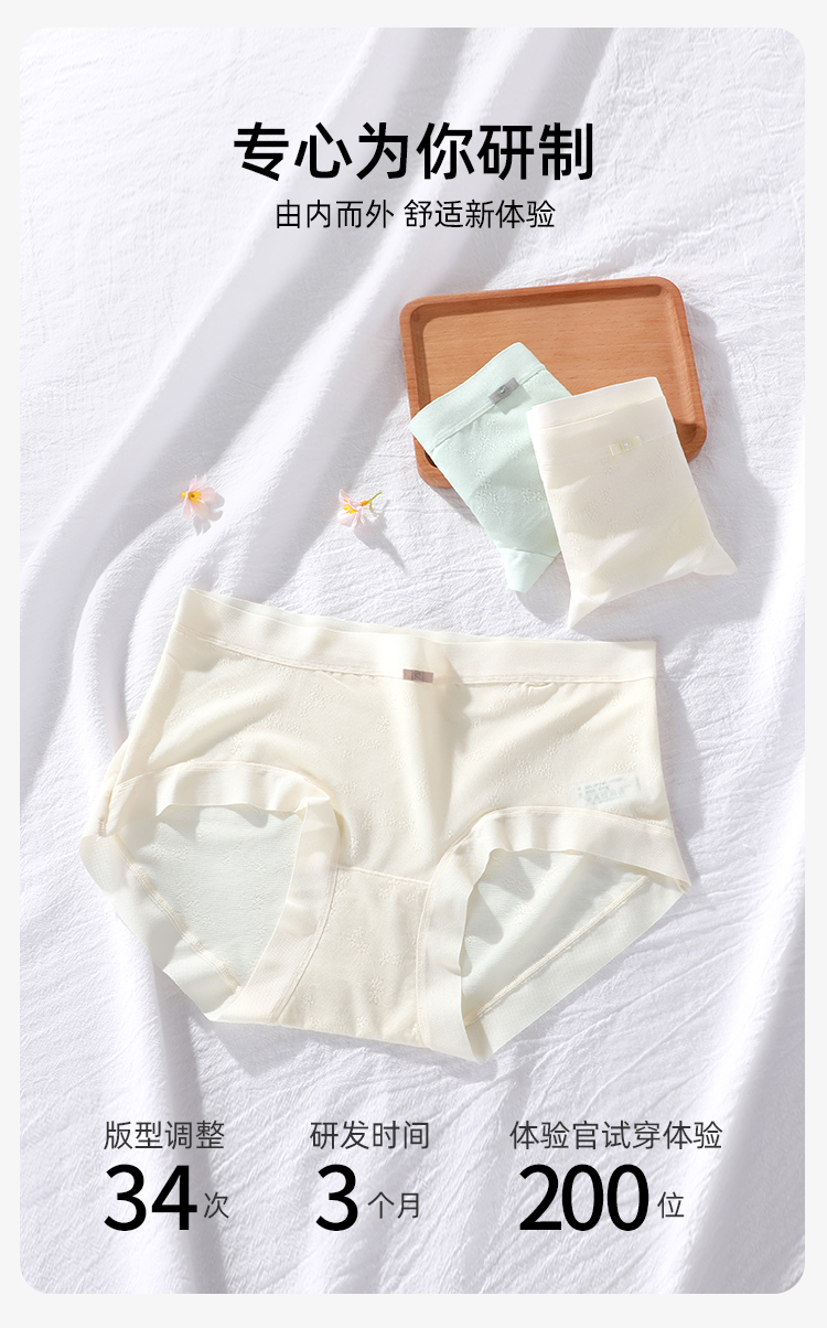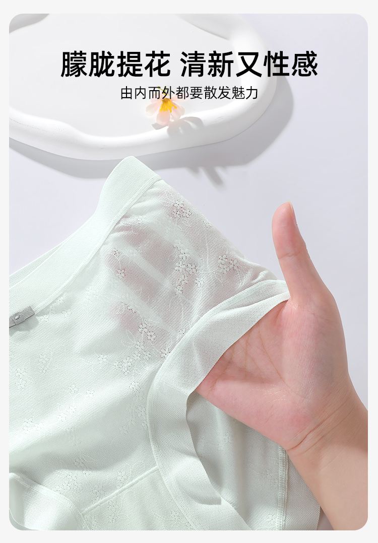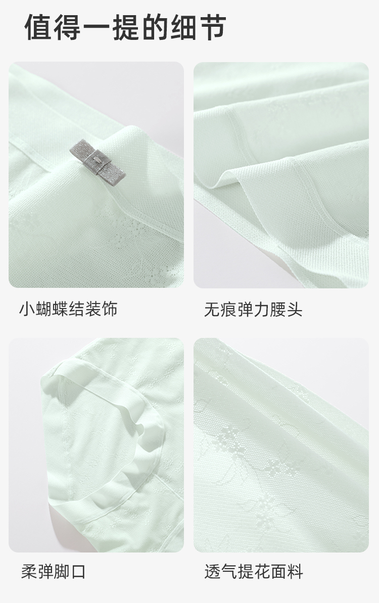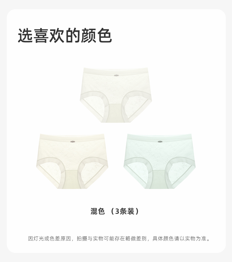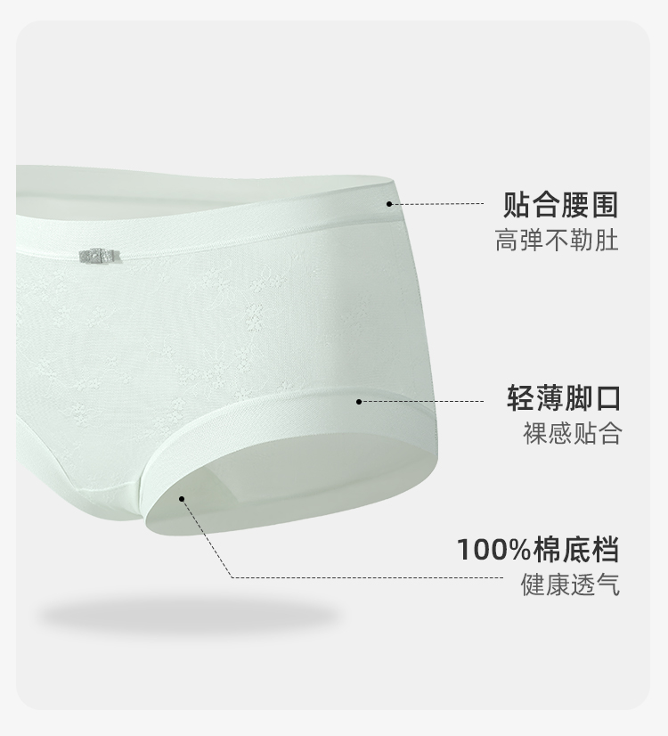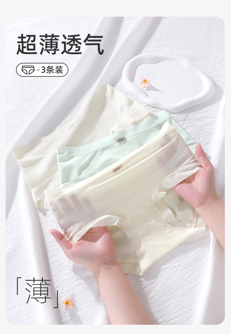 【3条装】熳洁儿 中腰无痕内裤夏季超薄透气提花纯棉底档24252107