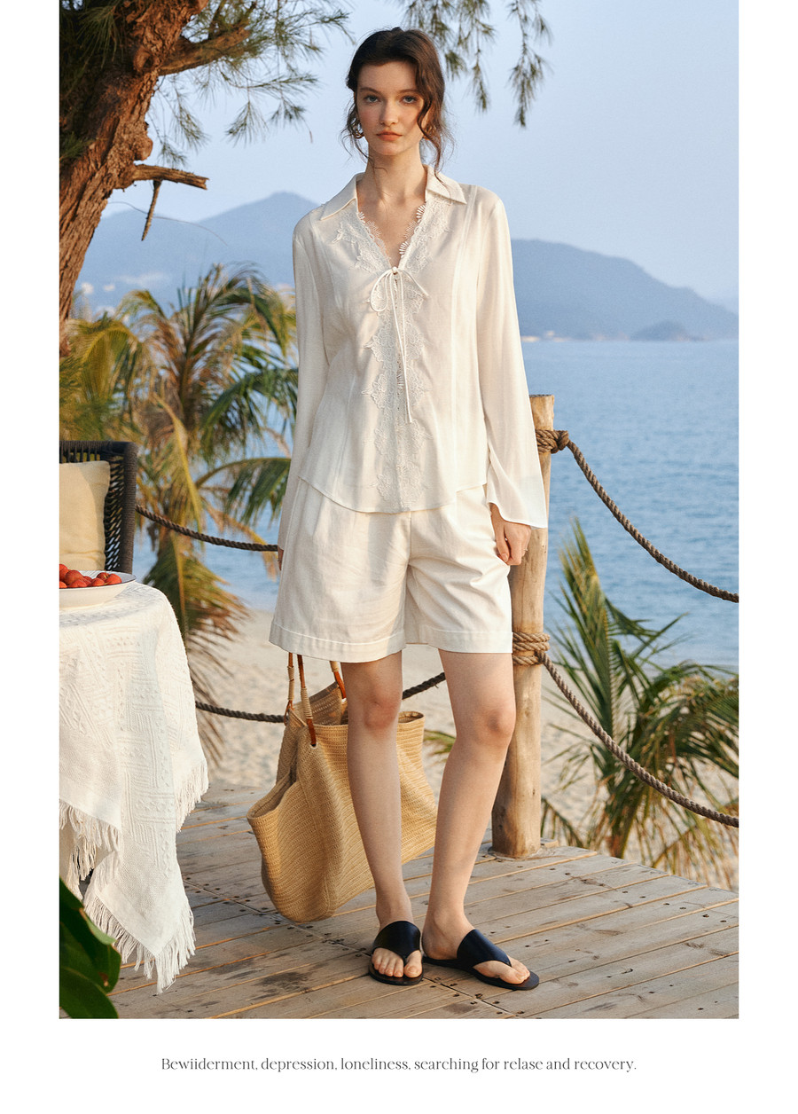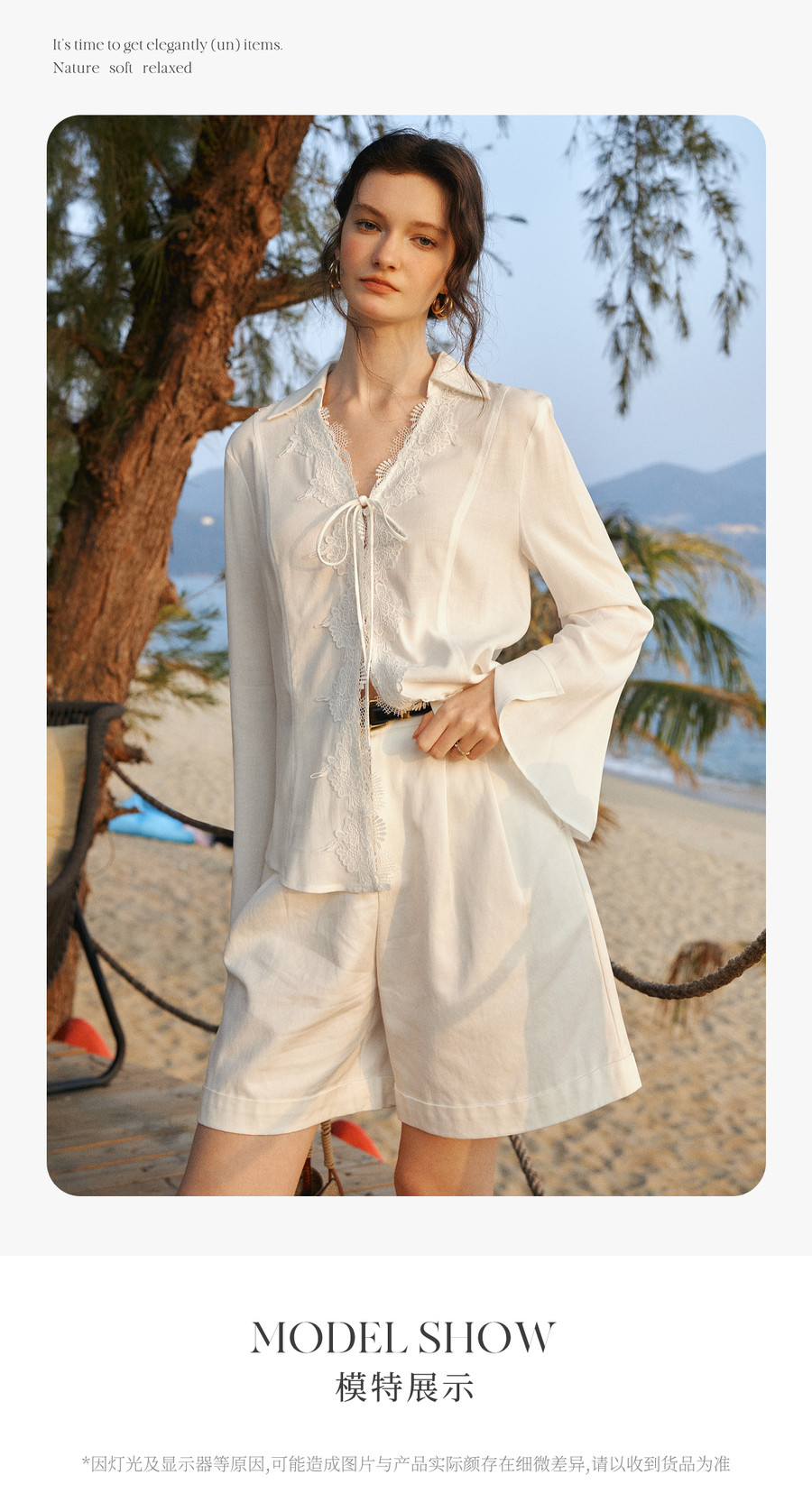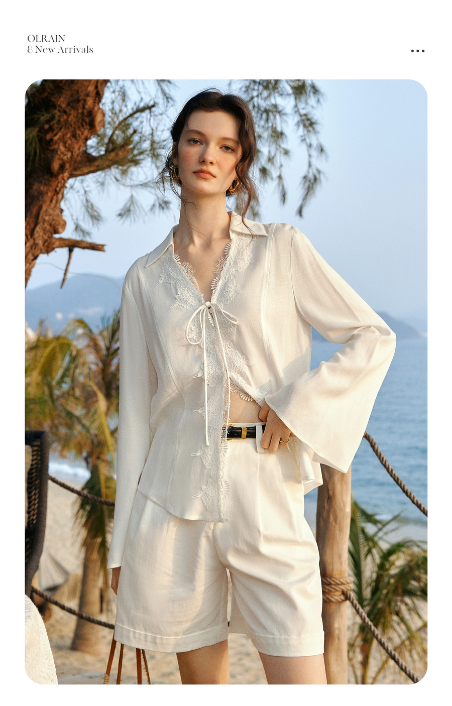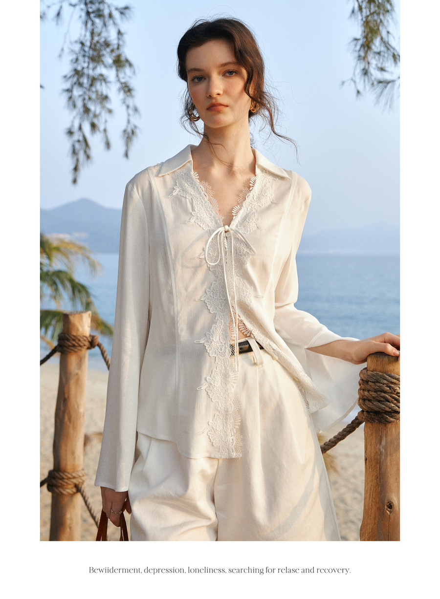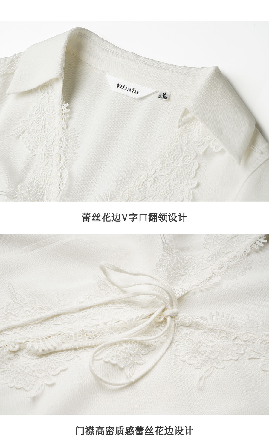 欧芮儿法式度假浪漫蕾丝花边白色长袖衬衫女春季2026新款宽松衬衣