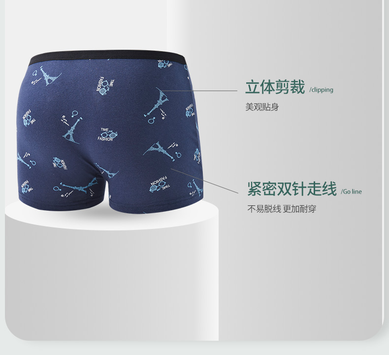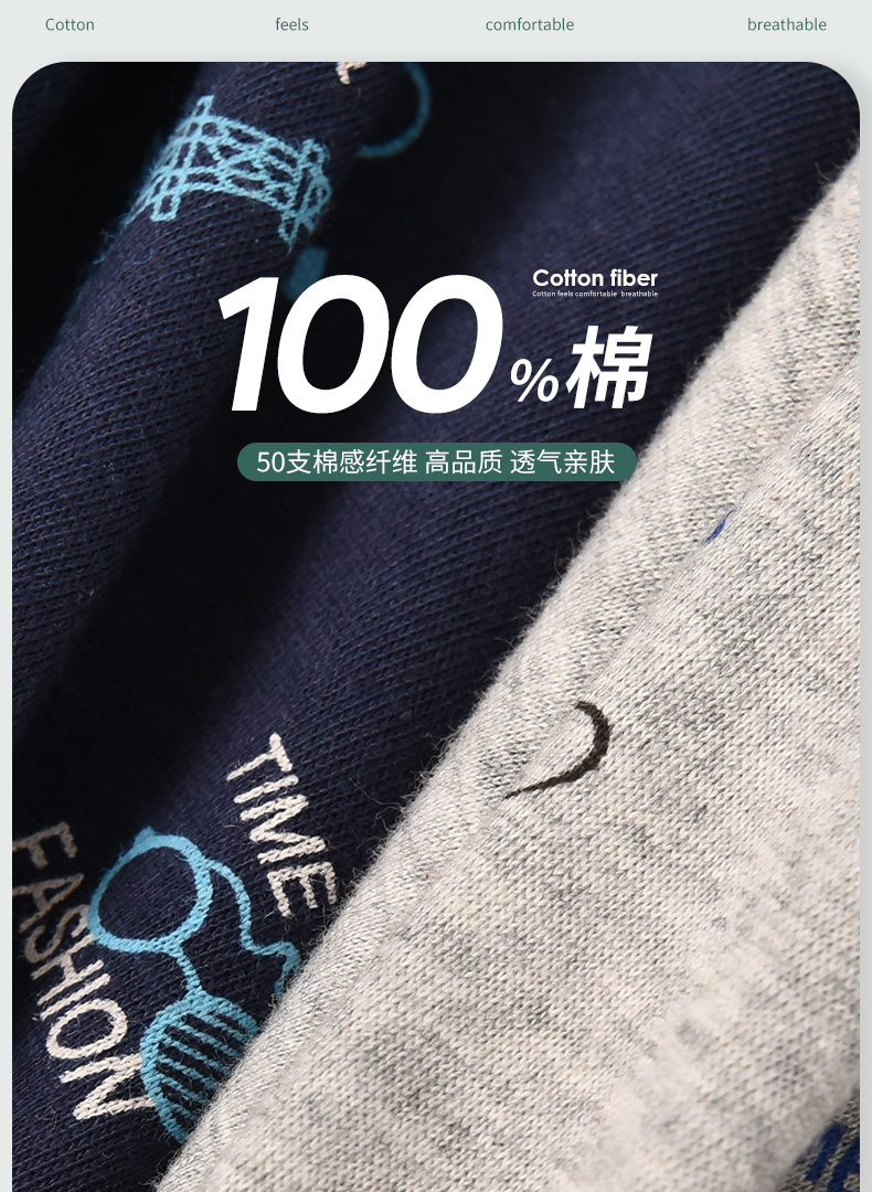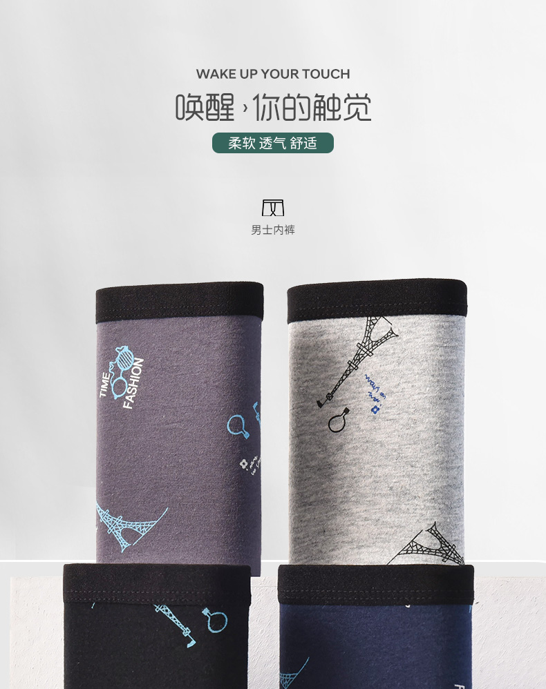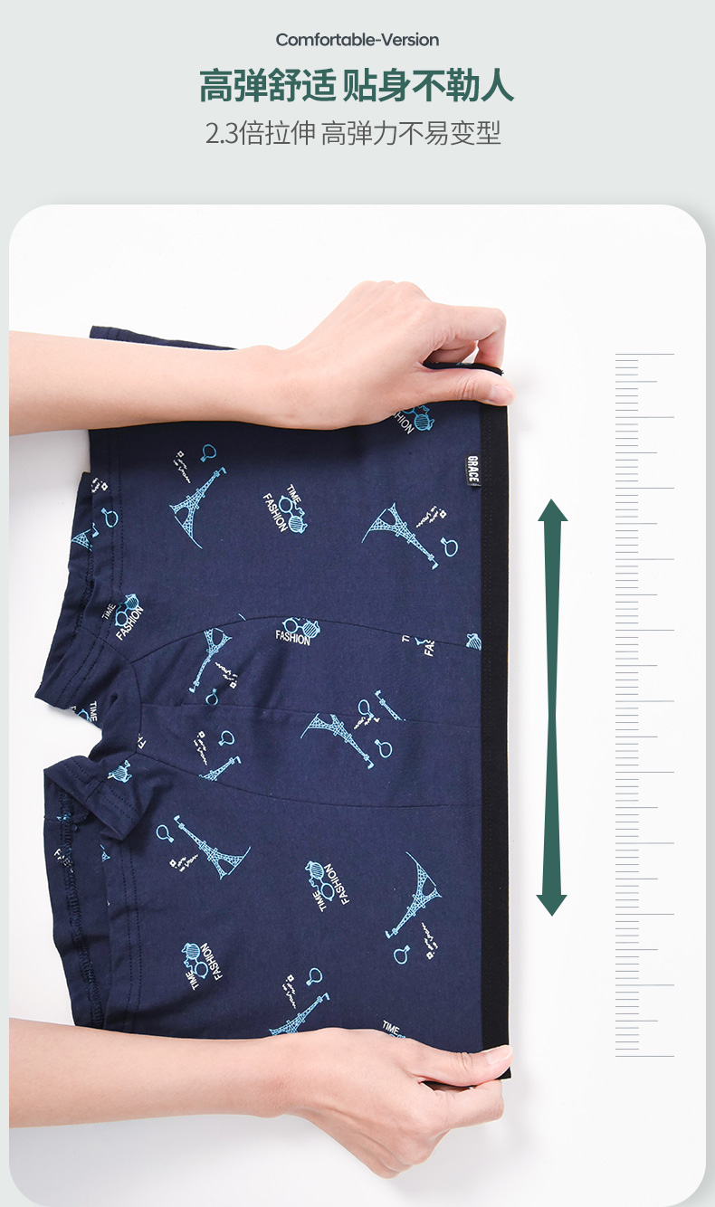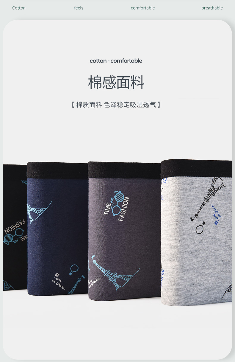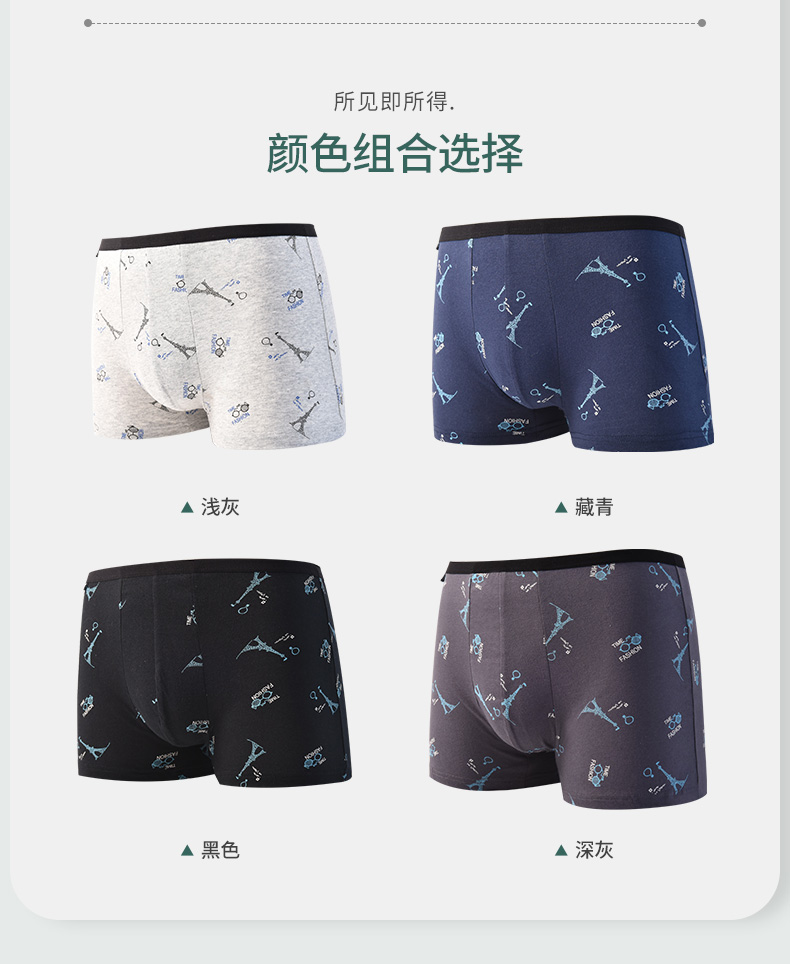 洁丽雅4条装男士内裤中腰纯棉印花平角青年运动休闲裤头裤衩男