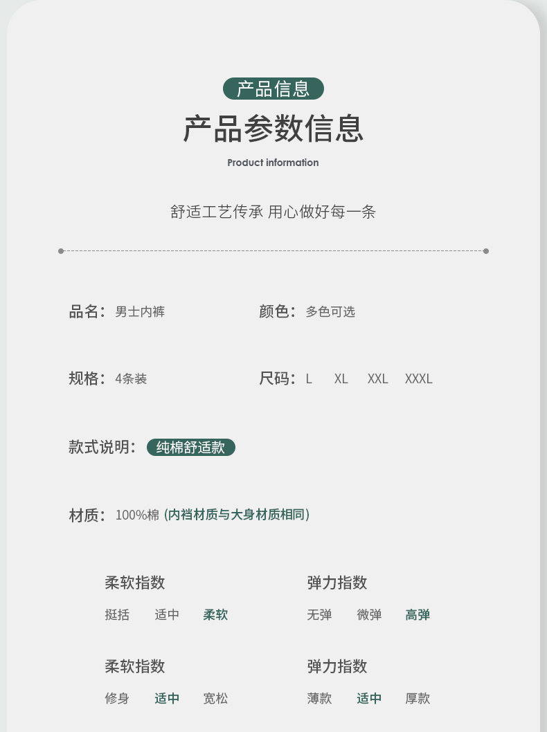 洁丽雅男士内裤高品质柔软舒适高弹透气高弹纯色四角短裤中腰