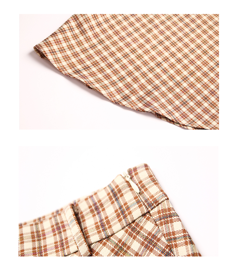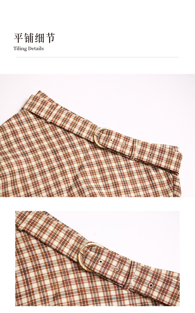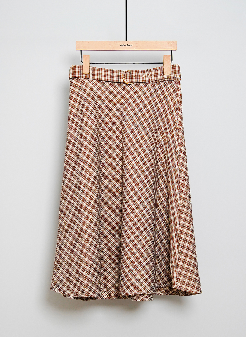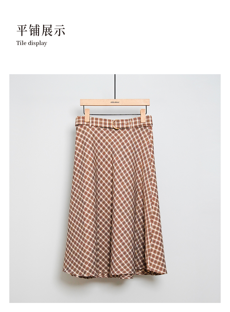 oldcolour春秋款气质百搭高腰咖色格子半身裙DN13063013