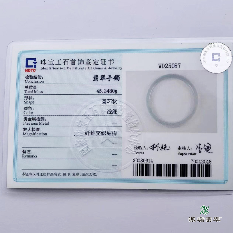 派瑞翡翠 翡翠手镯 糯种 浅绿