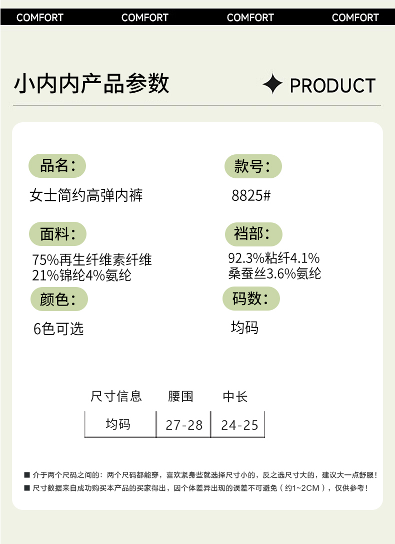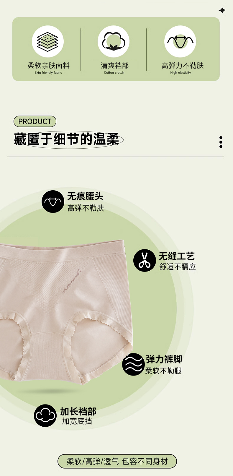 女士中高腰中大版高弹力无缝舒适内裤三角裤8826