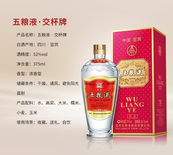 五粮液·新品交杯牌 52度 375mL*1瓶