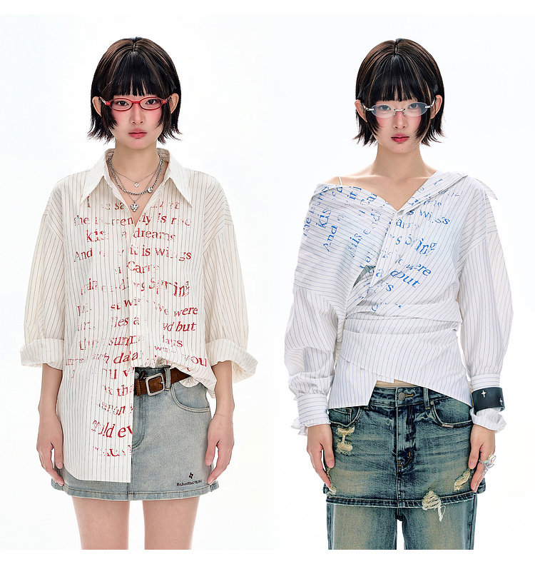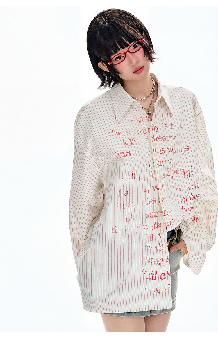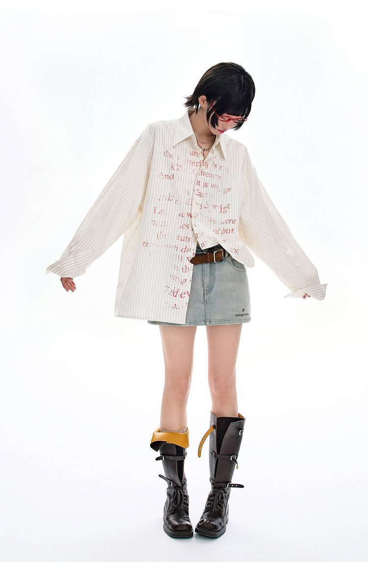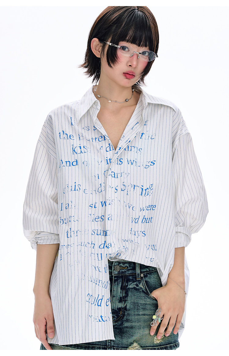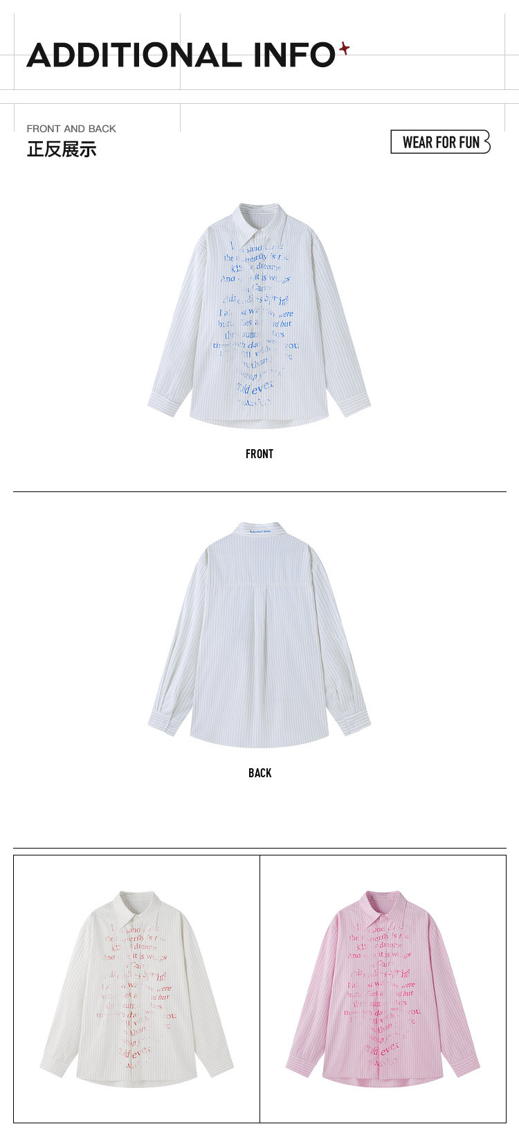 BJHG不计后果条纹衬衫女长袖春季新款做旧印花基础款休闲内搭外套
