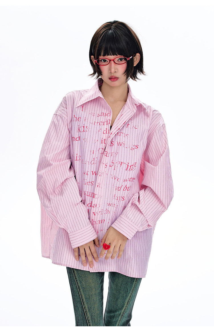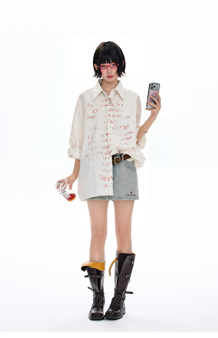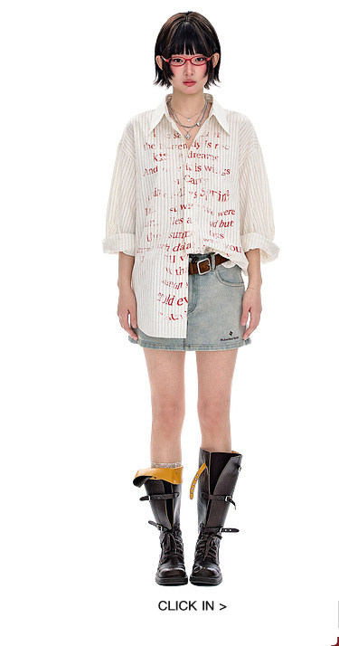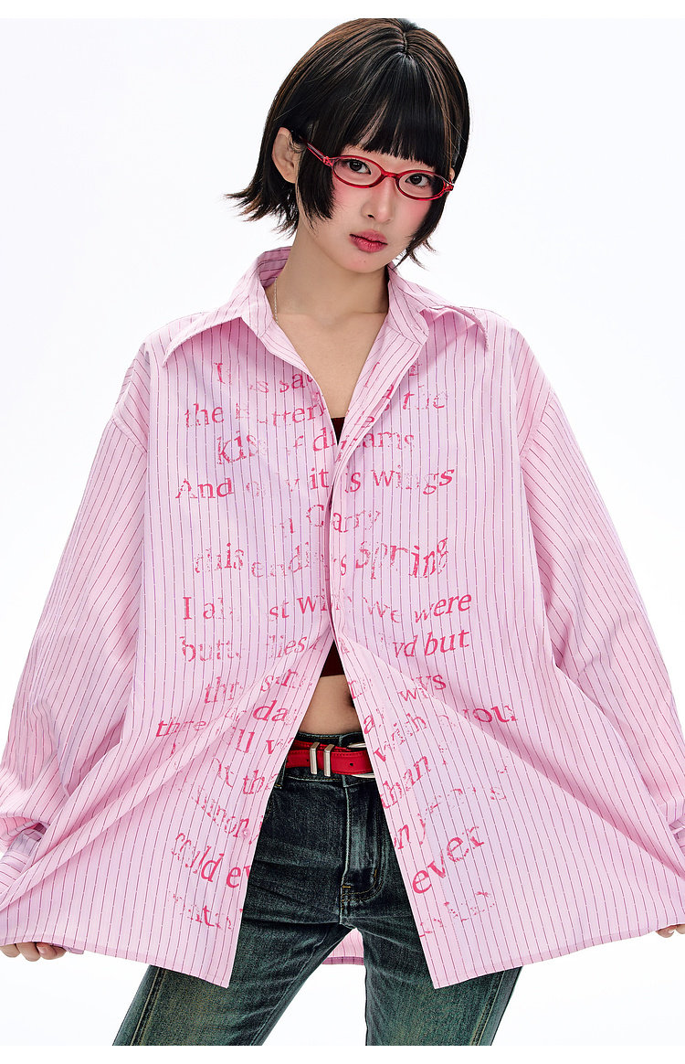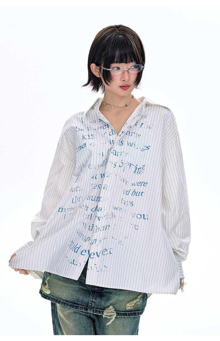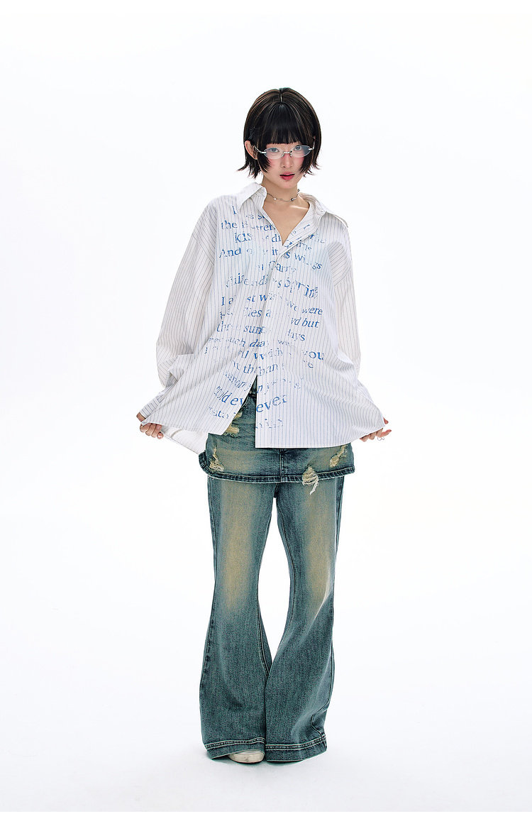 BJHG不计后果条纹衬衫女长袖春季新款做旧印花基础款休闲内搭外套