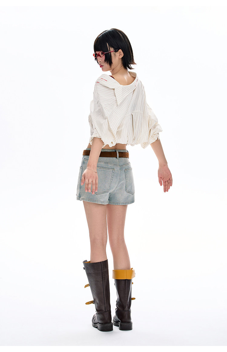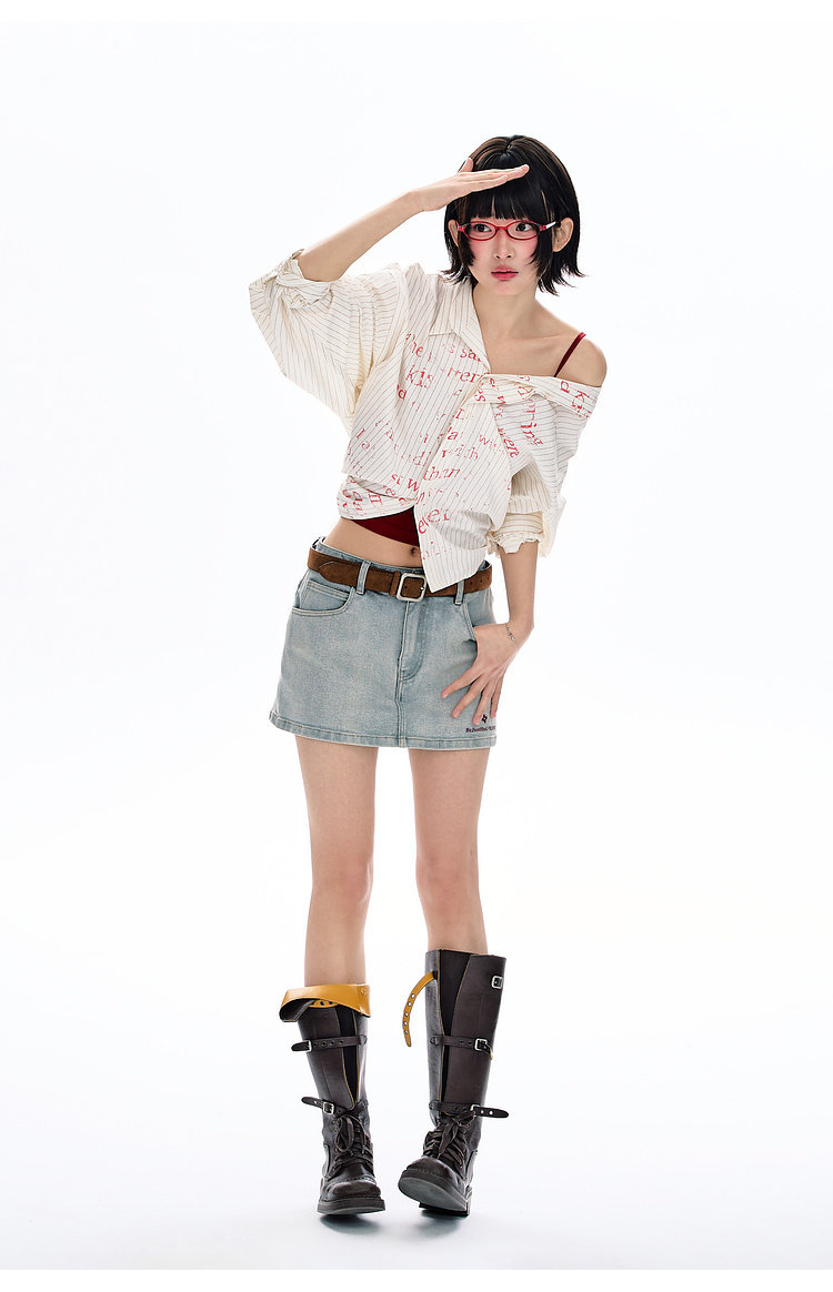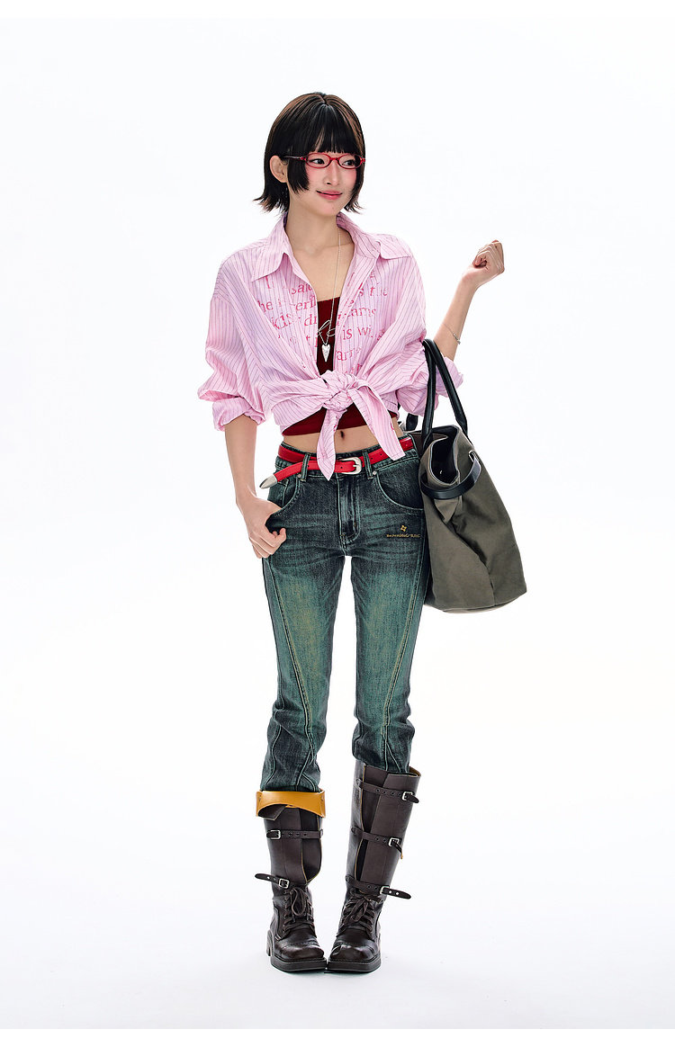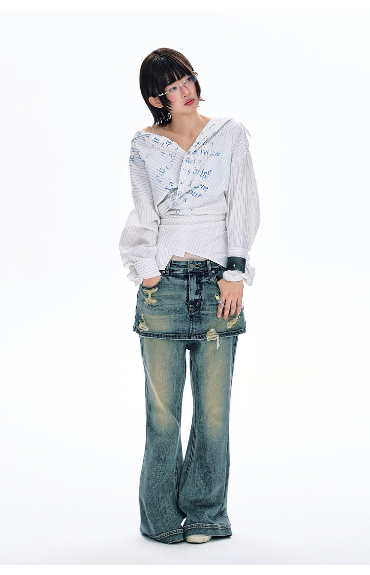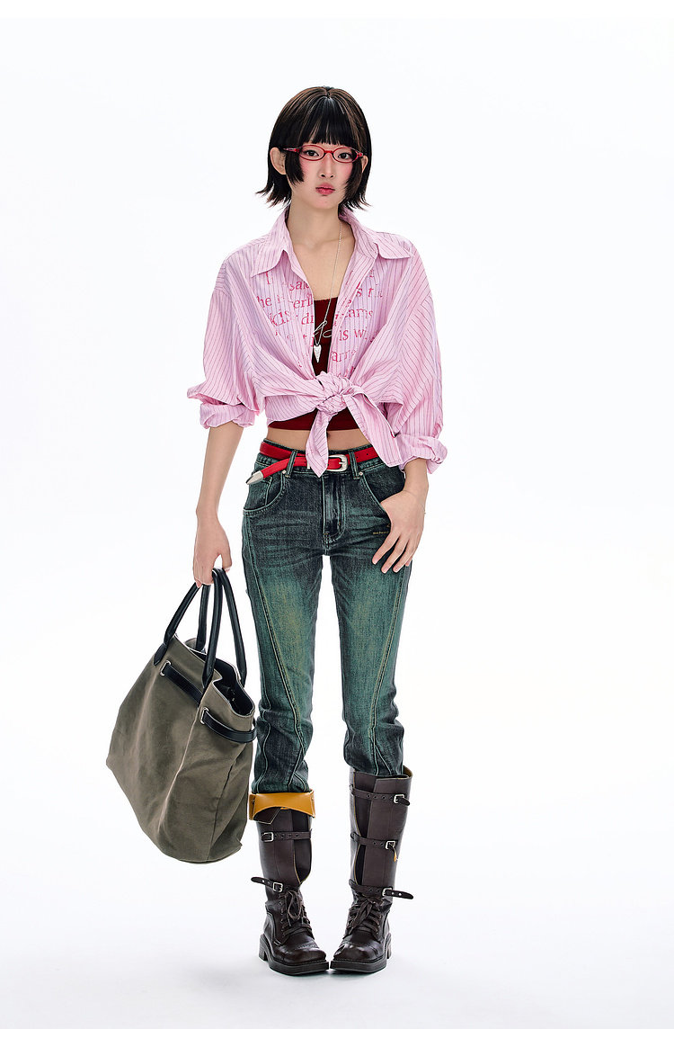 BJHG不计后果条纹衬衫女长袖春季新款做旧印花基础款休闲内搭外套