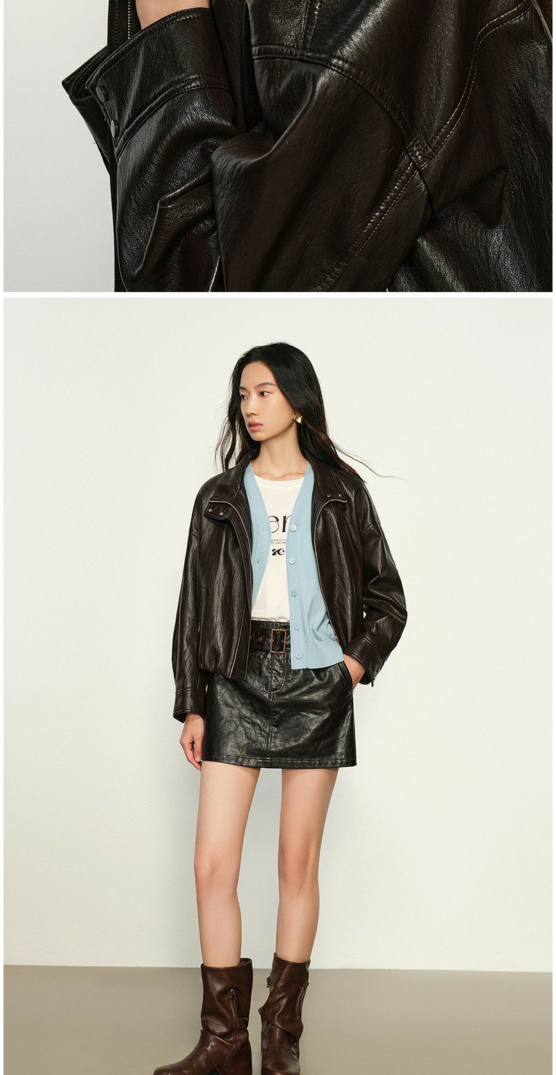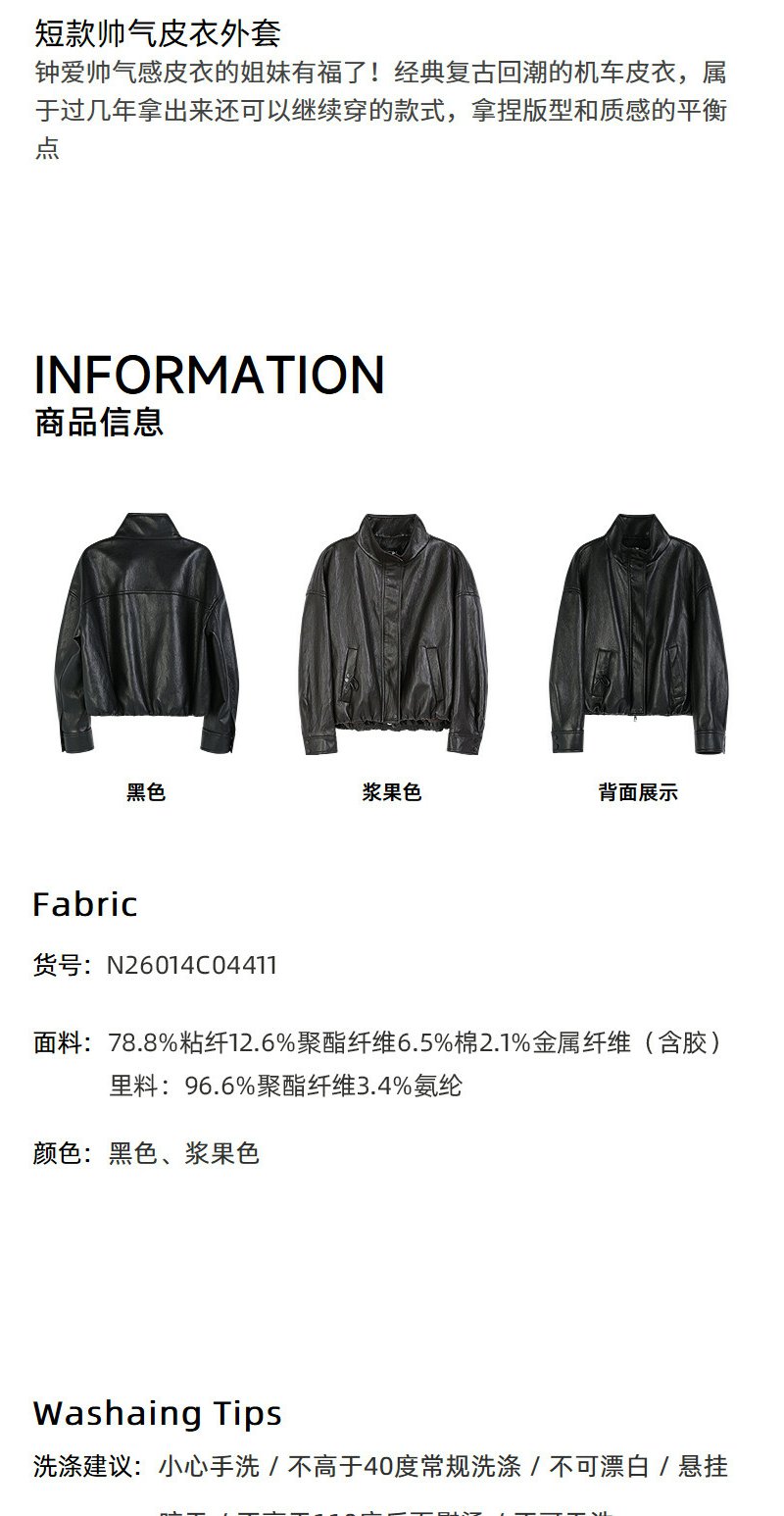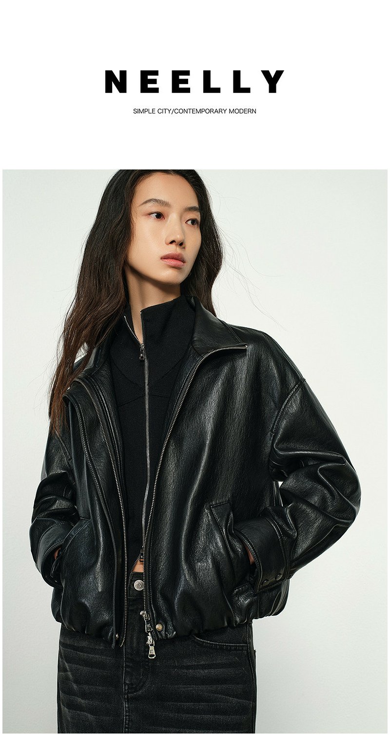 NEELLY纳俪商场同款春新款设计感帅气上衣女高级感复古廓形短外套N26014C04411