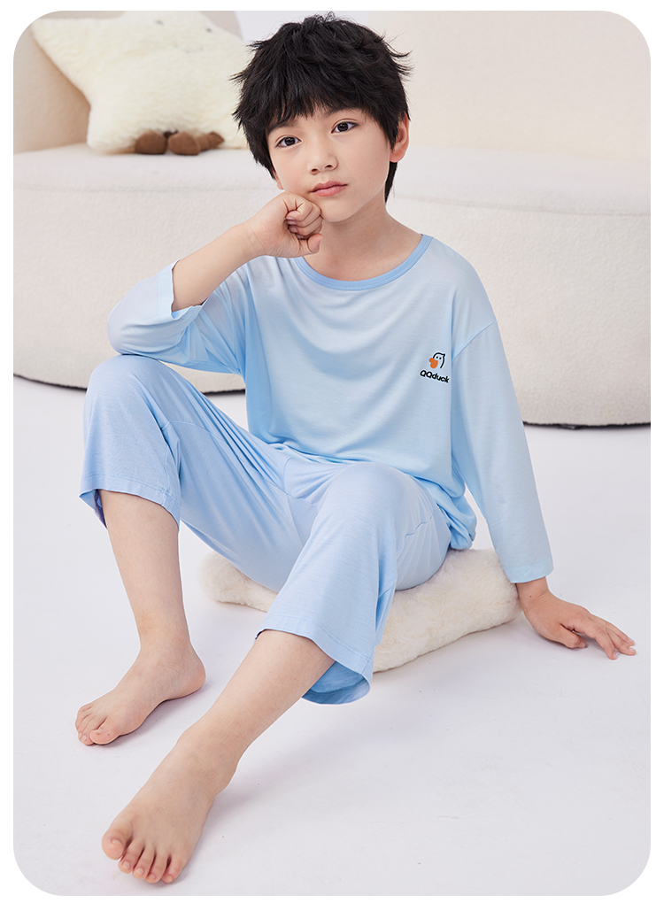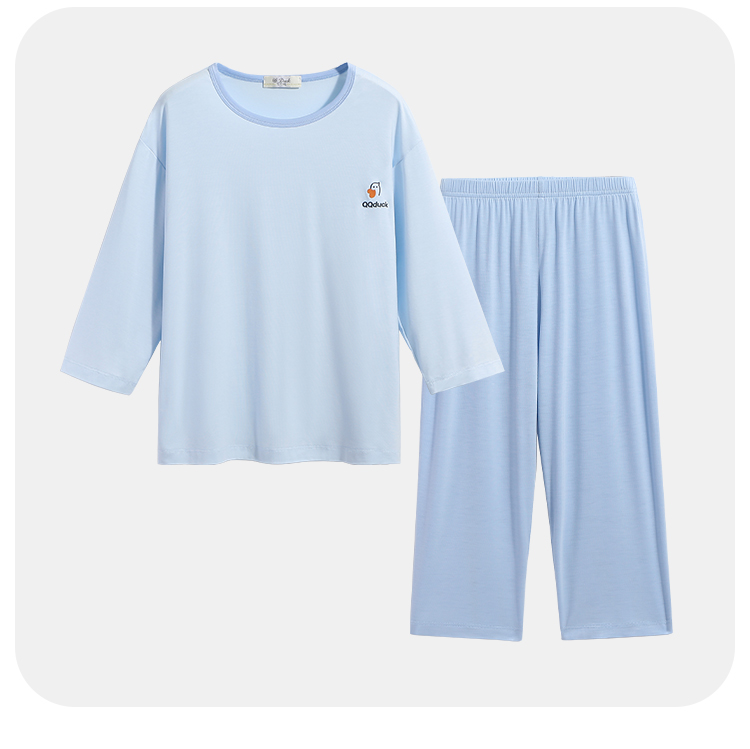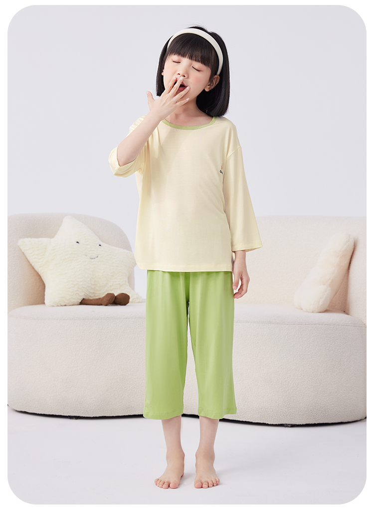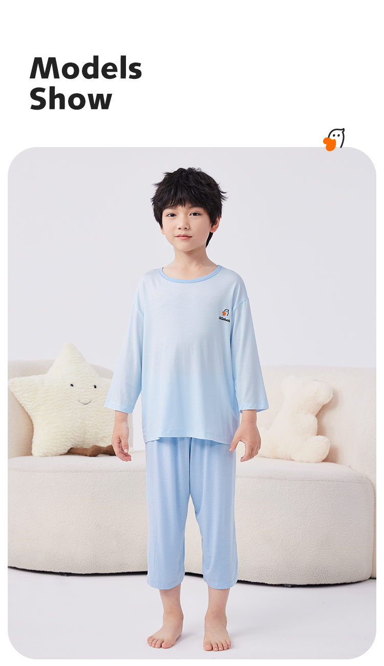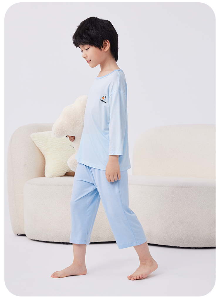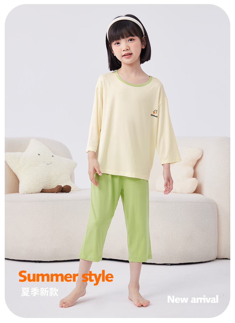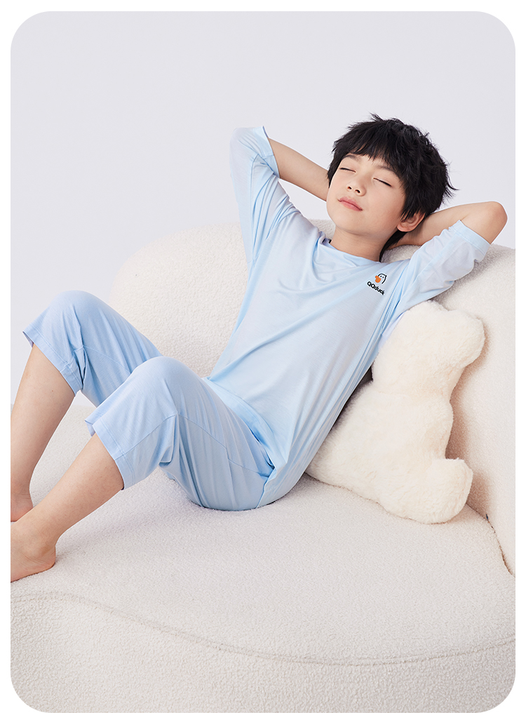【男女同款】【凉感天丝莫代尔】【130-160】【可可鸭】男女童七分袖长裤家居服套装莫代尔睡衣空调服
