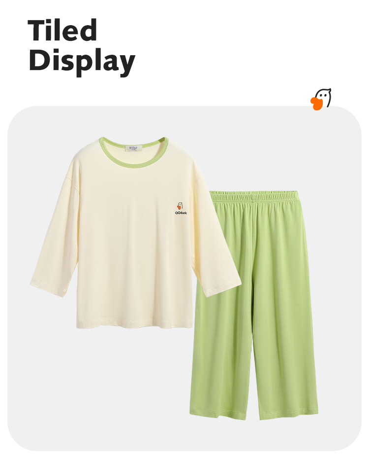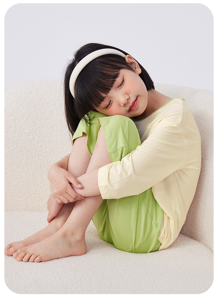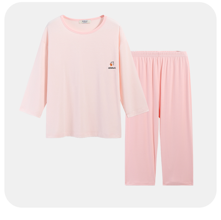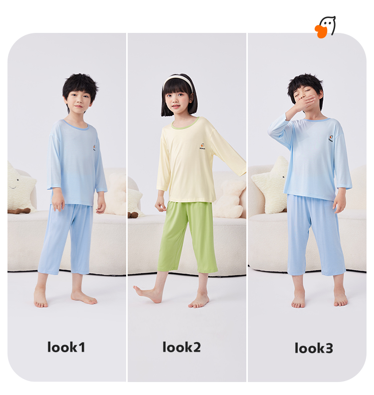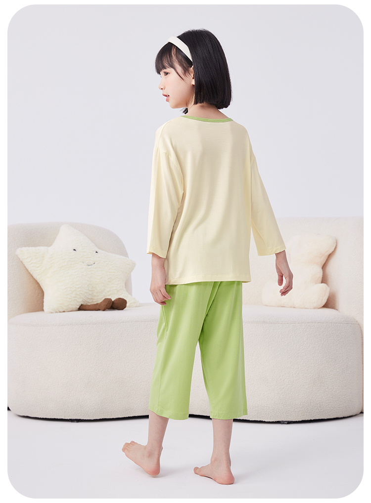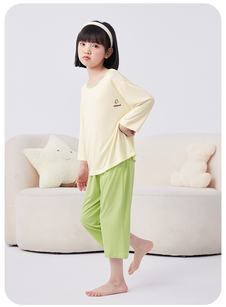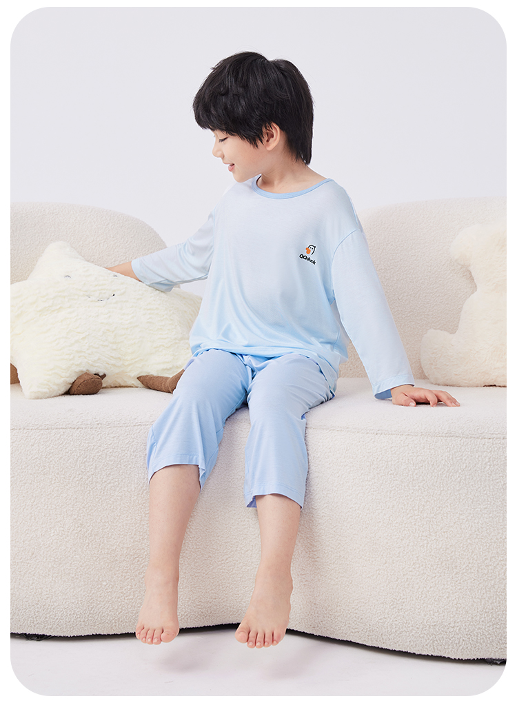 【男女同款】【凉感天丝莫代尔】【130-160】【可可鸭】男女童七分袖长裤家居服套装莫代尔睡衣空调服