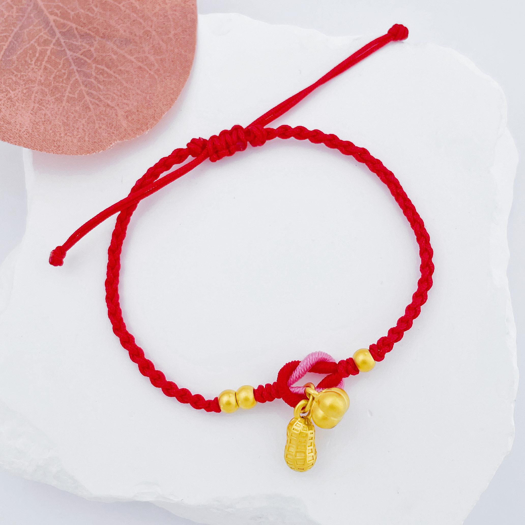 【定价黄金】足金 3D硬金“好柿花生”好事发生金珠红绳调节成品手串(AA3DSC00260)(预售产品下单后不退款不退货不换货不补差价)