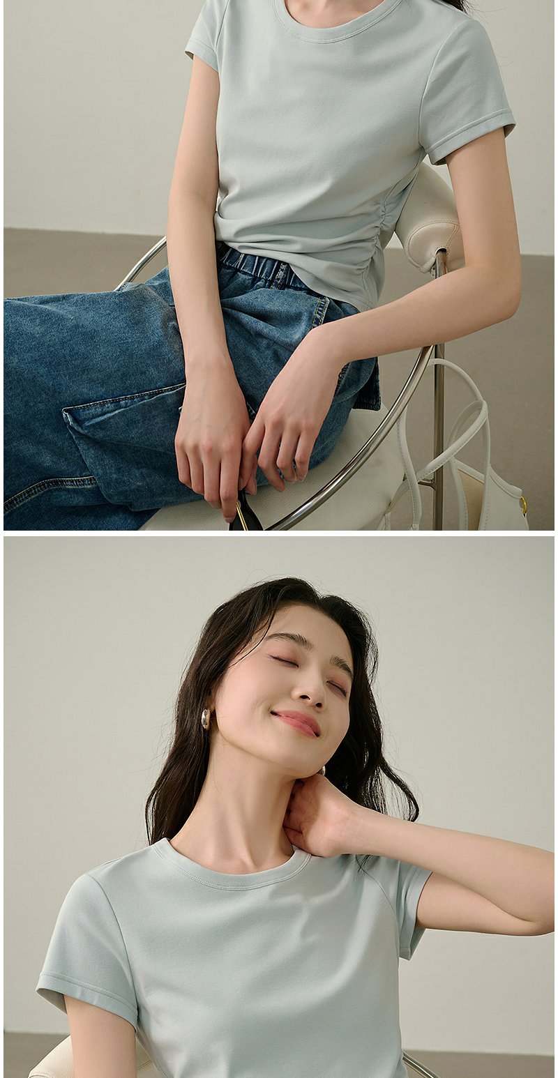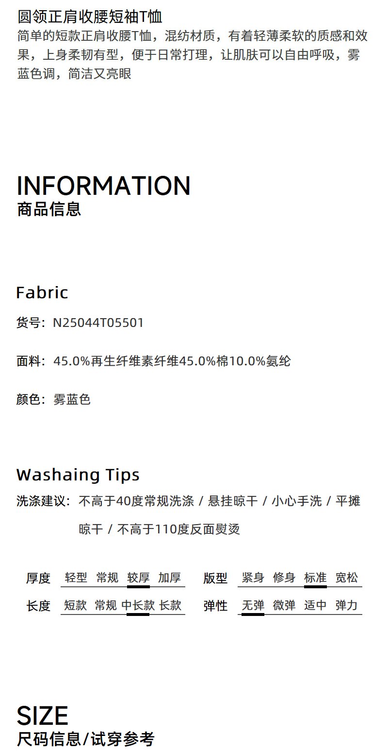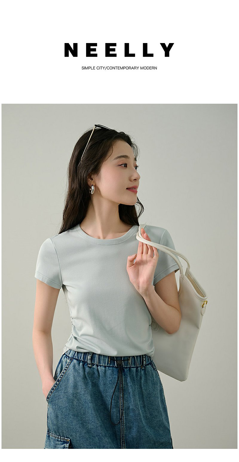 NEELLY纳俪商场同款夏季新款圆领正肩收腰短袖T恤女减龄修身上衣N25044T05501