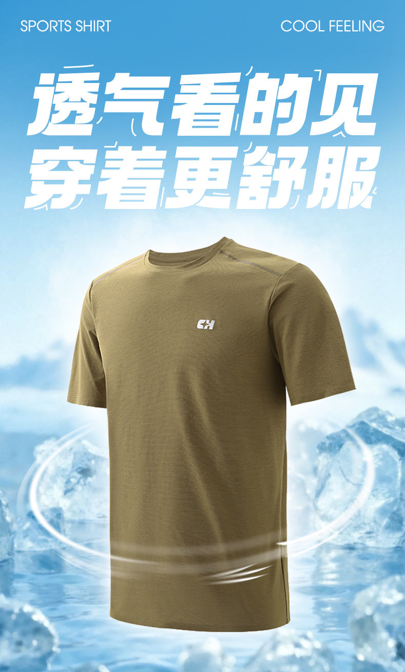 圆领T恤短袖T恤男 凉感冰纱吸湿速干透气 户外运动跑步登山徒步 CHF152021
