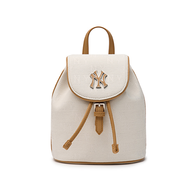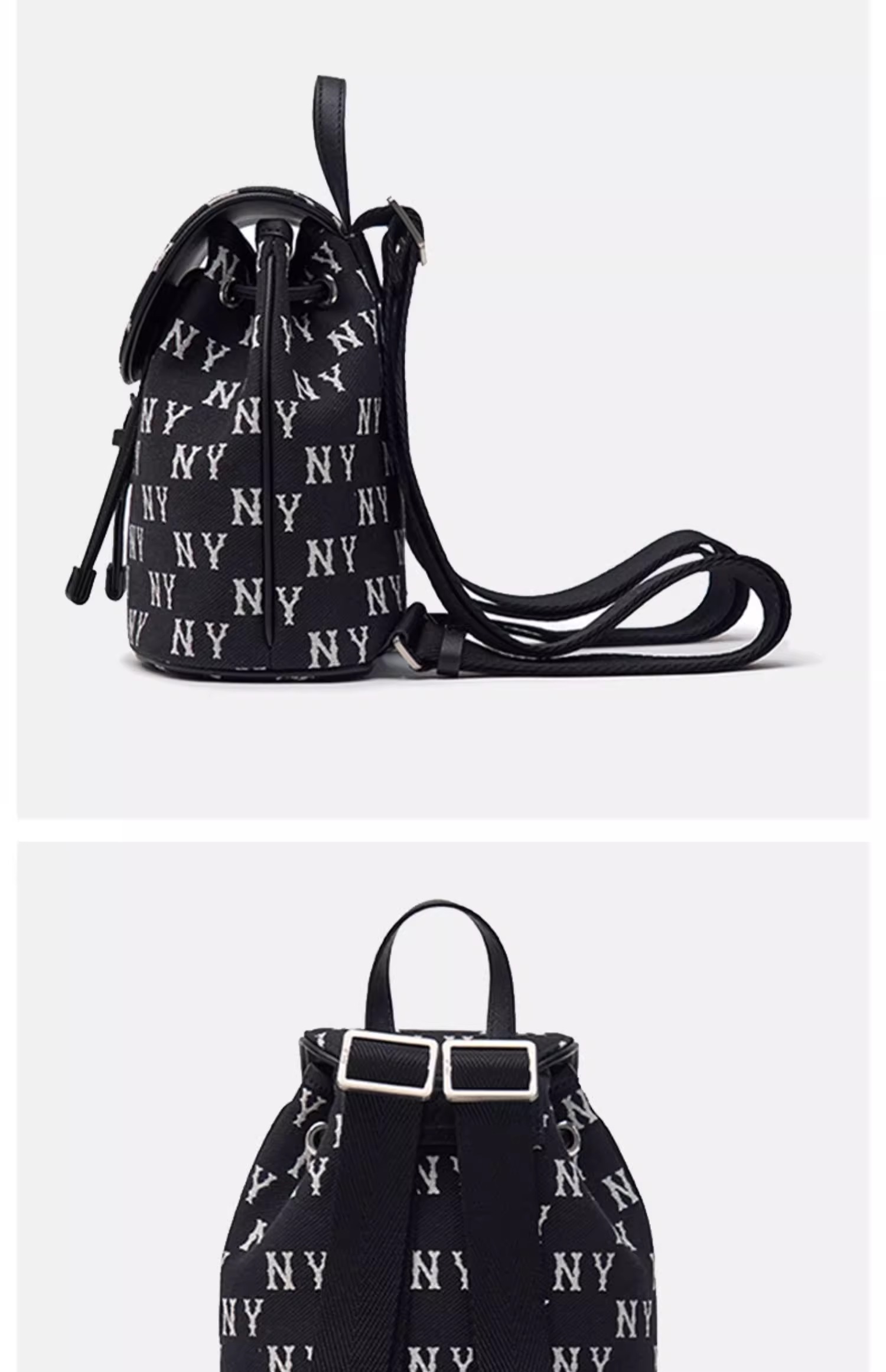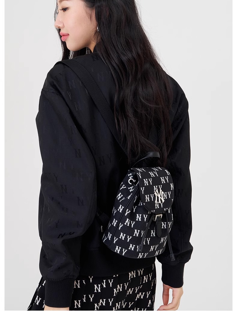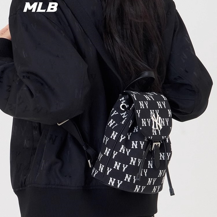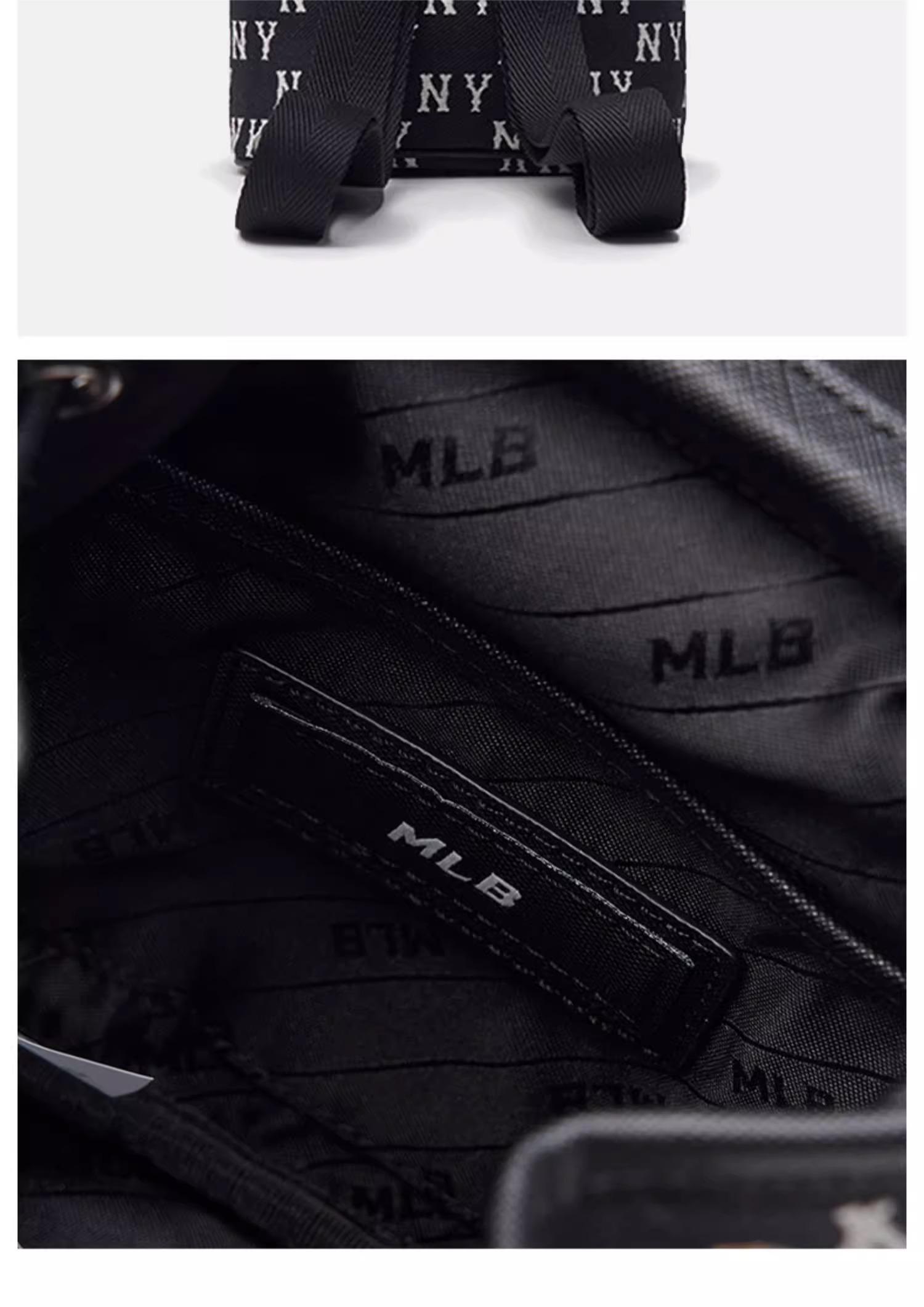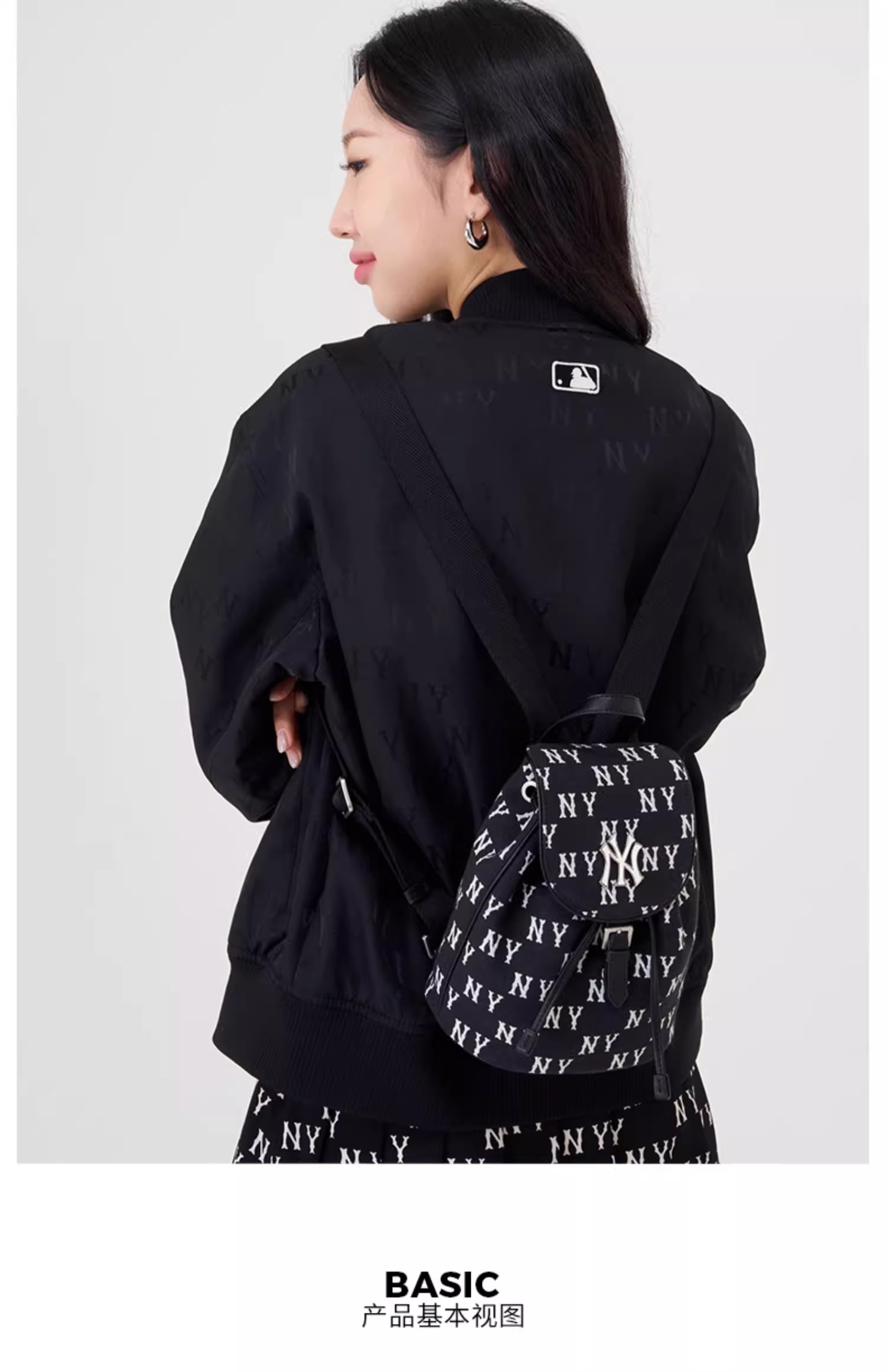 【品牌授权】扫码验证 韩国MLB 复古老花小背包-黑色 深奶油色 双肩包女新款休闲时尚运动背包单肩学生书包 3ABKS014N