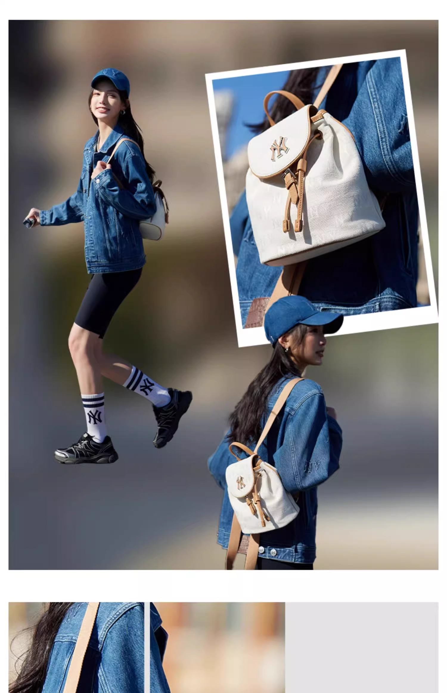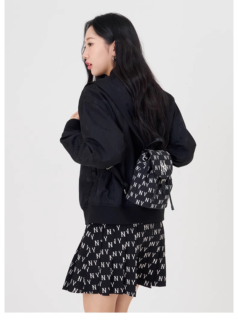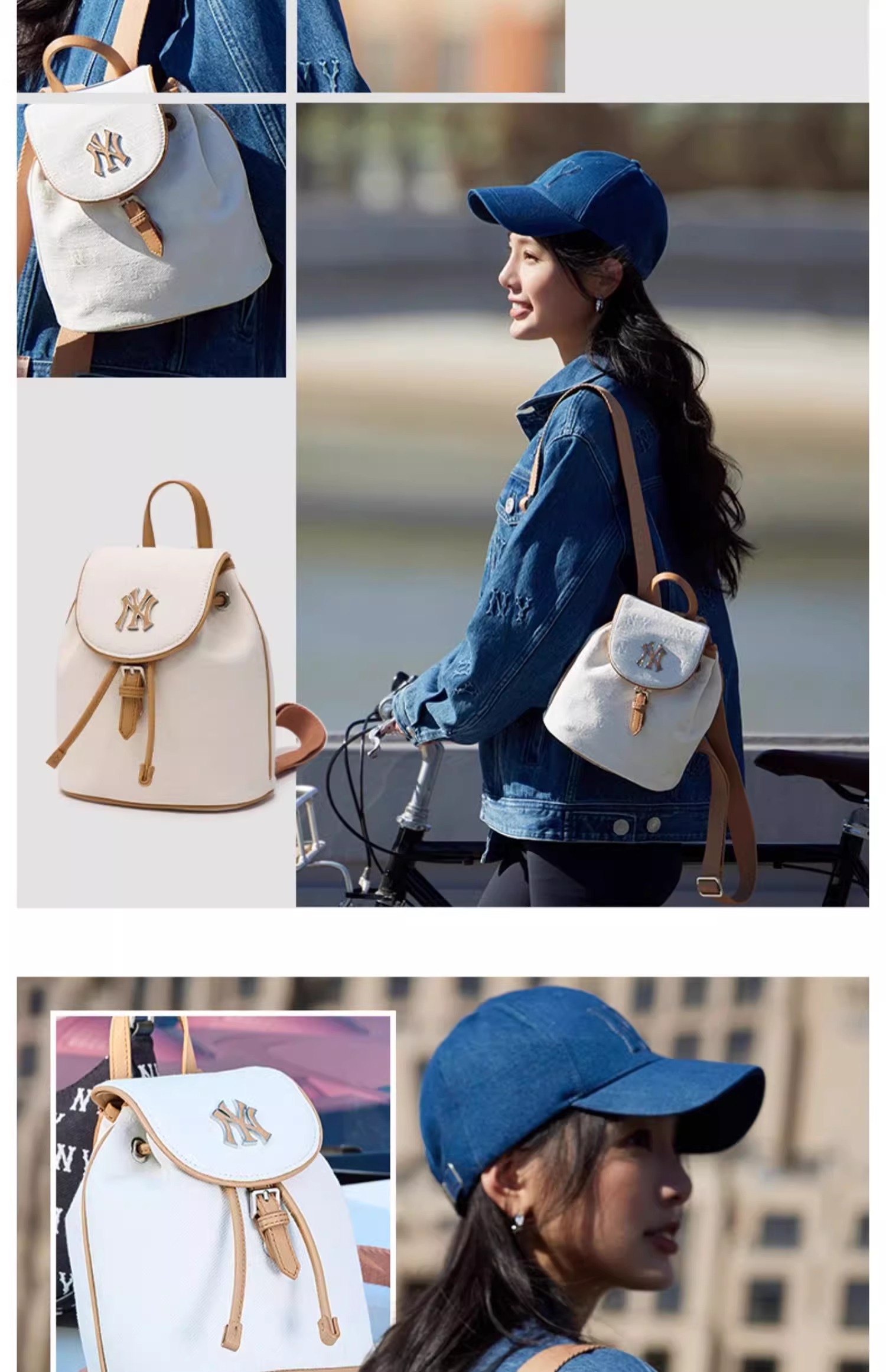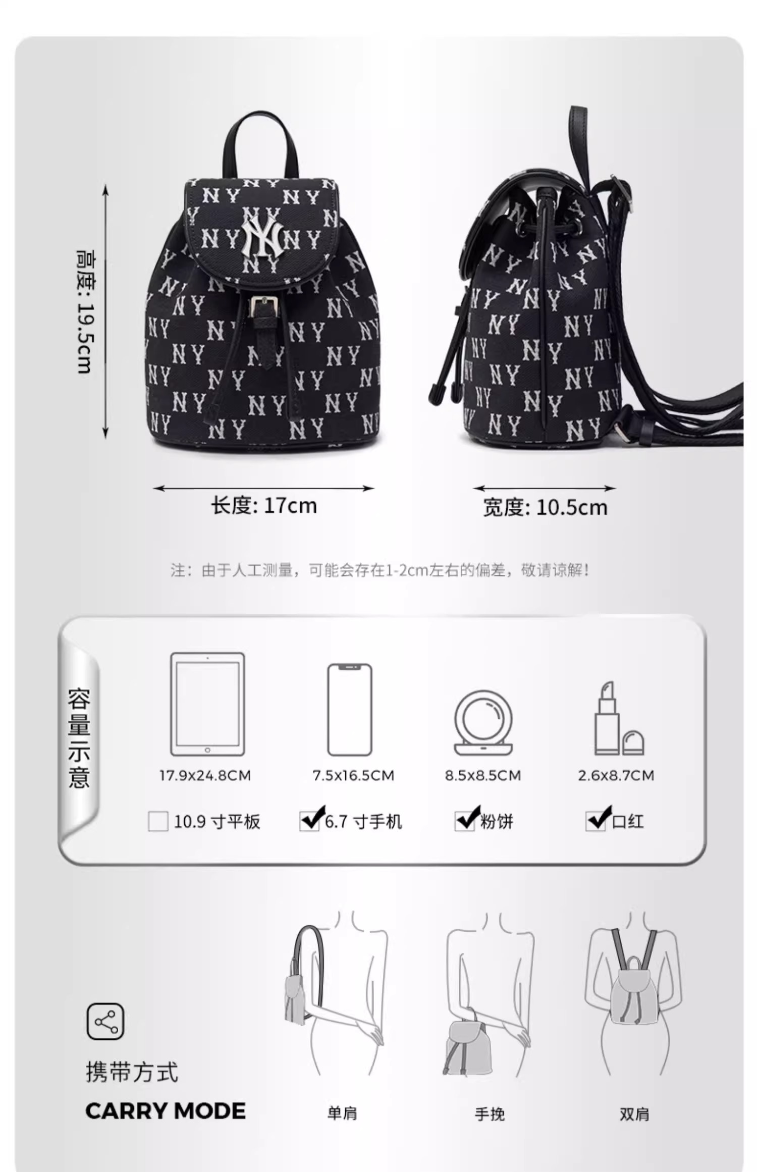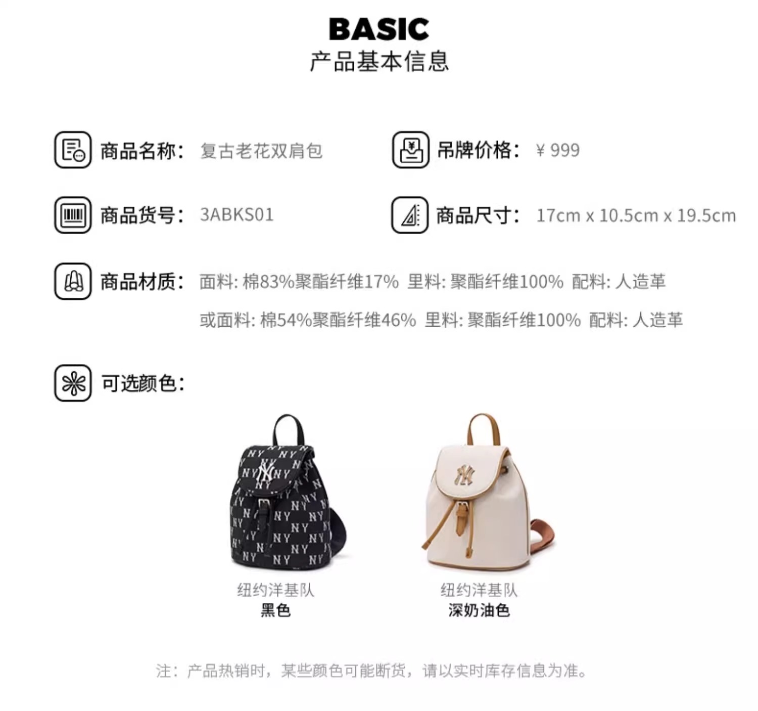 【品牌授权】扫码验证 韩国MLB 复古老花小背包-黑色 深奶油色 双肩包女新款休闲时尚运动背包单肩学生书包 3ABKS014N