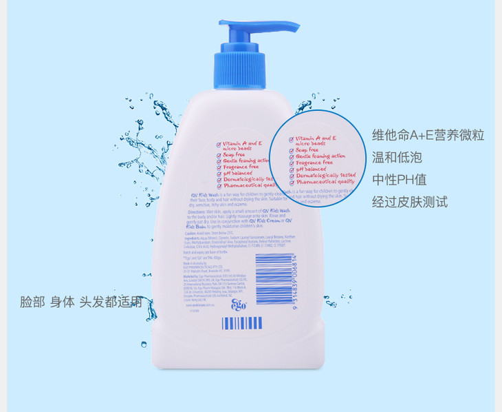 【保税仓】澳大利亚意高(Ego)QV儿童营养沐浴露 350g