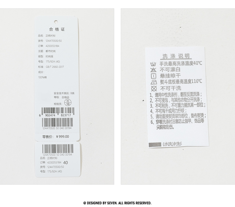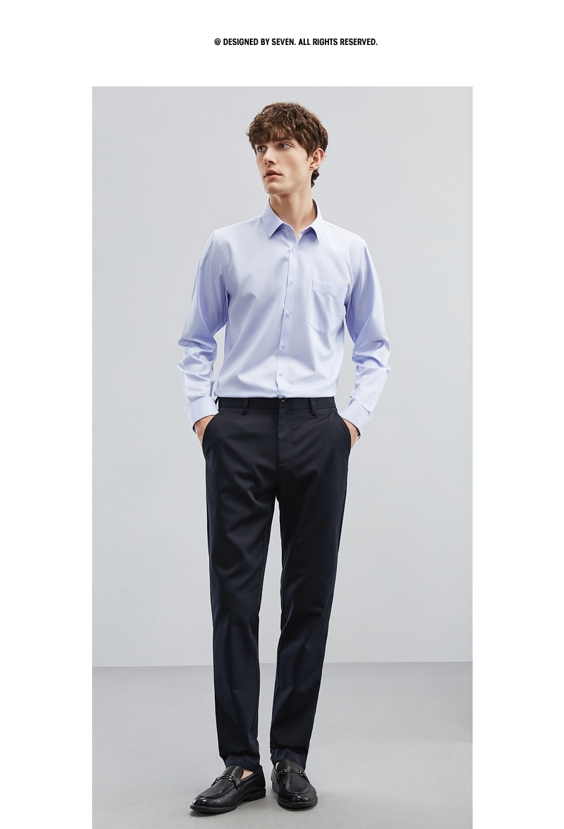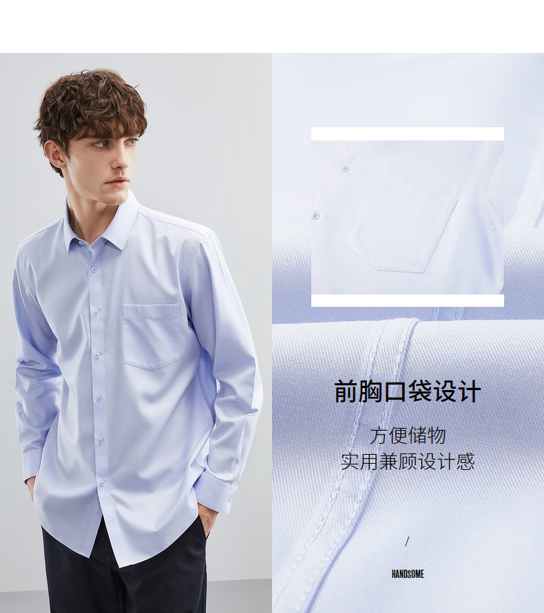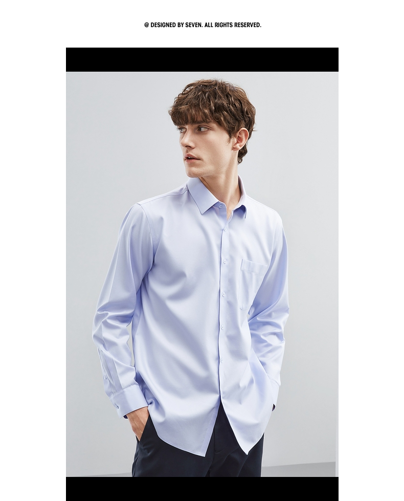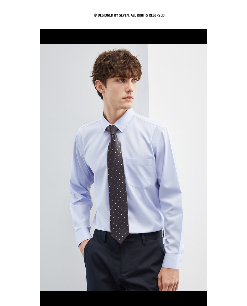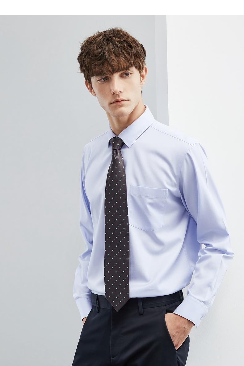 【特价】【DP免烫】柒牌男士长袖衬衫春秋款商务正装翻领口袋纯棉打底衬衣 124A70500