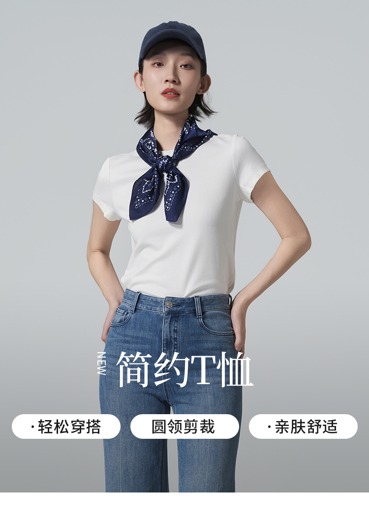 【商场同款】CNE6394 “ 基础T恤 ” 海洋蓝/云舞白 两色基础好穿好搭配 亲肤舒适