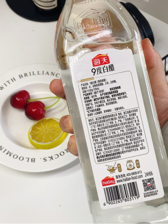 海海天白醋酸度适中,清香爽口,不含防腐剂。 你可以在午餐和晚餐的凉拌菜或者炒菜中适量添加一些海天白醋。 白醋的酸味可以刺激味蕾,让你更有食欲。 同时,白醋中的氨基酸和有机酸还可以与食材中的营养成分相互作用,产生更丰富的美味。