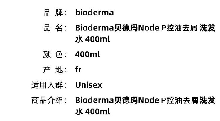 【预售 急单慎拍】Bioderma贝德玛Node P控油去屑洗发水400ml