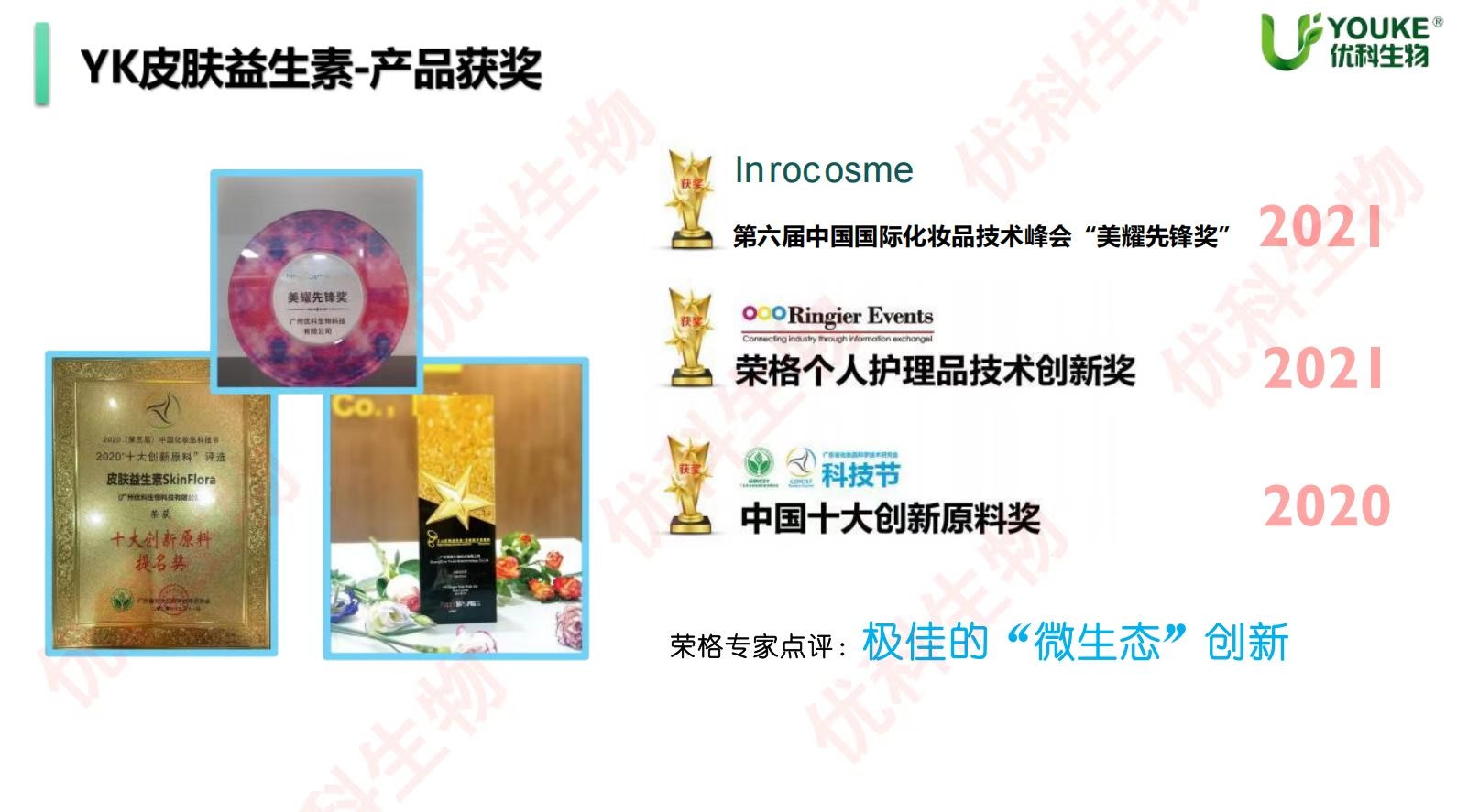 🔥荣获技术奖项:(中国国际化妆品技术峰会"美耀先锋奖")(个人护理品技术创新奖)(中国十大创新原料奖)
