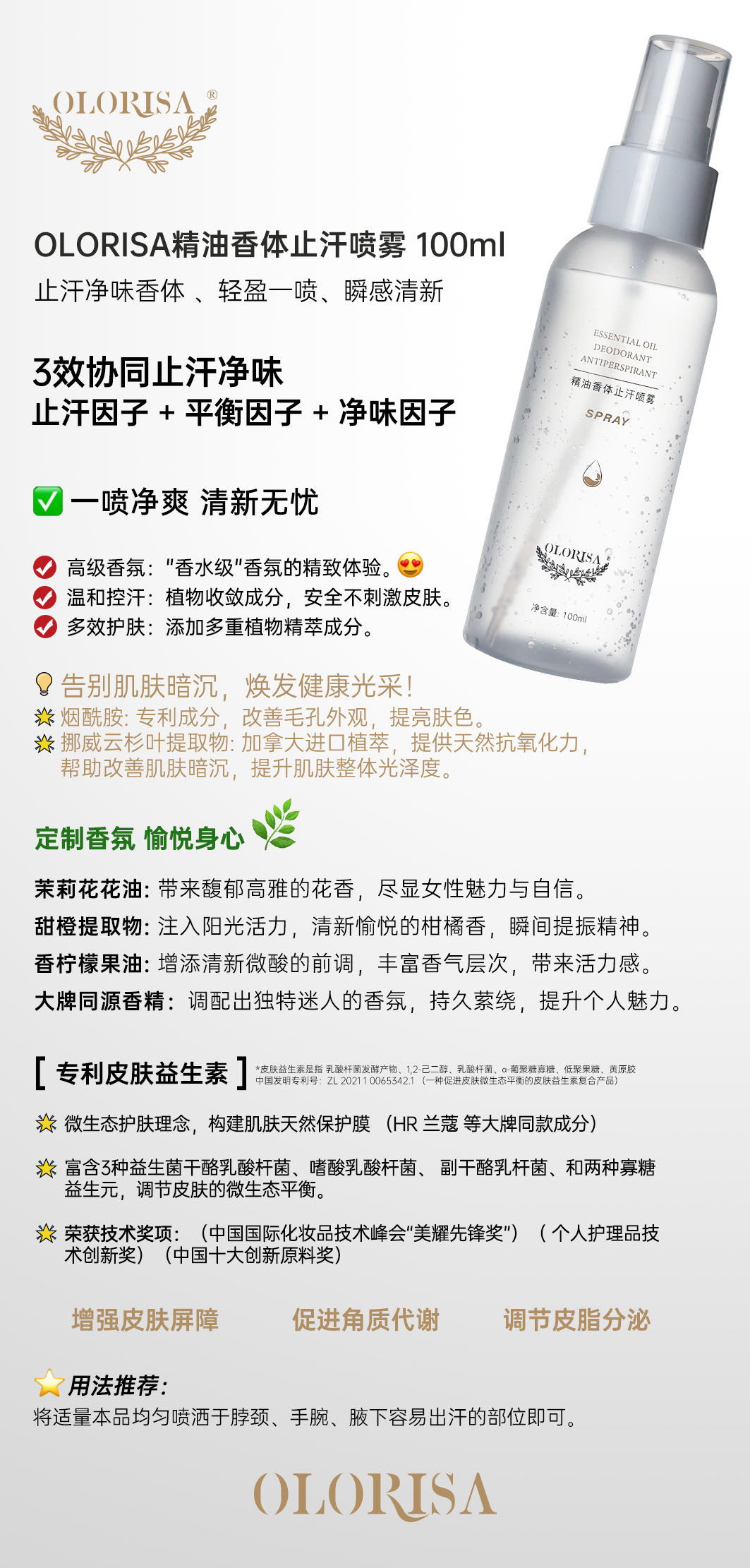【澳洛莉OLORISA精油香体止汗喷雾】