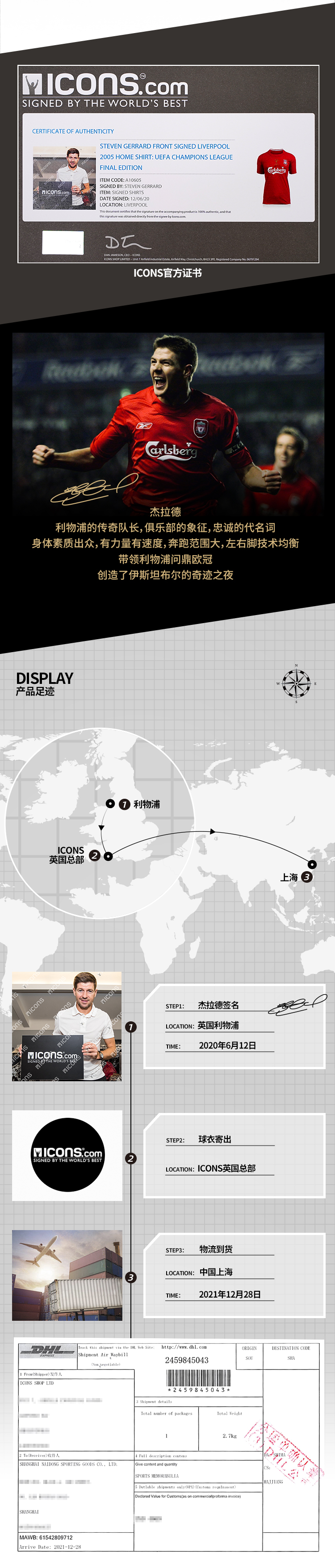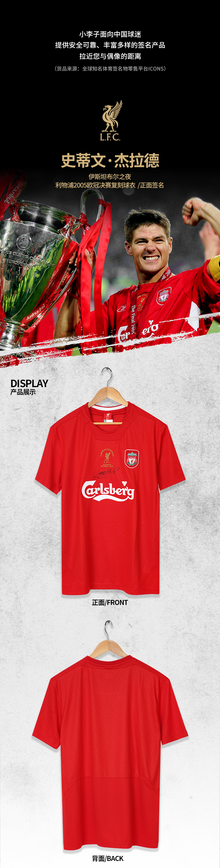 杰拉德签名2005年欧冠利物浦复刻球衣(含证书)