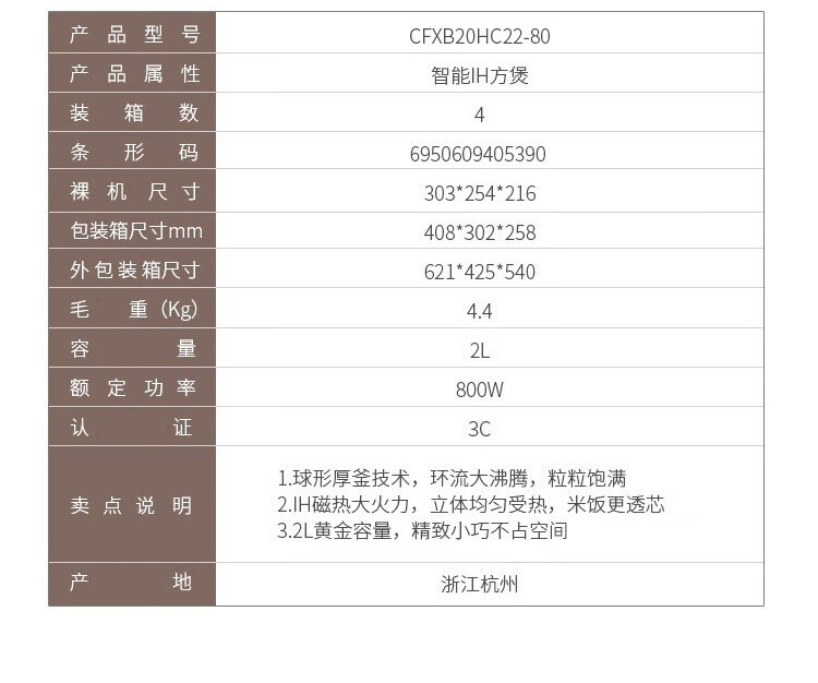 苏泊尔(SUPOR)电饭煲 2人-3人家用 迷你2L球釜IH电磁加热 智能电饭锅小型米饭锅煮饭锅CFXB20HC22-80