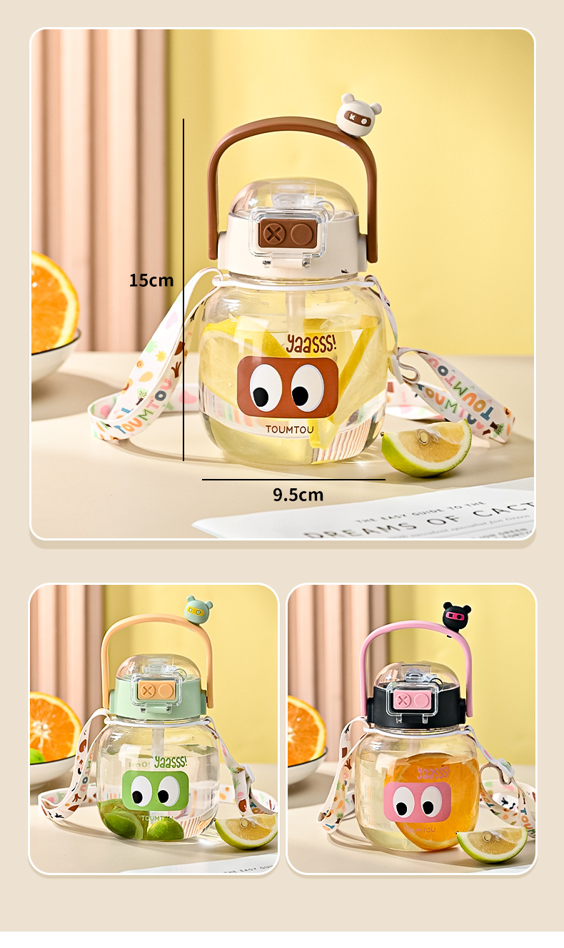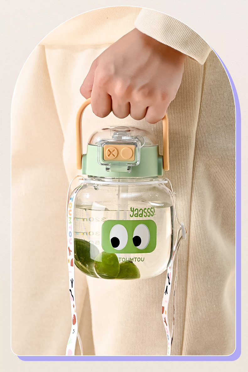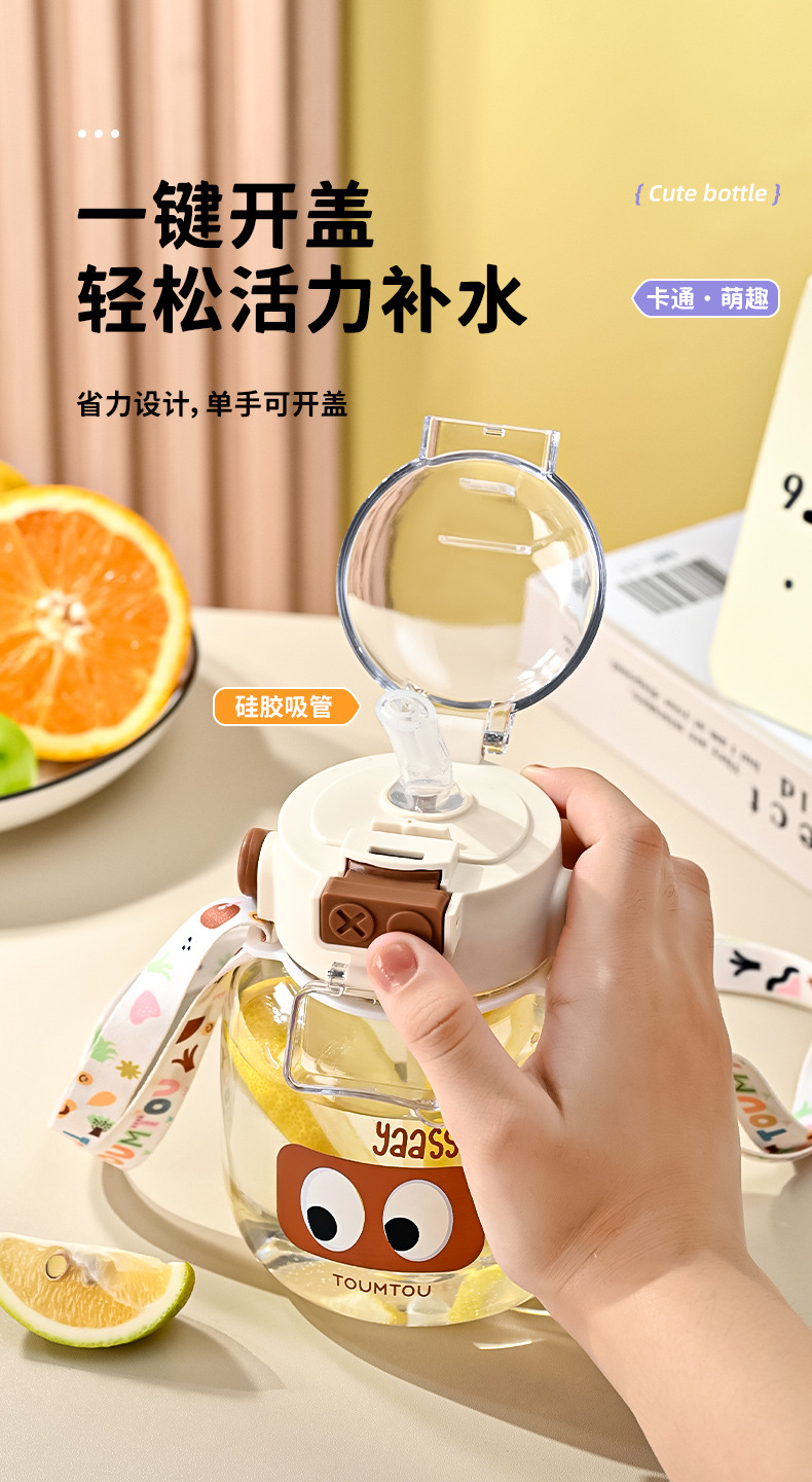 【一键开盖!轻松活力补水】萌趣饮水杯学生高颜值卡通双男女通用塑料水壶可爱便携大容量儿童吸管杯。ry