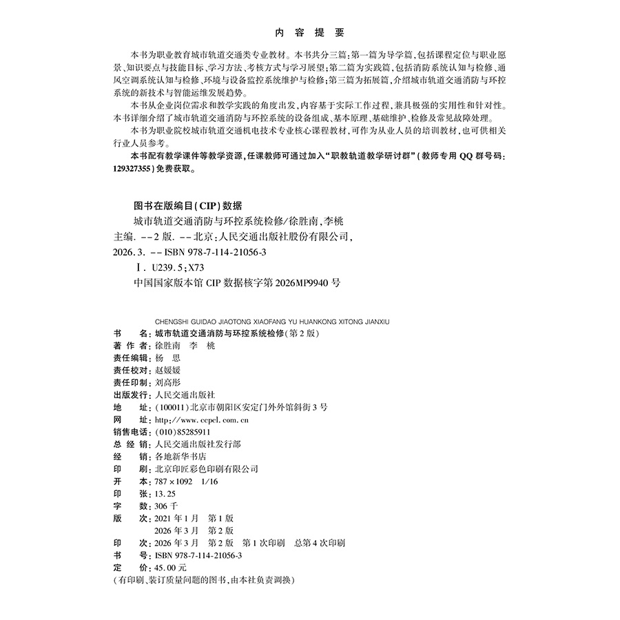 书名:城市轨道交通消防与环控系统检修(第2版)