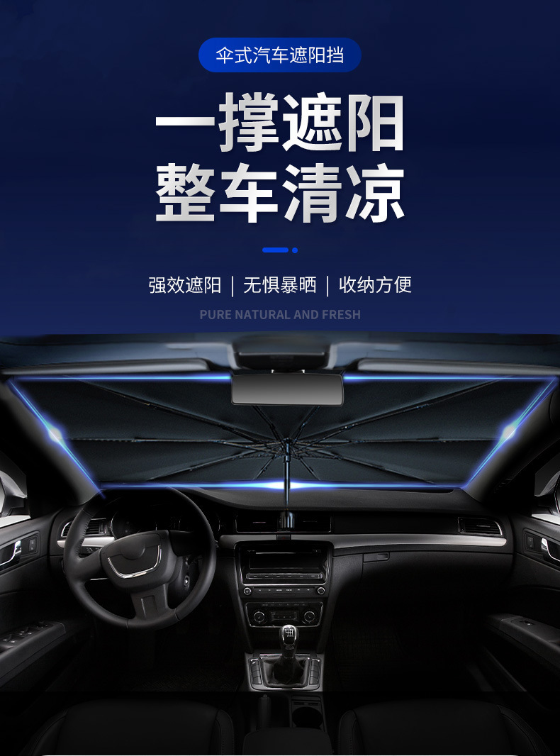 【防晒隔热免安装,零透光汽车遮阳伞】开口钛银防晒涂层便携耐用便捷开合轻松收纳,告别繁琐!