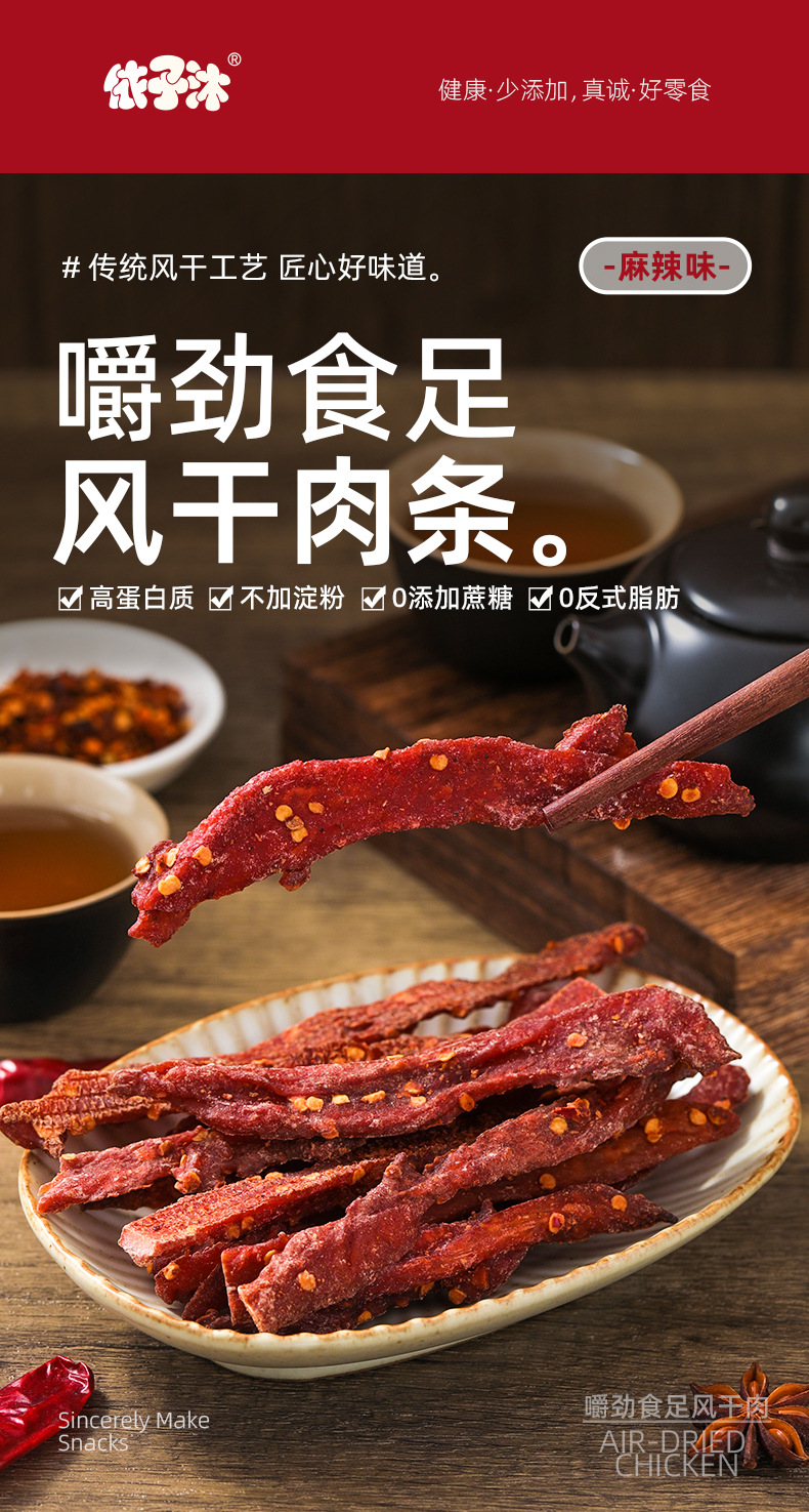 【嚼劲十足!手撕麻辣味风干肉条】传统风干工艺,匠心好味道,「非」油炸很耐撕,鸡肉条五香麻辣特辣解馋L