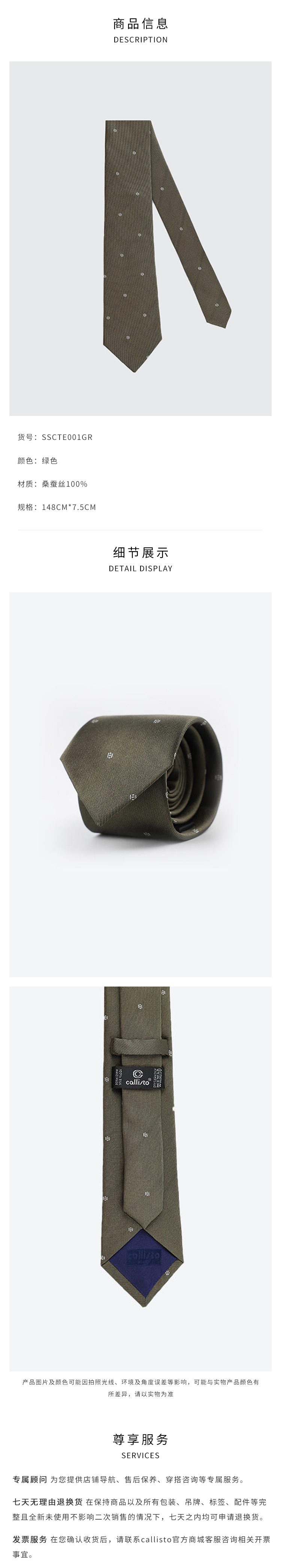 callisto绿色全桑蚕丝领带 SSCTE001C