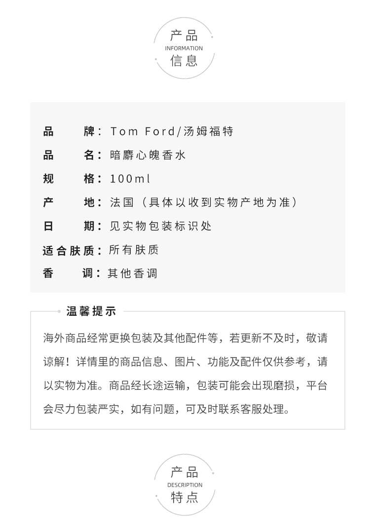 Tom Ford/汤姆福特TF香水白麝香 暗麝心魄中性香水男女香水50ml/100ml【CDF】