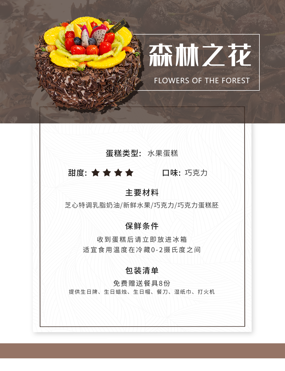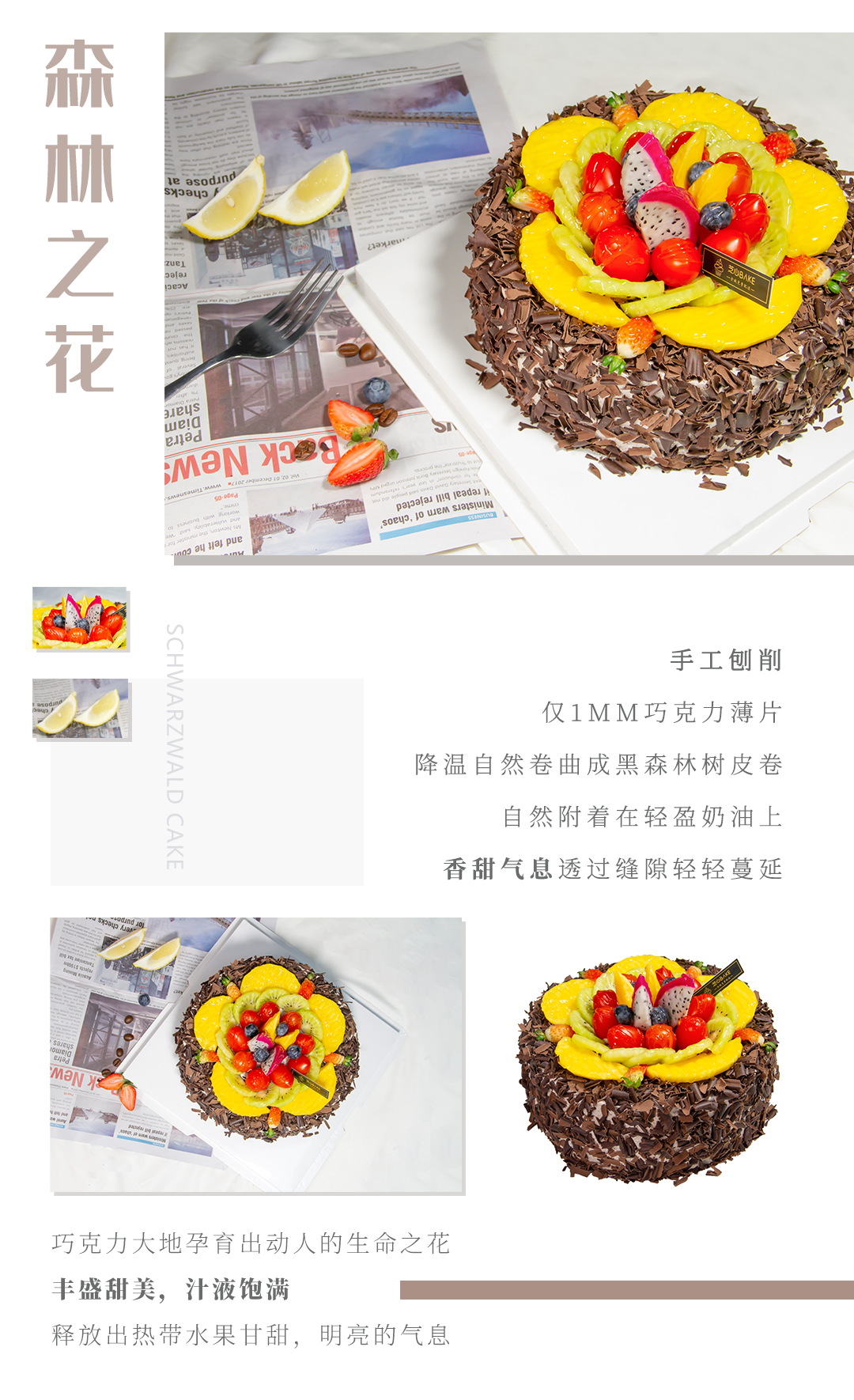 【森林之花】降温自然卷曲成黑森林树皮卷 自然附着在轻盈奶油上