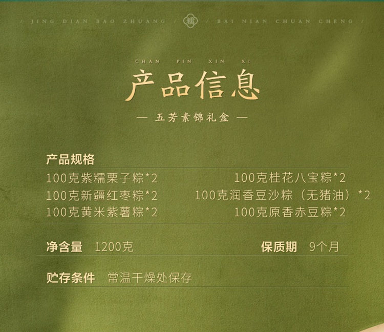五芳斋五芳素锦粽子礼盒1200g(包邮直发)【MJ】