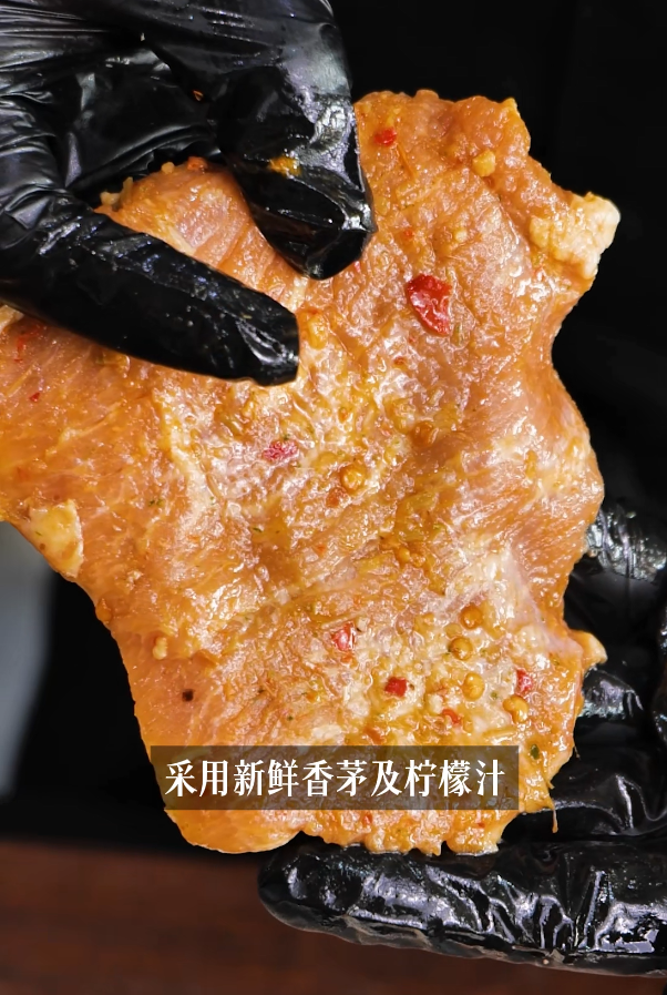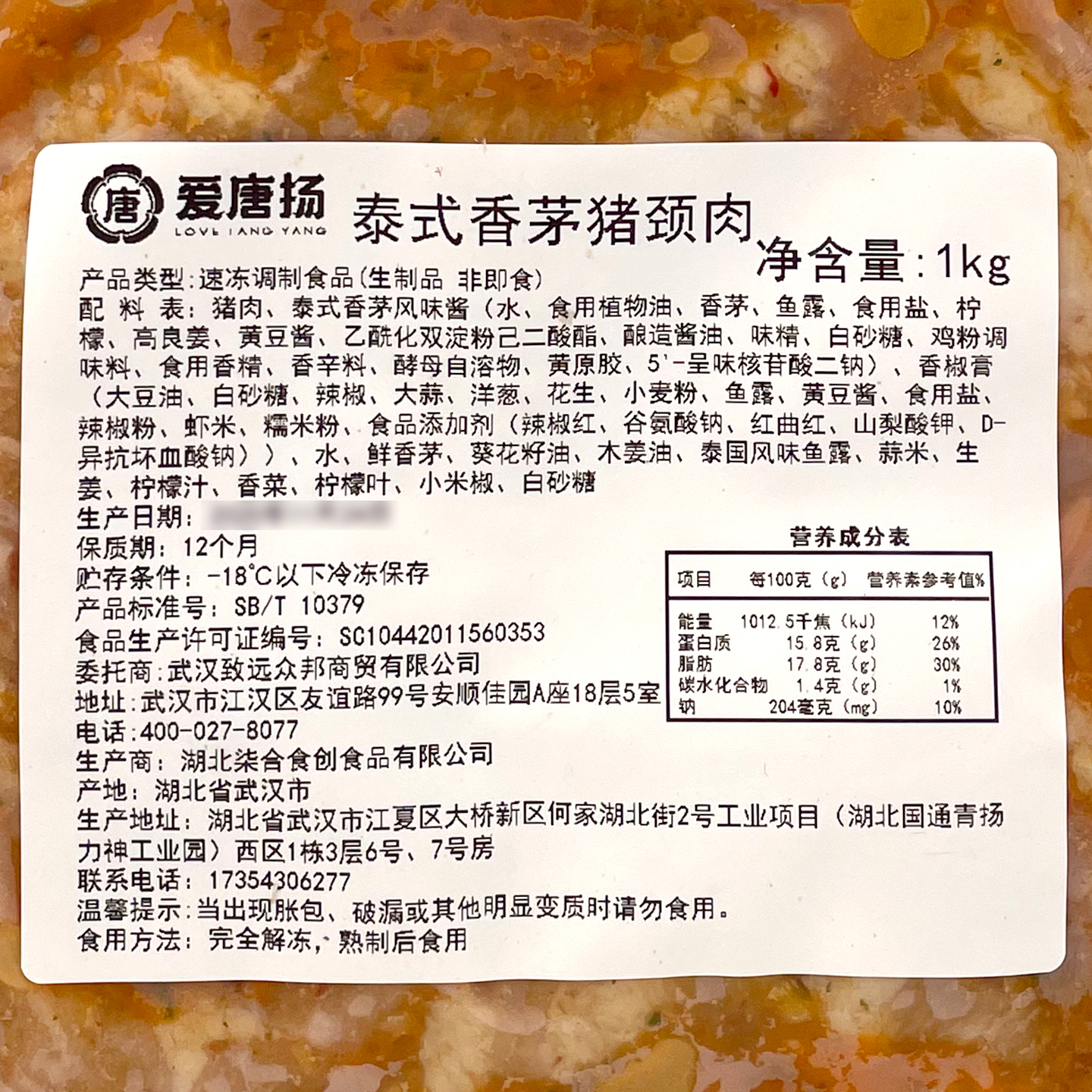 爱唐扬泰式香茅猪颈肉1kg香茅猪颈扒商用冷冻半成品东南亚餐厅原料