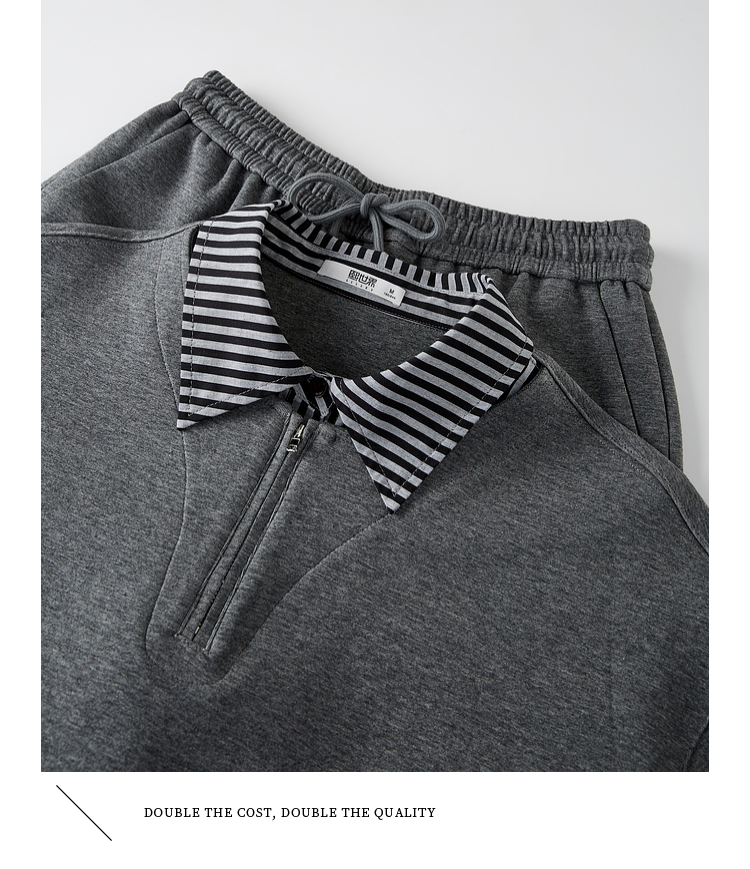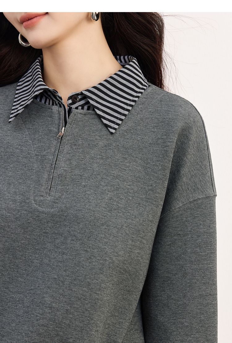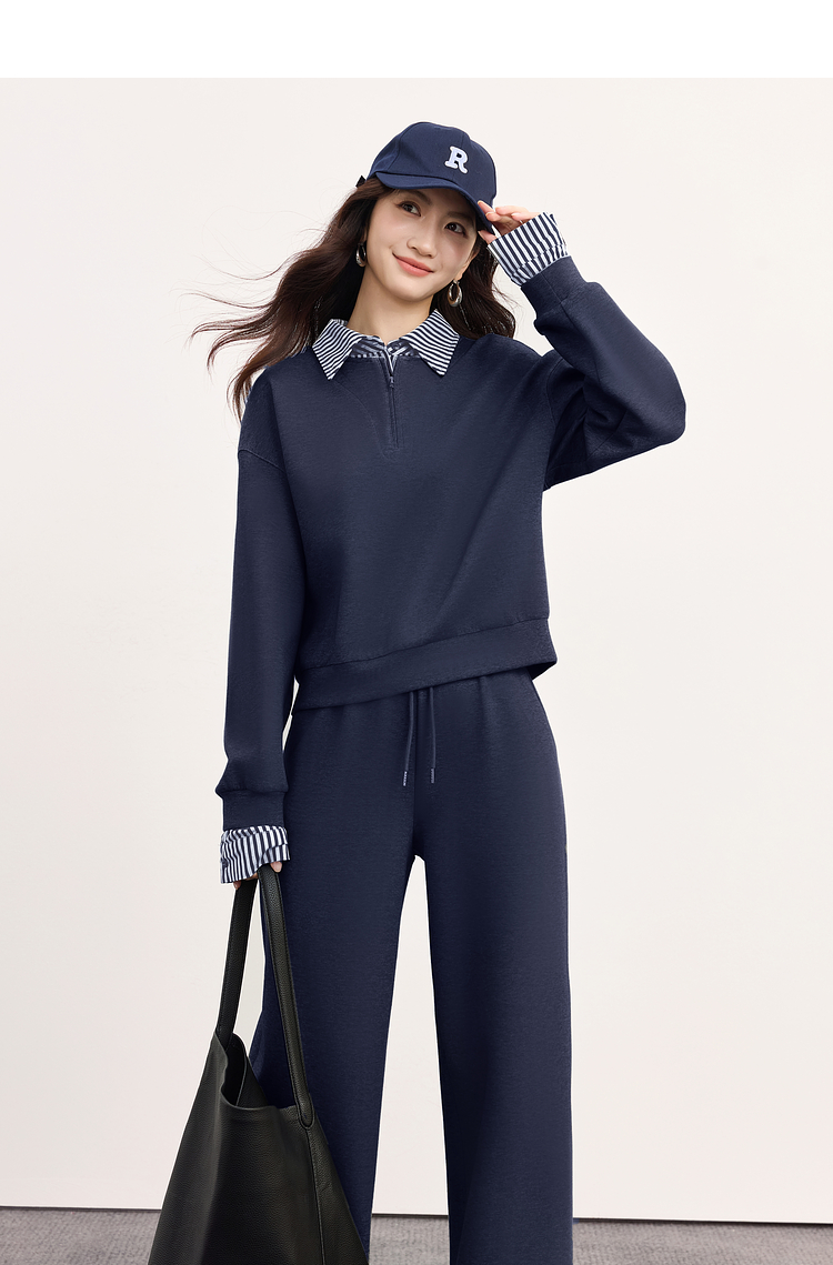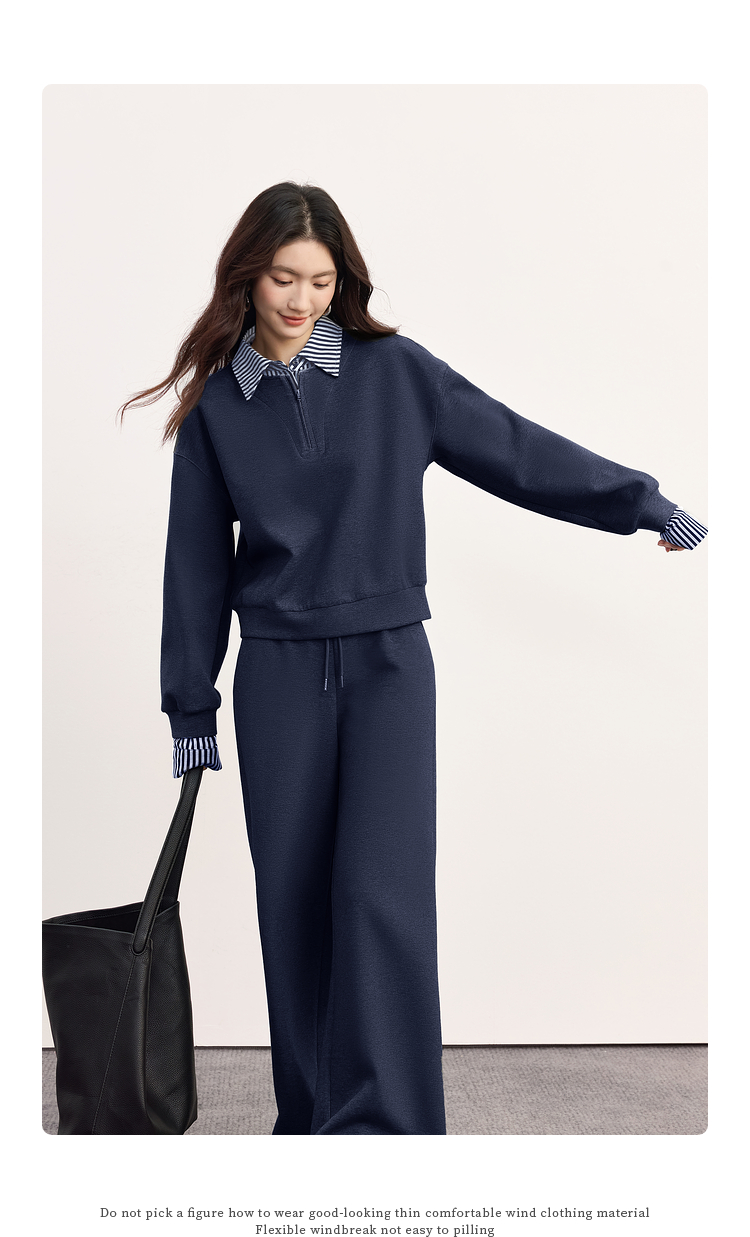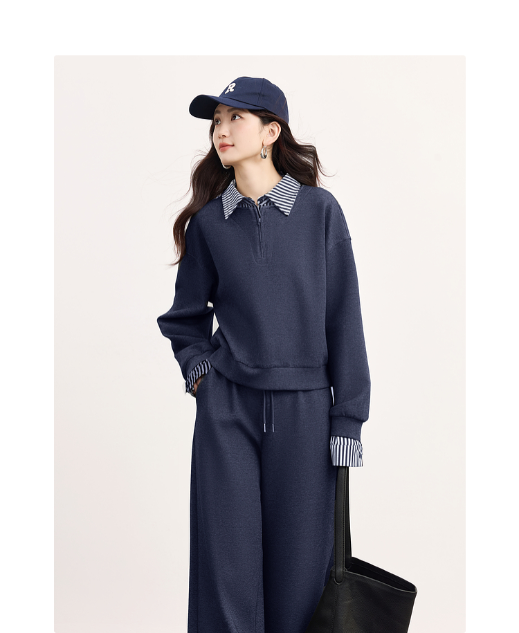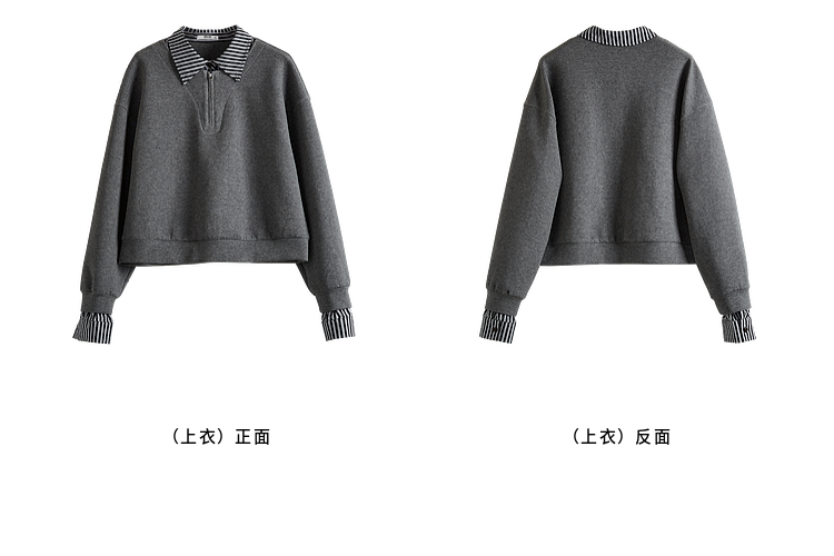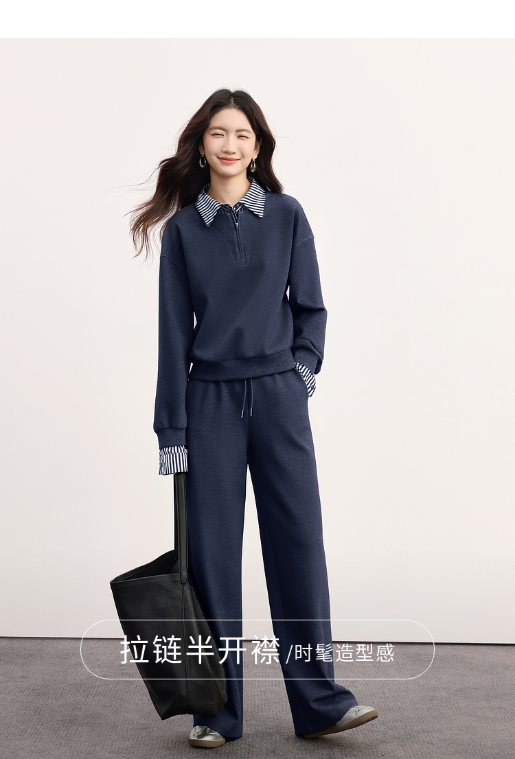 【09/17新品】熙世界灰色运动休闲卫衣套装女秋季新款条纹翻领上衣阔腿裤两件套
