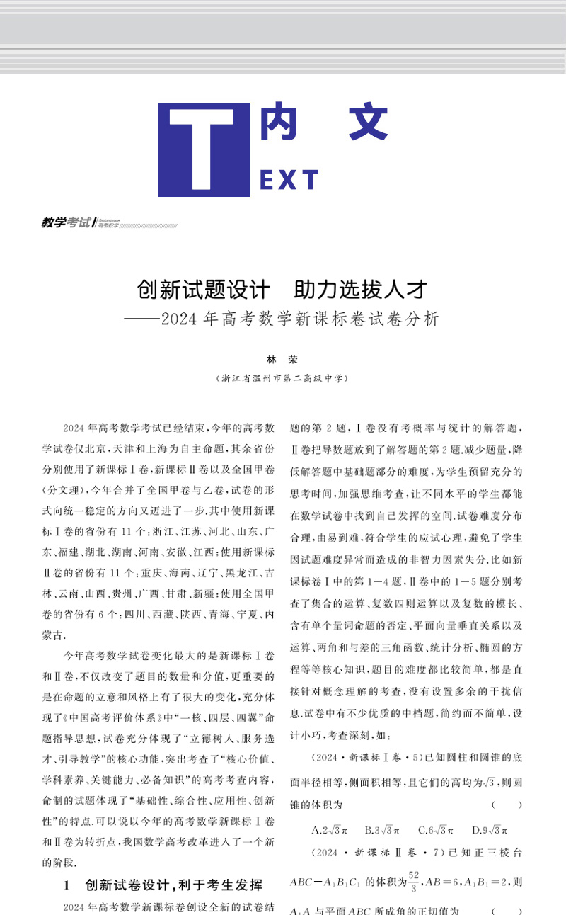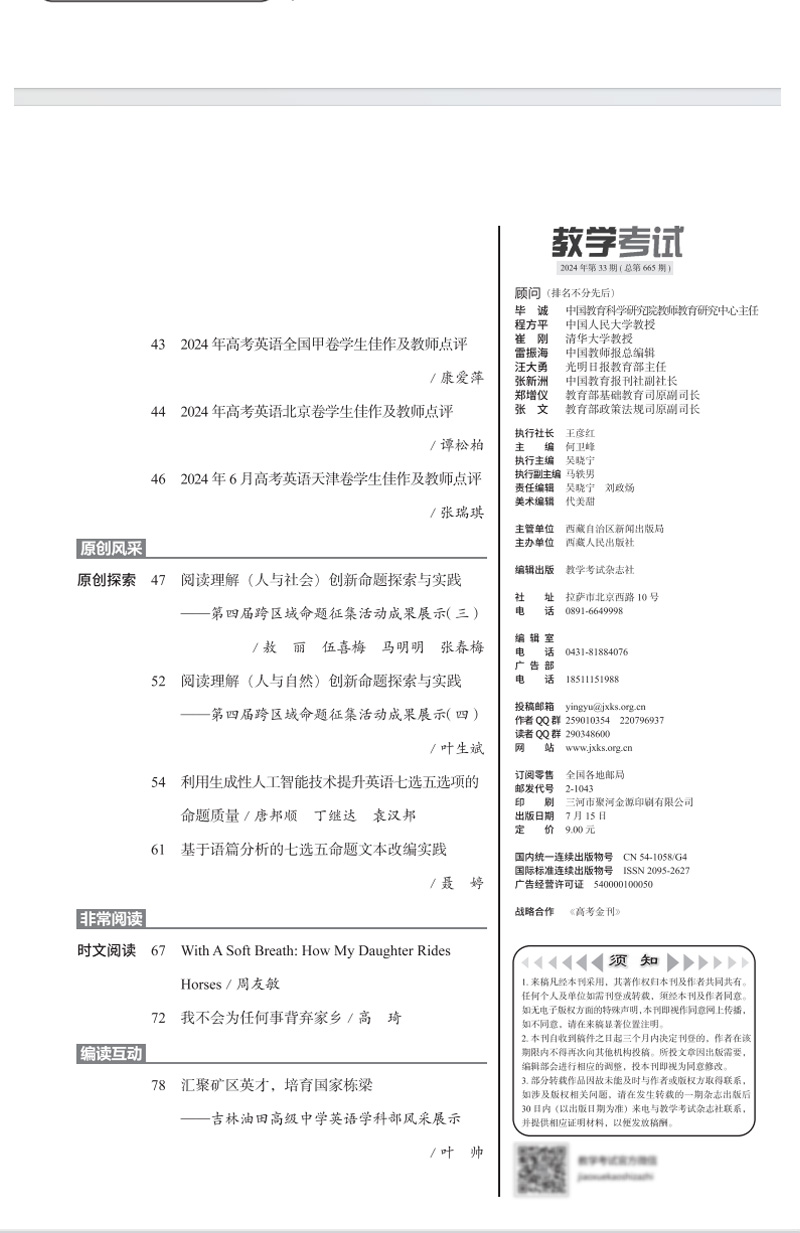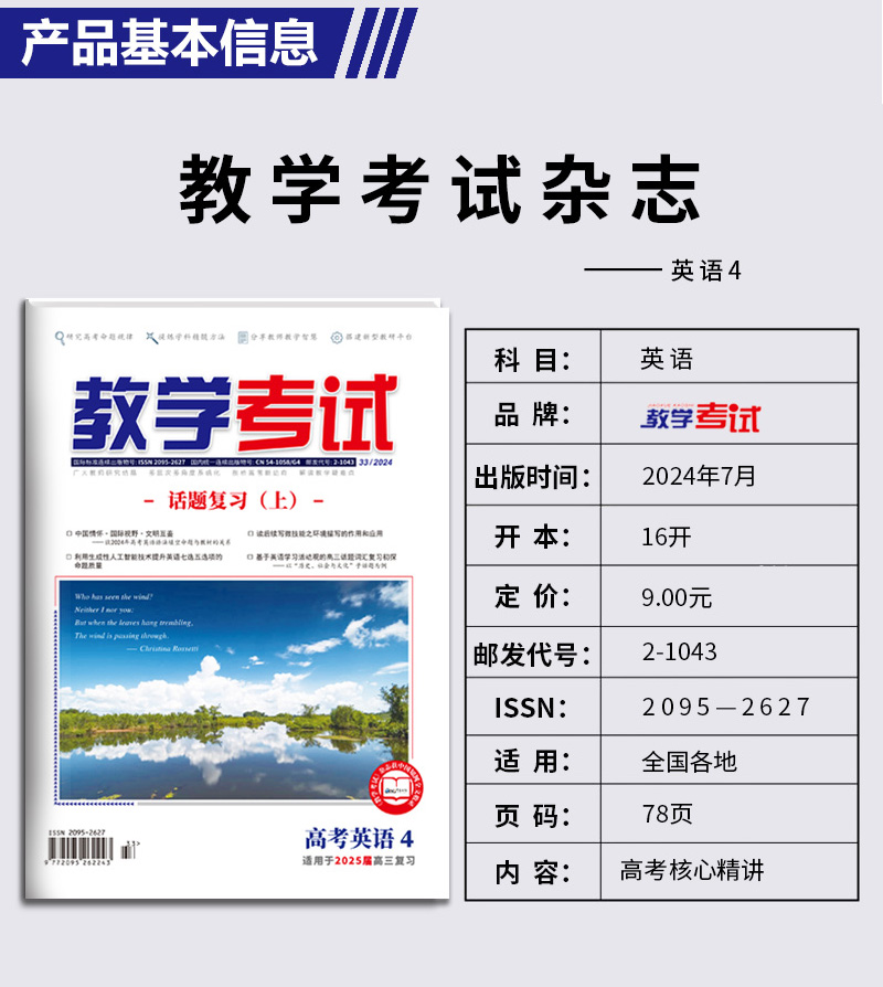 2024 教学考试杂志第4期 语文 数学 英语 物理 化学 生物 政治 地理 历史