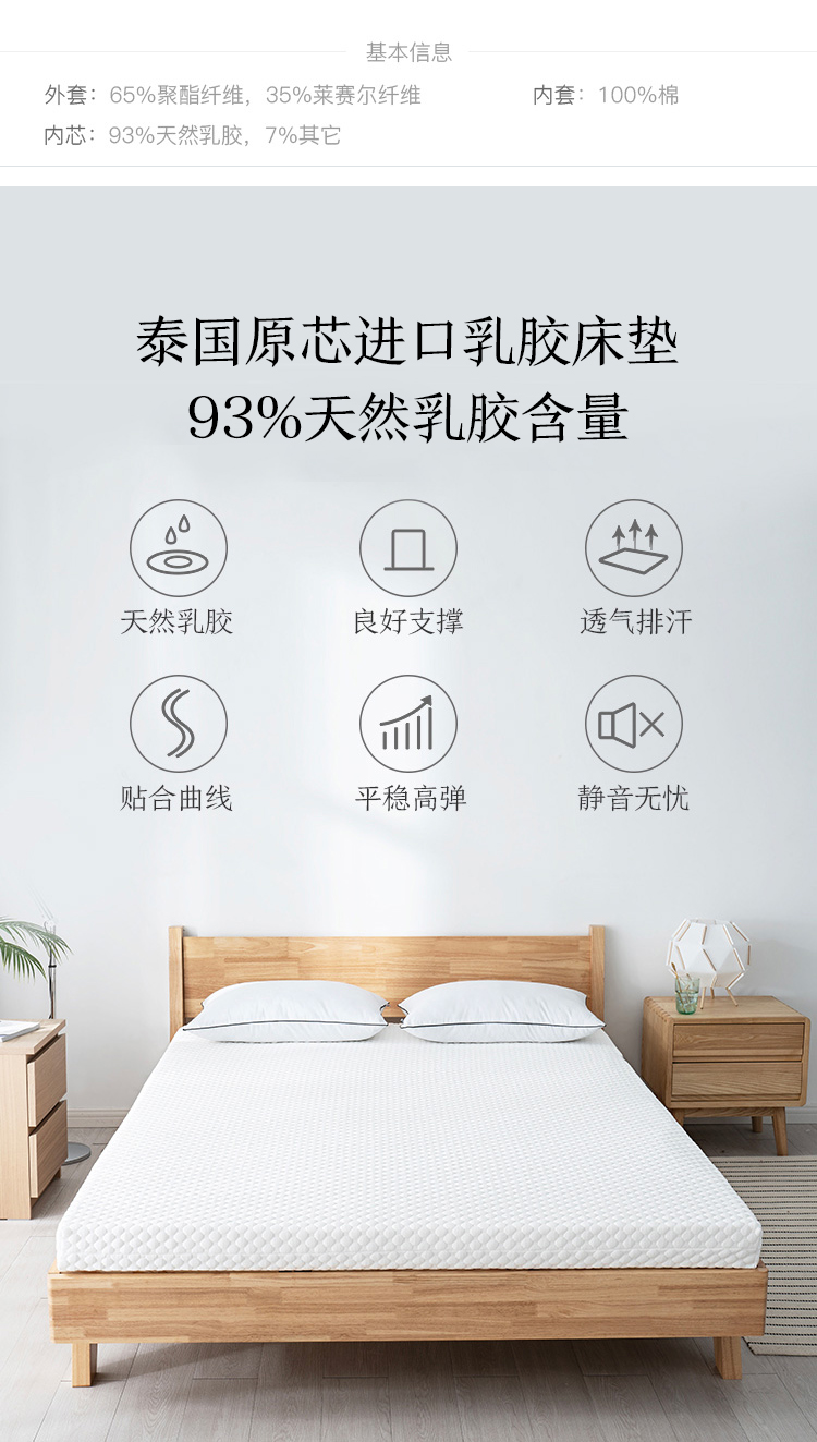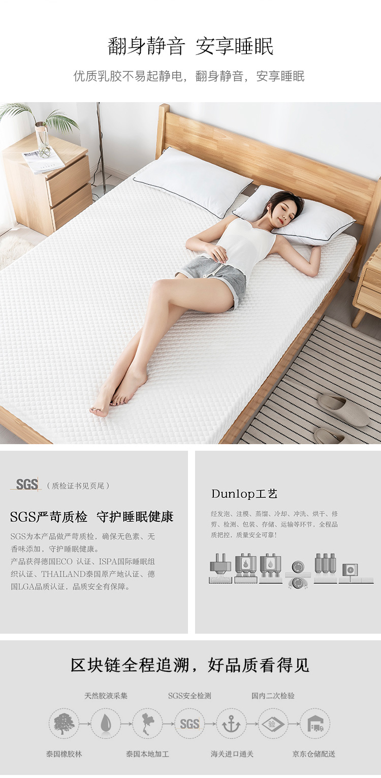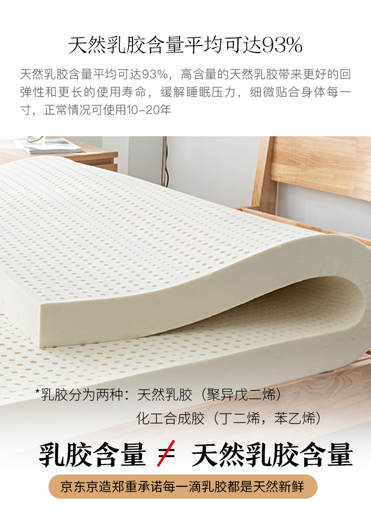 京东京造高端纯享系列泰国原芯进口天然乳胶床垫 ECO认证 93%乳胶含量 泰国直采85D密度乳胶床褥150*200*10CM